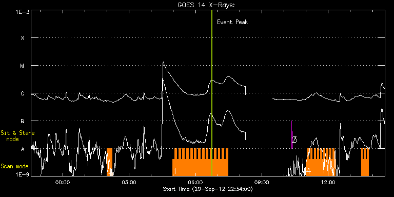 EIS Observation timeline overlay to GOES-Xray curve Code 1" 2" 40" 266" EIS Observations list for this event: STUDY ACRONYM ID DATE OBSERVED DESCRIPTION NOAA# TARGET 0 HH_AR+FLR_RAS_N03 | 29702 | 2012/09/30 02:00:14 | AR observation | | Active Region TIMELINE ID DATE OBSERVED FITS FILE XCEN (+W/-E) YCEN (+N/-S) DUR ----------------------------------------------------------------------------------------------------------------- 29702 | 2012/09/30 02:00:14.000 | eis_l0_20120930_020014.fits.gz | -572.03 | -321.51 | 13m19s 1 HH_Flare+AR_180x152 | 29713 | 2012/09/30 04:58:13 | AR observation | | Flare TIMELINE ID DATE OBSERVED FITS FILE XCEN (+W/-E) YCEN (+N/-S) DUR ----------------------------------------------------------------------------------------------------------------- 29713 | 2012/09/30 04:58:13.000 | eis_l0_20120930_045813.fits.gz | -554.16 | -322.13 | 5m18s 29713 | 2012/09/30 05:03:34.000 | eis_l0_20120930_050334.fits.gz | -553.54 | -322.21 | 5m18s 29713 | 2012/09/30 05:08:55.000 | eis_l0_20120930_050855.fits.gz | -552.69 | -322.21 | 5m18s 29713 | 2012/09/30 05:14:16.000 | eis_l0_20120930_051416.fits.gz | -552.07 | -322.21 | 5m18s 29713 | 2012/09/30 05:19:37.000 | eis_l0_20120930_051937.fits.gz | -551.38 | -322.44 | 5m17s 29713 | 2012/09/30 05:24:57.000 | eis_l0_20120930_052457.fits.gz | -550.68 | -322.29 | 5m19s 29713 | 2012/09/30 05:30:18.000 | eis_l0_20120930_053018.fits.gz | -549.99 | -322.44 | 5m18s 29713 | 2012/09/30 05:35:39.000 | eis_l0_20120930_053539.fits.gz | -549.29 | -322.52 | 5m17s 29713 | 2012/09/30 05:40:59.000 | eis_l0_20120930_054059.fits.gz | -548.60 | -322.52 | 5m17s 29713 | 2012/09/30 05:46:19.000 | eis_l0_20120930_054619.fits.gz | -547.90 | -322.44 | 5m18s 29713 | 2012/09/30 05:51:40.000 | eis_l0_20120930_055140.fits.gz | -547.13 | -322.60 | 5m18s 29713 | 2012/09/30 05:57:01.000 | eis_l0_20120930_055701.fits.gz | -546.43 | -322.75 | 5m17s 29713 | 2012/09/30 06:02:21.000 | eis_l0_20120930_060221.fits.gz | -545.74 | -322.75 | 5m18s 29713 | 2012/09/30 06:07:42.000 | eis_l0_20120930_060742.fits.gz | -545.12 | -322.83 | 5m17s 29713 | 2012/09/30 06:13:02.000 | eis_l0_20120930_061302.fits.gz | -544.43 | -322.75 | 5m18s 29713 | 2012/09/30 06:18:23.000 | eis_l0_20120930_061823.fits.gz | -543.73 | -322.83 | 5m18s 29713 | 2012/09/30 06:23:43.000 | eis_l0_20120930_062343.fits.gz | -543.03 | -322.91 | 5m18s 29713 | 2012/09/30 06:29:03.000 | eis_l0_20120930_062903.fits.gz | -542.34 | -322.83 | 5m18s 29713 | 2012/09/30 06:34:24.000 | eis_l0_20120930_063424.fits.gz | -541.72 | -322.91 | 5m18s 29713 | 2012/09/30 06:39:45.000 | eis_l0_20120930_063945.fits.gz | -540.95 | -322.91 | 5m18s 29713 | 2012/09/30 06:45:06.000 | eis_l0_20120930_064506.fits.gz | -540.26 | -322.98 | 5m19s 29713 | 2012/09/30 06:50:27.000 | eis_l0_20120930_065027.fits.gz | -539.56 | -323.14 | 5m18s 29713 | 2012/09/30 06:55:48.000 | eis_l0_20120930_065548.fits.gz | -538.79 | -323.14 | 5m18s 29713 | 2012/09/30 07:01:08.000 | eis_l0_20120930_070108.fits.gz | -538.17 | -323.21 | 5m18s 29713 | 2012/09/30 07:06:29.000 | eis_l0_20120930_070629.fits.gz | -537.47 | -323.29 | 5m17s 29713 | 2012/09/30 07:11:49.000 | eis_l0_20120930_071149.fits.gz | -536.78 | -323.29 | 5m19s 29713 | 2012/09/30 07:17:11.000 | eis_l0_20120930_071711.fits.gz | -536.01 | -323.37 | 5m18s 29713 | 2012/09/30 07:22:31.000 | eis_l0_20120930_072231.fits.gz | -535.39 | -323.37 | 5m18s 2 regcal078 | 29715 | 2012/09/30 10:20:11 | Dark exposures, 0s, 2 exposures, botto | | Engineering TIMELINE ID DATE OBSERVED FITS FILE XCEN (+W/-E) YCEN (+N/-S) DUR ----------------------------------------------------------------------------------------------------------------- 29715 | 2012/09/30 10:20:11.000 | eis_l0_20120930_102011.fits.gz | 14.51 | -305.50 | 2s 3 regcal079 | 29716 | 2012/09/30 10:23:11 | Dark exposures, 0s, 2 exposures, top c | | Engineering TIMELINE ID DATE OBSERVED FITS FILE XCEN (+W/-E) YCEN (+N/-S) DUR ----------------------------------------------------------------------------------------------------------------- 29716 | 2012/09/30 10:23:11.000 | eis_l0_20120930_102311.fits.gz | 14.59 | 205.50 | 2s 4 HH_Flare_162x152 | 29703 | 2012/09/30 11:00:13 | AR observation | 1582 | Flare TIMELINE ID DATE OBSERVED FITS FILE XCEN (+W/-E) YCEN (+N/-S) DUR ----------------------------------------------------------------------------------------------------------------- 29703 | 2012/09/30 11:00:13.000 | eis_l0_20120930_110013.fits.gz | -492.94 | -322.22 | 4m11s 29703 | 2012/09/30 11:04:27.000 | eis_l0_20120930_110427.fits.gz | -492.48 | -322.22 | 4m10s 29703 | 2012/09/30 11:08:40.000 | eis_l0_20120930_110840.fits.gz | -491.86 | -322.15 | 4m11s 29703 | 2012/09/30 11:12:53.000 | eis_l0_20120930_111253.fits.gz | -491.24 | -322.15 | 4m11s 29703 | 2012/09/30 11:17:07.000 | eis_l0_20120930_111707.fits.gz | -490.78 | -322.22 | 4m10s 29703 | 2012/09/30 11:21:20.000 | eis_l0_20120930_112120.fits.gz | -490.16 | -322.15 | 4m11s 29703 | 2012/09/30 11:25:34.000 | eis_l0_20120930_112534.fits.gz | -489.70 | -322.22 | 4m10s 29703 | 2012/09/30 11:29:47.000 | eis_l0_20120930_112947.fits.gz | -489.16 | -322.30 | 4m10s 29703 | 2012/09/30 11:34:00.000 | eis_l0_20120930_113400.fits.gz | -488.46 | -322.45 | 4m11s 29703 | 2012/09/30 11:38:14.000 | eis_l0_20120930_113814.fits.gz | -487.92 | -322.38 | 4m10s 29703 | 2012/09/30 11:42:27.000 | eis_l0_20120930_114227.fits.gz | -487.38 | -322.38 | 4m11s 29703 | 2012/09/30 11:46:41.000 | eis_l0_20120930_114641.fits.gz | -486.76 | -322.45 | 4m11s 29703 | 2012/09/30 11:50:55.000 | eis_l0_20120930_115055.fits.gz | -486.14 | -322.53 | 4m10s 29703 | 2012/09/30 11:55:08.000 | eis_l0_20120930_115508.fits.gz | -485.68 | -322.53 | 4m11s 29703 | 2012/09/30 11:59:22.000 | eis_l0_20120930_115922.fits.gz | -485.14 | -322.61 | 4m10s 29703 | 2012/09/30 12:03:35.000 | eis_l0_20120930_120335.fits.gz | -484.60 | -322.61 | 4m10s 29703 | 2012/09/30 12:07:48.000 | eis_l0_20120930_120748.fits.gz | -483.90 | -322.69 | 4m11s 29703 | 2012/09/30 12:12:02.000 | eis