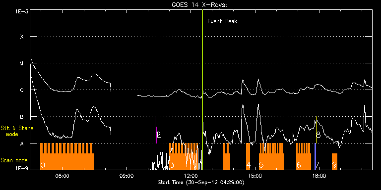 EIS Observation timeline overlay to GOES-Xray curve Code 1" 2" 40" 266" EIS Observations list for this event: STUDY ACRONYM ID DATE OBSERVED DESCRIPTION NOAA# TARGET 0 HH_Flare+AR_180x152 | 29713 | 2012/09/30 04:58:13 | AR observation | | Flare TIMELINE ID DATE OBSERVED FITS FILE XCEN (+W/-E) YCEN (+N/-S) DUR ----------------------------------------------------------------------------------------------------------------- 29713 | 2012/09/30 04:58:13.000 | eis_l0_20120930_045813.fits.gz | -554.16 | -322.13 | 5m18s 29713 | 2012/09/30 05:03:34.000 | eis_l0_20120930_050334.fits.gz | -553.54 | -322.21 | 5m18s 29713 | 2012/09/30 05:08:55.000 | eis_l0_20120930_050855.fits.gz | -552.69 | -322.21 | 5m18s 29713 | 2012/09/30 05:14:16.000 | eis_l0_20120930_051416.fits.gz | -552.07 | -322.21 | 5m18s 29713 | 2012/09/30 05:19:37.000 | eis_l0_20120930_051937.fits.gz | -551.38 | -322.44 | 5m17s 29713 | 2012/09/30 05:24:57.000 | eis_l0_20120930_052457.fits.gz | -550.68 | -322.29 | 5m19s 29713 | 2012/09/30 05:30:18.000 | eis_l0_20120930_053018.fits.gz | -549.99 | -322.44 | 5m18s 29713 | 2012/09/30 05:35:39.000 | eis_l0_20120930_053539.fits.gz | -549.29 | -322.52 | 5m17s 29713 | 2012/09/30 05:40:59.000 | eis_l0_20120930_054059.fits.gz | -548.60 | -322.52 | 5m17s 29713 | 2012/09/30 05:46:19.000 | eis_l0_20120930_054619.fits.gz | -547.90 | -322.44 | 5m18s 29713 | 2012/09/30 05:51:40.000 | eis_l0_20120930_055140.fits.gz | -547.13 | -322.60 | 5m18s 29713 | 2012/09/30 05:57:01.000 | eis_l0_20120930_055701.fits.gz | -546.43 | -322.75 | 5m17s 29713 | 2012/09/30 06:02:21.000 | eis_l0_20120930_060221.fits.gz | -545.74 | -322.75 | 5m18s 29713 | 2012/09/30 06:07:42.000 | eis_l0_20120930_060742.fits.gz | -545.12 | -322.83 | 5m17s 29713 | 2012/09/30 06:13:02.000 | eis_l0_20120930_061302.fits.gz | -544.43 | -322.75 | 5m18s 29713 | 2012/09/30 06:18:23.000 | eis_l0_20120930_061823.fits.gz | -543.73 | -322.83 | 5m18s 29713 | 2012/09/30 06:23:43.000 | eis_l0_20120930_062343.fits.gz | -543.03 | -322.91 | 5m18s 29713 | 2012/09/30 06:29:03.000 | eis_l0_20120930_062903.fits.gz | -542.34 | -322.83 | 5m18s 29713 | 2012/09/30 06:34:24.000 | eis_l0_20120930_063424.fits.gz | -541.72 | -322.91 | 5m18s 29713 | 2012/09/30 06:39:45.000 | eis_l0_20120930_063945.fits.gz | -540.95 | -322.91 | 5m18s 29713 | 2012/09/30 06:45:06.000 | eis_l0_20120930_064506.fits.gz | -540.26 | -322.98 | 5m19s 29713 | 2012/09/30 06:50:27.000 | eis_l0_20120930_065027.fits.gz | -539.56 | -323.14 | 5m18s 29713 | 2012/09/30 06:55:48.000 | eis_l0_20120930_065548.fits.gz | -538.79 | -323.14 | 5m18s 29713 | 2012/09/30 07:01:08.000 | eis_l0_20120930_070108.fits.gz | -538.17 | -323.21 | 5m18s 29713 | 2012/09/30 07:06:29.000 | eis_l0_20120930_070629.fits.gz | -537.47 | -323.29 | 5m17s 29713 | 2012/09/30 07:11:49.000 | eis_l0_20120930_071149.fits.gz | -536.78 | -323.29 | 5m19s 29713 | 2012/09/30 07:17:11.000 | eis_l0_20120930_071711.fits.gz | -536.01 | -323.37 | 5m18s 29713 | 2012/09/30 07:22:31.000 | eis_l0_20120930_072231.fits.gz | -535.39 | -323.37 | 5m18s 1 regcal078 | 29715 | 2012/09/30 10:20:11 | Dark exposures, 0s, 2 exposures, botto | | Engineering TIMELINE ID DATE OBSERVED FITS FILE XCEN (+W/-E) YCEN (+N/-S) DUR ----------------------------------------------------------------------------------------------------------------- 29715 | 2012/09/30 10:20:11.000 | eis_l0_20120930_102011.fits.gz | 14.51 | -305.50 | 2s 2 regcal079 | 29716 | 2012/09/30 10:23:11 | Dark exposures, 0s, 2 exposures, top c | | Engineering TIMELINE ID DATE OBSERVED FITS FILE XCEN (+W/-E) YCEN (+N/-S) DUR ----------------------------------------------------------------------------------------------------------------- 29716 | 2012/09/30 10:23:11.000 | eis_l0_20120930_102311.fits.gz | 14.59 | 205.50 | 2s 3 HH_Flare_162x152 | 29703 | 2012/09/30 11:00:13 | AR observation | 1582 | Flare TIMELINE ID DATE OBSERVED FITS FILE XCEN (+W/-E) YCEN (+N/-S) DUR ----------------------------------------------------------------------------------------------------------------- 29703 | 2012/09/30 11:00:13.000 | eis_l0_20120930_110013.fits.gz | -492.94 | -322.22 | 4m11s 29703 | 2012/09/30 11:04:27.000 | eis_l0_20120930_110427.fits.gz | -492.48 | -322.22 | 4m10s 29703 | 2012/09/30 11:08:40.000 | eis_l0_20120930_110840.fits.gz | -491.86 | -322.15 | 4m11s 29703 | 2012/09/30 11:12:53.000 | eis_l0_20120930_111253.fits.gz | -491.24 | -322.15 | 4m11s 29703 | 2012/09/30 11:17:07.000 | eis_l0_20120930_111707.fits.gz | -490.78 | -322.22 | 4m10s 29703 | 2012/09/30 11:21:20.000 | eis_l0_20120930_112120.fits.gz | -490.16 | -322.15 | 4m11s 29703 | 2012/09/30 11:25:34.000 | eis_l0_20120930_112534.fits.gz | -489.70 | -322.22 | 4m10s 29703 | 2012/09/30 11:29:47.000 | eis_l0_20120930_112947.fits.gz | -489.16 | -322.30 | 4m10s 29703 | 2012/09/30 11:34:00.000 | eis_l0_20120930_113400.fits.gz | -488.46 | -322.45 | 4m11s 29703 | 2012/09/30 11:38:14.000 | eis_l0_20120930_113814.fits.gz | -487.92 | -322.38 | 4m10s 29703 | 2012/09/30 11:42:27.000 | eis_l0_20120930_114227.fits.gz | -487.38 | -322.38 | 4m11s 29703 | 2012/09/30 11:46:41.000 | eis_l0_20120930_114641.fits.gz | -486.76 | -322.45 | 4m11s 29703 | 2012/09/30 11:50:55.000 | eis_l0_20120930_115055.fits.gz | -486.14 | -322.53 | 4m10s 29703 | 2012/09/30 11:55:08.000 | eis_l0_20120930_115508.fits.gz | -485.68 | -322.53 | 4m11s 29703 | 2012/09/30 11:59:22.000 | eis_l0_20120930_115922.fits.gz | -485.14 | -322.61 | 4m10s 29703 | 2012/09/30 12:03:35.000 | eis_l0_20120930_120335.fits.gz | -484.60 | -322.61 | 4m10s 29703 | 2012/09/30 12:07:48.000 | eis_l0_20120930_120748.fits.gz | -483.90 | -322.69 | 4m11s 29703 | 2012/09/30 12:12:02.000 | eis_l0_20120930_121202.fits.gz | -483.44 | -322.61 | 4m10s 29703 | 2012/09/30 12:16:15.000 | eis_l0_20120930_121615.fits.gz | -482.82 | -322.76 | 3m15s 29703 | 2012/09/30 13:30:33.000 | eis_l0_20120930_133033.fits.gz | -472.78 | -323.30 | 1m41s 29703 | 2012/09/30 13:32:17.000 | eis_l0_20120930_133217.fits.gz | -472.55 | -323.30 | 4m10s 29703 | 2012/09/30 13:36