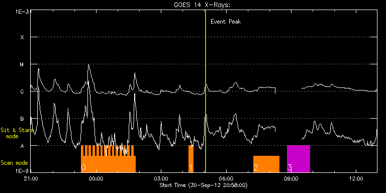 EIS Observation timeline overlay to GOES-Xray curve Code 1" 2" 40" 266" EIS Observations list for this event: STUDY ACRONYM ID DATE OBSERVED DESCRIPTION NOAA# TARGET 0 HH_Flare+AR_180x152 | 29709 | 2012/09/30 23:18:40 | AR observation | 1582 | Flare TIMELINE ID DATE OBSERVED FITS FILE XCEN (+W/-E) YCEN (+N/-S) DUR ----------------------------------------------------------------------------------------------------------------- 29709 | 2012/09/30 23:18:40.000 | eis_l0_20120930_231840.fits.gz | -401.00 | -324.09 | 5m17s 29709 | 2012/09/30 23:24:00.000 | eis_l0_20120930_232400.fits.gz | -400.23 | -324.17 | 5m18s 29709 | 2012/09/30 23:29:21.000 | eis_l0_20120930_232921.fits.gz | -399.45 | -324.17 | 5m18s 29709 | 2012/09/30 23:34:42.000 | eis_l0_20120930_233442.fits.gz | -398.76 | -324.17 | 5m18s 29709 | 2012/09/30 23:40:03.000 | eis_l0_20120930_234003.fits.gz | -397.99 | -324.17 | 5m18s 29709 | 2012/09/30 23:45:23.000 | eis_l0_20120930_234523.fits.gz | -397.21 | -324.24 | 5m19s 29709 | 2012/09/30 23:50:45.000 | eis_l0_20120930_235045.fits.gz | -396.44 | -324.24 | 5m18s 29709 | 2012/09/30 23:56:06.000 | eis_l0_20120930_235606.fits.gz | -395.75 | -324.24 | 5m17s 29709 | 2012/10/01 00:01:26.000 | eis_l0_20121001_000126.fits.gz | -394.90 | -324.40 | 5m17s 29709 | 2012/10/01 00:06:46.000 | eis_l0_20121001_000646.fits.gz | -394.28 | -324.32 | 5m19s 29709 | 2012/10/01 00:12:07.000 | eis_l0_20121001_001207.fits.gz | -393.43 | -324.40 | 5m18s 29709 | 2012/10/01 00:17:28.000 | eis_l0_20121001_001728.fits.gz | -392.66 | -324.40 | 5m18s 29709 | 2012/10/01 00:22:48.000 | eis_l0_20121001_002248.fits.gz | -391.96 | -324.32 | 5m19s 29709 | 2012/10/01 00:28:10.000 | eis_l0_20121001_002810.fits.gz | -391.19 | -324.48 | 5m17s 29709 | 2012/10/01 00:33:30.000 | eis_l0_20121001_003330.fits.gz | -390.42 | -324.48 | 5m18s 29709 | 2012/10/01 00:38:51.000 | eis_l0_20121001_003851.fits.gz | -389.64 | -324.48 | 5m18s 29709 | 2012/10/01 00:44:12.000 | eis_l0_20121001_004412.fits.gz | -388.87 | -324.55 | 5m18s 29709 | 2012/10/01 00:49:33.000 | eis_l0_20121001_004933.fits.gz | -388.18 | -324.55 | 5m18s 29709 | 2012/10/01 00:54:54.000 | eis_l0_20121001_005454.fits.gz | -387.25 | -324.55 | 5m18s 29709 | 2012/10/01 01:00:15.000 | eis_l0_20121001_010015.fits.gz | -386.63 | -324.55 | 5m18s 29709 | 2012/10/01 01:05:36.000 | eis_l0_20121001_010536.fits.gz | -385.94 | -324.63 | 5m18s 29709 | 2012/10/01 01:10:56.000 | eis_l0_20121001_011056.fits.gz | -385.24 | -324.63 | 5m18s 29709 | 2012/10/01 01:16:16.000 | eis_l0_20121001_011616.fits.gz | -384.39 | -324.71 | 5m18s 29709 | 2012/10/01 01:21:37.000 | eis_l0_20121001_012137.fits.gz | -383.62 | -324.86 | 5m18s 29709 | 2012/10/01 01:26:58.000 | eis_l0_20121001_012658.fits.gz | -382.85 | -324.94 | 5m18s 29709 | 2012/10/01 01:32:19.000 | eis_l0_20121001_013219.fits.gz | -382.15 | -324.79 | 5m18s 29709 | 2012/10/01 01:37:40.000 | eis_l0_20121001_013740.fits.gz | -381.30 | -324.79 | 5m18s 29709 | 2012/10/01 01:43:00.000 | eis_l0_20121001_014300.fits.gz | -380.53 | -324.94 | 5m18s 1 HH_AR+FLR_RAS_N03 | 29704 | 2012/10/01 04:15:40 | AR observation | 1582 | Active Region TIMELINE ID DATE OBSERVED FITS FILE XCEN (+W/-E) YCEN (+N/-S) DUR ----------------------------------------------------------------------------------------------------------------- 29704 | 2012/10/01 04:15:40.000 | eis_l0_20121001_041540.fits.gz | -356.75 | -325.64 | 13m18s 2 GDZ_300x384_S2S3_40 | 29698 | 2012/10/01 07:16:12 | AR observation | 1582 | Active Region TIMELINE ID DATE OBSERVED FITS FILE XCEN (+W/-E) YCEN (+N/-S) DUR ----------------------------------------------------------------------------------------------------------------- 29698 | 2012/10/01 07:16:12.000 | eis_l0_20121001_071612.fits.gz | -331.04 | -326.56 | 1h10m8s 3 HPW021_VEL_120x512v1 | 29699 | 2012/10/01 08:49:26 | AR observation | | Active Region TIMELINE ID DATE OBSERVED FITS FILE XCEN (+W/-E) YCEN (+N/-S) DUR ----------------------------------------------------------------------------------------------------------------- 29699 | 2012/10/01 08:49:26.000 | eis_l0_20121001_084926.fits.gz | -309.38 | -326.79 | 1h1m52s : Check study information : Download file : View thumbnails For this event, also check for: