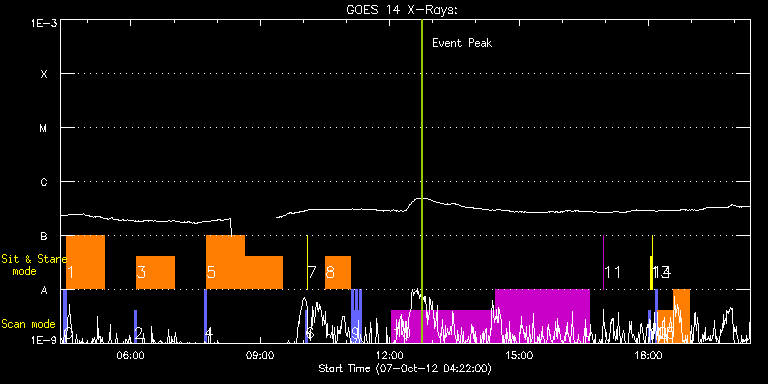 EIS Observation timeline overlay to GOES-Xray curve Code 1" 2" 40" 266" EIS Observations list for this event: STUDY ACRONYM ID DATE OBSERVED DESCRIPTION NOAA# TARGET 0 PRY_slot_contextLITE | 29816 | 2012/10/07 04:26:50 | Context for HOP 207 EUV wave obs with | | Active Region TIMELINE ID DATE OBSERVED FITS FILE XCEN (+W/-E) YCEN (+N/-S) DUR ----------------------------------------------------------------------------------------------------------------- 29816 | 2012/10/07 04:26:50.000 | eis_l0_20121007_042650.fits.gz | 757.63 | -103.89 | 2m56s 1 eitwave_synoptic | 29817 | 2012/10/07 04:30:11 | HOP 207 (TOO) EUV wave obs with SWAP | | Quiet Sun TIMELINE ID DATE OBSERVED FITS FILE XCEN (+W/-E) YCEN (+N/-S) DUR ----------------------------------------------------------------------------------------------------------------- 29817 | 2012/10/07 04:30:11.000 | eis_l0_20121007_043011.fits.gz | 549.71 | -161.12 | 52m26s 2 PRY_slot_contextLITE | 29818 | 2012/10/07 06:04:48 | Context for HOP 207 EUV wave obs with | | Active Region TIMELINE ID DATE OBSERVED FITS FILE XCEN (+W/-E) YCEN (+N/-S) DUR ----------------------------------------------------------------------------------------------------------------- 29818 | 2012/10/07 06:04:48.000 | eis_l0_20121007_060448.fits.gz | 763.81 | -102.50 | 2m56s 3 eitwave_synoptic | 29819 | 2012/10/07 06:08:09 | HOP 207 (TOO) EUV wave obs with SWAP | | Quiet Sun TIMELINE ID DATE OBSERVED FITS FILE XCEN (+W/-E) YCEN (+N/-S) DUR ----------------------------------------------------------------------------------------------------------------- 29819 | 2012/10/07 06:08:09.000 | eis_l0_20121007_060809.fits.gz | 555.96 | -159.50 | 52m26s 4 PRY_slot_contextLITE | 29820 | 2012/10/07 07:41:50 | Context for HOP 207 EUV wave obs with | | Active Region TIMELINE ID DATE OBSERVED FITS FILE XCEN (+W/-E) YCEN (+N/-S) DUR ----------------------------------------------------------------------------------------------------------------- 29820 | 2012/10/07 07:41:50.000 | eis_l0_20121007_074150.fits.gz | 769.99 | -101.11 | 2m56s 5 eitwave_synoptic | 29821 | 2012/10/07 07:45:12 | HOP 207 (TOO) EUV wave obs with SWAP | | Quiet Sun TIMELINE ID DATE OBSERVED FITS FILE XCEN (+W/-E) YCEN (+N/-S) DUR ----------------------------------------------------------------------------------------------------------------- 29821 | 2012/10/07 07:45:12.000 | eis_l0_20121007_074512.fits.gz | 561.91 | -157.96 | 52m26s 29821 | 2012/10/07 08:38:39.000 | eis_l0_20121007_083839.fits.gz | 565.23 | -157.11 | 52m26s 6 PRY_slot_contextLITE | 29827 | 2012/10/07 10:02:20 | | | Active Region TIMELINE ID DATE OBSERVED FITS FILE XCEN (+W/-E) YCEN (+N/-S) DUR ----------------------------------------------------------------------------------------------------------------- 29827 | 2012/10/07 10:02:20.000 | eis_l0_20121007_100220.fits.gz | -15.29 | -0.42 | 2m56s 7 Alignment_266 | 29828 | 2012/10/07 10:05:34 | | | Quiet Sun TIMELINE ID DATE OBSERVED FITS FILE XCEN (+W/-E) YCEN (+N/-S) DUR ----------------------------------------------------------------------------------------------------------------- 29828 | 2012/10/07 10:05:34.000 | eis_l0_20121007_100534.fits.gz | -132.64 | -0.42 | 20s 8 eitwave_synoptic | 29822 | 2012/10/07 10:30:43 | HOP 207 (TOO) EUV wave obs with SWAP | | Quiet Sun TIMELINE ID DATE OBSERVED FITS FILE XCEN (+W/-E) YCEN (+N/-S) DUR ----------------------------------------------------------------------------------------------------------------- 29822 | 2012/10/07 10:30:43.000 | eis_l0_20121007_103043.fits.gz | 571.72 | -155.49 | 34m36s 9 PRY_slot_contextLITE | 29823 | 2012/10/07 11:06:31 | Context for HOP 207 EUV wave obs with | | Active Region TIMELINE ID DATE OBSERVED FITS FILE XCEN (+W/-E) YCEN (+N/-S) DUR ----------------------------------------------------------------------------------------------------------------- 29823 | 2012/10/07 11:06:31.000 | eis_l0_20121007_110631.fits.gz | 781.89 | -97.94 | 2m56s 29823 | 2012/10/07 11:09:31.000 | eis_l0_20121007_110931.fits.gz | 782.12 | -97.79 | 2m56s 29823 | 2012/10/07 11:12:31.000 | eis_l0_20121007_111231.fits.gz | 782.27 | -97.71 | 2m56s 29823 | 2012/10/07 11:15:31.000 | eis_l0_20121007_111531.fits.gz | 782.50 | -97.71 | 2m57s 29823 | 2012/10/07 11:18:31.000 | eis_l0_20121007_111831.fits.gz | 782.58 | -97.63 | 2m56s 10 SK_CH_DIAG_320x384 | 29797 | 2012/10/07 12:02:48 | HOP 206 Polar Panorama Map (North Pole | | Coronal Hole TIMELINE ID DATE OBSERVED FITS FILE XCEN (+W/-E) YCEN (+N/-S) DUR ----------------------------------------------------------------------------------------------------------------- 29797 | 2012/10/07 12:02:48.000 | eis_l0_20121007_120248.fits.gz | -13.87 | 880.51 | 3h28m26s 29797 | 2012/10/07 14:27:31.000 | eis_l0_20121007_142731.fits.gz | -13.80 | 880.35 | 2h10m54s 11 regcal076 | 29842 | 2012/10/07 16:56:54 | Flatfield, 1 exposure, led 100ms, ccd | | Engineering TIMELINE ID DATE OBSERVED FITS FILE XCEN (+W/-E) YCEN (+N/-S) DUR ----------------------------------------------------------------------------------------------------------------- 29842 | 2012/10/07 16:56:54.000 | eis_l0_20121007_165654.fits.gz | 0.61 | 830.43 | 1s 12 PRY_slot_contextLITE | 29830 | 2012/10/07 17:59:33 | | | Active Region TIMELINE ID DATE OBSERVED FITS FILE XCEN (+W/-E) YCEN (+N/-S) DUR ----------------------------------------------------------------------------------------------------------------- 29830 | 2012/10/07 17:59:33.000 | eis_l0_20121007_175933.fits.gz | -15.21 | -0.65 | 2m56s 13 Alignment_266 | 29831 | 2012/10/07 18:02:48 | | | Quiet Sun TIMELINE ID DATE OBSERVED FITS FILE XCEN (+W/-E) YCEN (+N/-S) DUR ----------------------------------------------------------------------------------------------------------------- 29831 | 2012/10/07 18:02:48.000 | eis_l0_20121007_180248.fits.gz | -132.41 | -0.50 | 1m22s 14 XRT_synop_AIA | 29832 | 2012/10/07 18:05:22 | | | Quiet Sun TIMELINE ID DATE OBSERVED FITS FILE XCEN (+W/-E) YCEN (+N/-S) DUR ----------------------