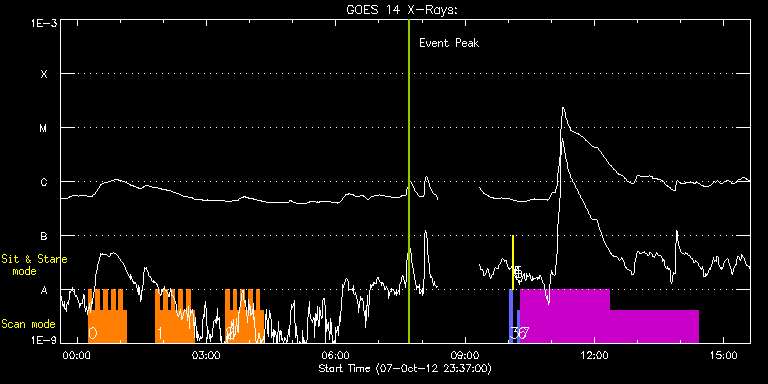 EIS Observation timeline overlay to GOES-Xray curve Code 1" 2" 40" 266" EIS Observations list for this event: STUDY ACRONYM ID DATE OBSERVED DESCRIPTION NOAA# TARGET 0 HH_Flare+AR_180x152 | 29853 | 2012/10/08 00:15:29 | AR and flare observation | | Flare TIMELINE ID DATE OBSERVED FITS FILE XCEN (+W/-E) YCEN (+N/-S) DUR ----------------------------------------------------------------------------------------------------------------- 29853 | 2012/10/08 00:15:29.000 | eis_l0_20121008_001529.fits.gz | 897.71 | -257.50 | 5m18s 29853 | 2012/10/08 00:20:50.000 | eis_l0_20121008_002050.fits.gz | 897.79 | -257.50 | 5m18s 29853 | 2012/10/08 00:26:11.000 | eis_l0_20121008_002611.fits.gz | 897.71 | -257.50 | 5m17s 29853 | 2012/10/08 00:31:31.000 | eis_l0_20121008_003131.fits.gz | 897.71 | -257.50 | 5m18s 29853 | 2012/10/08 00:36:52.000 | eis_l0_20121008_003652.fits.gz | 897.71 | -257.35 | 5m19s 29853 | 2012/10/08 00:42:14.000 | eis_l0_20121008_004214.fits.gz | 897.71 | -257.50 | 5m17s 29853 | 2012/10/08 00:47:34.000 | eis_l0_20121008_004734.fits.gz | 897.79 | -257.50 | 5m18s 29853 | 2012/10/08 00:52:55.000 | eis_l0_20121008_005255.fits.gz | 897.79 | -257.50 | 5m19s 29853 | 2012/10/08 00:58:17.000 | eis_l0_20121008_005817.fits.gz | 897.79 | -257.50 | 5m17s 29853 | 2012/10/08 01:03:37.000 | eis_l0_20121008_010337.fits.gz | 897.79 | -257.50 | 5m17s 1 HH_Flare+AR_180x152 | 29854 | 2012/10/08 01:49:28 | AR and flare observation | | Flare TIMELINE ID DATE OBSERVED FITS FILE XCEN (+W/-E) YCEN (+N/-S) DUR ----------------------------------------------------------------------------------------------------------------- 29854 | 2012/10/08 01:49:28.000 | eis_l0_20121008_014928.fits.gz | 897.64 | -257.50 | 5m19s 29854 | 2012/10/08 01:54:50.000 | eis_l0_20121008_015450.fits.gz | 897.79 | -257.58 | 5m17s 29854 | 2012/10/08 02:00:10.000 | eis_l0_20121008_020010.fits.gz | 897.71 | -257.43 | 5m19s 29854 | 2012/10/08 02:05:32.000 | eis_l0_20121008_020532.fits.gz | 897.79 | -257.50 | 5m18s 29854 | 2012/10/08 02:10:53.000 | eis_l0_20121008_021053.fits.gz | 897.71 | -257.50 | 5m17s 29854 | 2012/10/08 02:16:13.000 | eis_l0_20121008_021613.fits.gz | 897.71 | -257.50 | 5m17s 29854 | 2012/10/08 02:21:33.000 | eis_l0_20121008_022133.fits.gz | 897.71 | -257.43 | 5m18s 29854 | 2012/10/08 02:26:54.000 | eis_l0_20121008_022654.fits.gz | 897.71 | -257.50 | 5m17s 29854 | 2012/10/08 02:32:14.000 | eis_l0_20121008_023214.fits.gz | 897.64 | -257.50 | 5m17s 29854 | 2012/10/08 02:37:34.000 | eis_l0_20121008_023734.fits.gz | 897.79 | -257.50 | 5m19s 2 HH_Flare+AR_180x152 | 29855 | 2012/10/08 03:26:29 | AR and flare observation | | Flare TIMELINE ID DATE OBSERVED FITS FILE XCEN (+W/-E) YCEN (+N/-S) DUR ----------------------------------------------------------------------------------------------------------------- 29855 | 2012/10/08 03:26:29.000 | eis_l0_20121008_032629.fits.gz | 897.71 | -257.50 | 5m17s 29855 | 2012/10/08 03:31:49.000 | eis_l0_20121008_033149.fits.gz | 897.79 | -257.43 | 5m17s 29855 | 2012/10/08 03:37:09.000 | eis_l0_20121008_033709.fits.gz | 897.71 | -257.50 | 5m18s 29855 | 2012/10/08 03:42:30.000 | eis_l0_20121008_034230.fits.gz | 897.79 | -257.43 | 5m18s 29855 | 2012/10/08 03:47:51.000 | eis_l0_20121008_034751.fits.gz | 897.71 | -257.50 | 5m17s 29855 | 2012/10/08 03:53:11.000 | eis_l0_20121008_035311.fits.gz | 897.71 | -257.50 | 5m18s 29855 | 2012/10/08 03:58:32.000 | eis_l0_20121008_035832.fits.gz | 897.64 | -257.43 | 5m18s 29855 | 2012/10/08 04:03:53.000 | eis_l0_20121008_040353.fits.gz | 897.64 | -257.43 | 5m17s 29855 | 2012/10/08 04:09:13.000 | eis_l0_20121008_040913.fits.gz | 897.79 | -257.43 | 5m18s 29855 | 2012/10/08 04:14:34.000 | eis_l0_20121008_041434.fits.gz | 897.79 | -257.50 | 5m18s 3 PRY_slot_contextLITE | 29833 | 2012/10/08 10:02:19 | | | Active Region TIMELINE ID DATE OBSERVED FITS FILE XCEN (+W/-E) YCEN (+N/-S) DUR ----------------------------------------------------------------------------------------------------------------- 29833 | 2012/10/08 10:02:19.000 | eis_l0_20121008_100219.fits.gz | -15.29 | -0.35 | 2m56s 4 Alignment_266 | 29834 | 2012/10/08 10:05:33 | | | Quiet Sun TIMELINE ID DATE OBSERVED FITS FILE XCEN (+W/-E) YCEN (+N/-S) DUR ----------------------------------------------------------------------------------------------------------------- 29834 | 2012/10/08 10:05:33.000 | eis_l0_20121008_100533.fits.gz | -132.49 | -0.50 | 1m22s 5 XRT_synop_AIA | 29835 | 2012/10/08 10:07:41 | | | Quiet Sun TIMELINE ID DATE OBSERVED FITS FILE XCEN (+W/-E) YCEN (+N/-S) DUR ----------------------------------------------------------------------------------------------------------------- 29835 | 2012/10/08 10:07:41.000 | eis_l0_20121008_100741.fits.gz | -132.57 | -0.42 | 10s 6 PRY_slot_contextLITE | 29843 | 2012/10/08 10:13:17 | | | Active Region TIMELINE ID DATE OBSERVED FITS FILE XCEN (+W/-E) YCEN (+N/-S) DUR ----------------------------------------------------------------------------------------------------------------- 29843 | 2012/10/08 10:13:17.000 | eis_l0_20121008_101317.fits.gz | 818.73 | -84.50 | 2m56s 7 HPW021_VEL_240x512v1 | 29844 | 2012/10/08 10:16:25 | AR observation | | Active Region TIMELINE ID DATE OBSERVED FITS FILE XCEN (+W/-E) YCEN (+N/-S) DUR ----------------------------------------------------------------------------------------------------------------- 29844 | 2012/10/08 10:16:25.000 | eis_l0_20121008_101625.fits.gz | 899.70 | -257.43 | 2h3m48s 29844 | 2012/10/08 12:20:20.000 | eis_l0_20121008_122020.fits.gz | 899.70 | -257.43 | 2h3m48s : Check study information : Download file : View thumbnails For this event, also check for: