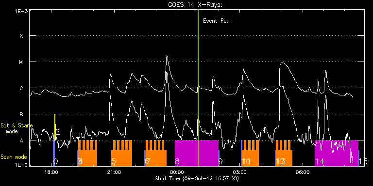 EIS Observation timeline overlay to GOES-Xray curve Code 1" 2" 40" 266" EIS Observations list for this event: STUDY ACRONYM ID DATE OBSERVED DESCRIPTION NOAA# TARGET 0 PRY_slot_contextLITE | 29868 | 2012/10/09 18:05:50 | Change of EIS pointing and alignment w | | Active Region TIMELINE ID DATE OBSERVED FITS FILE XCEN (+W/-E) YCEN (+N/-S) DUR ----------------------------------------------------------------------------------------------------------------- 29868 | 2012/10/09 18:05:50.000 | eis_l0_20121009_180550.fits.gz | -15.14 | -0.50 | 2m56s 1 Alignment_266 | 29869 | 2012/10/09 18:09:05 | Change of EIS pointing and alignment w | | Quiet Sun TIMELINE ID DATE OBSERVED FITS FILE XCEN (+W/-E) YCEN (+N/-S) DUR ----------------------------------------------------------------------------------------------------------------- 29869 | 2012/10/09 18:09:05.000 | eis_l0_20121009_180905.fits.gz | -132.49 | -0.42 | 1m22s 2 XRT_synop_AIA | 29870 | 2012/10/09 18:11:39 | Change of EIS pointing and alignment w | | Quiet Sun TIMELINE ID DATE OBSERVED FITS FILE XCEN (+W/-E) YCEN (+N/-S) DUR ----------------------------------------------------------------------------------------------------------------- 29870 | 2012/10/09 18:11:39.000 | eis_l0_20121009_181139.fits.gz | -132.49 | -0.50 | 10s 3 PRY_slot_contextLITE | 29892 | 2012/10/09 19:14:27 | Context on AR Obs - Coming AR near E l | | Active Region TIMELINE ID DATE OBSERVED FITS FILE XCEN (+W/-E) YCEN (+N/-S) DUR ----------------------------------------------------------------------------------------------------------------- 29892 | 2012/10/09 19:14:27.000 | eis_l0_20121009_191427.fits.gz | -9884.69 | -9963.20 | 2m56s 4 HH_Flare_180x160_v2 | 29893 | 2012/10/09 19:17:48 | AR Obs - Coming AR near E limb | | Flare TIMELINE ID DATE OBSERVED FITS FILE XCEN (+W/-E) YCEN (+N/-S) DUR ----------------------------------------------------------------------------------------------------------------- 29893 | 2012/10/09 19:17:48.000 | eis_l0_20121009_191748.fits.gz | -9871.20 | -9963.20 | 5m46s 29893 | 2012/10/09 19:23:37.000 | eis_l0_20121009_192337.fits.gz | -9871.20 | -9963.20 | 5m47s 29893 | 2012/10/09 19:29:26.000 | eis_l0_20121009_192926.fits.gz | -9871.20 | -9963.20 | 5m47s 29893 | 2012/10/09 19:35:16.000 | eis_l0_20121009_193516.fits.gz | -9871.20 | -9963.20 | 5m46s 29893 | 2012/10/09 19:41:05.000 | eis_l0_20121009_194105.fits.gz | -9871.20 | -9963.20 | 5m47s 29893 | 2012/10/09 19:46:55.000 | eis_l0_20121009_194655.fits.gz | -9871.20 | -9963.20 | 5m47s 29893 | 2012/10/09 19:52:45.000 | eis_l0_20121009_195245.fits.gz | -9871.20 | -9963.20 | 5m46s 29893 | 2012/10/09 19:58:34.000 | eis_l0_20121009_195834.fits.gz | -9871.20 | -9963.20 | 5m47s 29893 | 2012/10/09 20:04:23.000 | eis_l0_20121009_200423.fits.gz | -9871.20 | -9963.20 | 5m47s 5 HH_Flare_180x160_v2 | 29904 | 2012/10/09 20:51:43 | | | Flare TIMELINE ID DATE OBSERVED FITS FILE XCEN (+W/-E) YCEN (+N/-S) DUR ----------------------------------------------------------------------------------------------------------------- 29904 | 2012/10/09 20:51:43.000 | eis_l0_20121009_205143.fits.gz | -9871.20 | -9963.20 | 5m47s 29904 | 2012/10/09 20:57:33.000 | eis_l0_20121009_205733.fits.gz | -9871.20 | -9963.20 | 5m46s 29904 | 2012/10/09 21:03:22.000 | eis_l0_20121009_210322.fits.gz | -9871.20 | -9963.20 | 5m46s 29904 | 2012/10/09 21:09:11.000 | eis_l0_20121009_210911.fits.gz | -9871.20 | -9963.20 | 5m46s 29904 | 2012/10/09 21:14:59.000 | eis_l0_20121009_211459.fits.gz | -9871.20 | -9963.20 | 5m47s 29904 | 2012/10/09 21:20:48.000 | eis_l0_20121009_212048.fits.gz | -9871.20 | -9963.20 | 5m47s 29904 | 2012/10/09 21:26:38.000 | eis_l0_20121009_212638.fits.gz | -9871.20 | -9963.20 | 5m46s 29904 | 2012/10/09 21:32:27.000 | eis_l0_20121009_213227.fits.gz | -9871.20 | -9963.20 | 5m47s 29904 | 2012/10/09 21:38:17.000 | eis_l0_20121009_213817.fits.gz | -9871.20 | -9963.20 | 5m47s 29904 | 2012/10/09 21:44:07.000 | eis_l0_20121009_214407.fits.gz | -9871.20 | -9963.20 | 5m47s 6 PRY_slot_contextLITE | 29894 | 2012/10/09 22:27:20 | Context on AR Obs - Coming AR near E l | | Active Region TIMELINE ID DATE OBSERVED FITS FILE XCEN (+W/-E) YCEN (+N/-S) DUR ----------------------------------------------------------------------------------------------------------------- 29894 | 2012/10/09 22:27:20.000 | eis_l0_20121009_222720.fits.gz | -9884.69 | -9963.20 | 2m57s 7 HH_Flare_180x160_v2 | 29895 | 2012/10/09 22:30:42 | AR Obs - Coming AR near E limb | | Flare TIMELINE ID DATE OBSERVED FITS FILE XCEN (+W/-E) YCEN (+N/-S) DUR ----------------------------------------------------------------------------------------------------------------- 29895 | 2012/10/09 22:30:42.000 | eis_l0_20121009_223042.fits.gz | -9871.20 | -9963.20 | 5m46s 29895 | 2012/10/09 22:36:31.000 | eis_l0_20121009_223631.fits.gz | -9871.20 | -9963.20 | 5m46s 29895 | 2012/10/09 22:42:20.000 | eis_l0_20121009_224220.fits.gz | -9871.20 | -9963.20 | 5m47s 29895 | 2012/10/09 22:48:09.000 | eis_l0_20121009_224809.fits.gz | -9871.20 | -9963.20 | 5m47s 29895 | 2012/10/09 22:53:59.000 | eis_l0_20121009_225359.fits.gz | -9871.20 | -9963.20 | 5m46s 29895 | 2012/10/09 22:59:48.000 | eis_l0_20121009_225948.fits.gz | -9871.20 | -9963.20 | 5m47s 29895 | 2012/10/09 23:05:38.000 | eis_l0_20121009_230538.fits.gz | -9871.20 | -9963.20 | 5m46s 29895 | 2012/10/09 23:11:27.000 | eis_l0_20121009_231127.fits.gz | -9871.20 | -9963.20 | 5m46s 29895 | 2012/10/09 23:17:16.000 | eis_l0_20121009_231716.fits.gz | -9871.20 | -9963.20 | 5m47s 29895 | 2012/10/09 23:23:06.000 | eis_l0_20121009_232306.fits.gz | -9871.20 | -9963.20 | 5m46s 8 HPW021_VEL_240x512v1 | 29890 | 2012/10/09 23:53:57 | AR Obs - limb to limb - Coming AR near | | Active Region TIMELINE ID DATE OBSERVED FITS FILE XCEN (+W/-E) YCEN (+N/-S) DUR ----------------------------------------------------------------------------------------------------------------- 29890 | 2012/10/09 23:53:57.000 | eis_l0_20121009_235357.fits.gz | -9869.71 | -9963.20 | 2h3m47