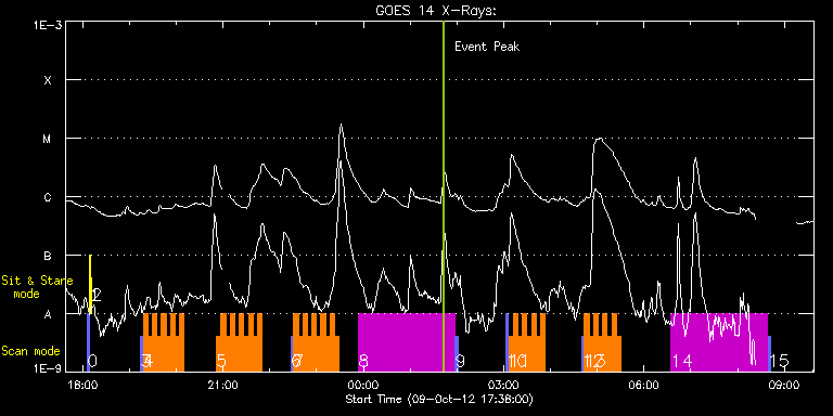 EIS Observation timeline overlay to GOES-Xray curve