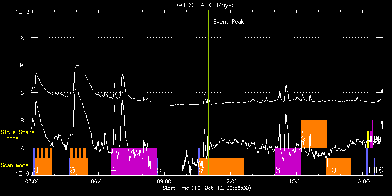 EIS Observation timeline overlay to GOES-Xray curve Code 1" 2" 40" 266" EIS Observations list for this event: STUDY ACRONYM ID DATE OBSERVED DESCRIPTION NOAA# TARGET 0 PRY_slot_contextLITE | 29896 | 2012/10/10 03:03:10 | Context on AR Obs - Coming AR near E l | | Active Region TIMELINE ID DATE OBSERVED FITS FILE XCEN (+W/-E) YCEN (+N/-S) DUR ----------------------------------------------------------------------------------------------------------------- 29896 | 2012/10/10 03:03:10.000 | eis_l0_20121010_030310.fits.gz | -9884.69 | -9963.20 | 2m56s 1 HH_Flare_180x160_v2 | 29897 | 2012/10/10 03:06:32 | AR Obs - Coming AR near E limb | | Flare TIMELINE ID DATE OBSERVED FITS FILE XCEN (+W/-E) YCEN (+N/-S) DUR ----------------------------------------------------------------------------------------------------------------- 29897 | 2012/10/10 03:06:32.000 | eis_l0_20121010_030632.fits.gz | -9871.20 | -9963.20 | 5m47s 29897 | 2012/10/10 03:12:22.000 | eis_l0_20121010_031222.fits.gz | -9871.20 | -9963.20 | 5m46s 29897 | 2012/10/10 03:18:11.000 | eis_l0_20121010_031811.fits.gz | -9871.20 | -9963.20 | 5m47s 29897 | 2012/10/10 03:24:01.000 | eis_l0_20121010_032401.fits.gz | -9871.20 | -9963.20 | 5m46s 29897 | 2012/10/10 03:29:50.000 | eis_l0_20121010_032950.fits.gz | -9871.20 | -9963.20 | 5m46s 29897 | 2012/10/10 03:35:39.000 | eis_l0_20121010_033539.fits.gz | -9871.20 | -9963.20 | 5m46s 29897 | 2012/10/10 03:41:28.000 | eis_l0_20121010_034128.fits.gz | -9871.20 | -9963.20 | 5m46s 29897 | 2012/10/10 03:47:17.000 | eis_l0_20121010_034717.fits.gz | -9871.20 | -9963.20 | 5m46s 2 PRY_slot_contextLITE | 29886 | 2012/10/10 04:40:20 | AR Obs - Coming AR near E limb | | Active Region TIMELINE ID DATE OBSERVED FITS FILE XCEN (+W/-E) YCEN (+N/-S) DUR ----------------------------------------------------------------------------------------------------------------- 29886 | 2012/10/10 04:40:20.000 | eis_l0_20121010_044020.fits.gz | -9884.69 | -9963.20 | 2m57s 3 HH_Flare_180x160_v2 | 29887 | 2012/10/10 04:43:42 | AR Obs - Coming AR near E limb | | Flare TIMELINE ID DATE OBSERVED FITS FILE XCEN (+W/-E) YCEN (+N/-S) DUR ----------------------------------------------------------------------------------------------------------------- 29887 | 2012/10/10 04:43:42.000 | eis_l0_20121010_044342.fits.gz | -9871.20 | -9963.20 | 5m46s 29887 | 2012/10/10 04:49:31.000 | eis_l0_20121010_044931.fits.gz | -9871.20 | -9963.20 | 5m46s 29887 | 2012/10/10 04:55:19.000 | eis_l0_20121010_045519.fits.gz | -9871.20 | -9963.20 | 5m47s 29887 | 2012/10/10 05:01:08.000 | eis_l0_20121010_050108.fits.gz | -9871.20 | -9963.20 | 5m47s 29887 | 2012/10/10 05:06:57.000 | eis_l0_20121010_050657.fits.gz | -9871.20 | -9963.20 | 5m47s 29887 | 2012/10/10 05:12:47.000 | eis_l0_20121010_051247.fits.gz | -9871.20 | -9963.20 | 5m47s 29887 | 2012/10/10 05:18:37.000 | eis_l0_20121010_051837.fits.gz | -9871.20 | -9963.20 | 5m46s 29887 | 2012/10/10 05:24:26.000 | eis_l0_20121010_052426.fits.gz | -9871.20 | -9963.20 | 5m47s 4 HPW021_VEL_240x512v1 | 29876 | 2012/10/10 06:34:57 | AR Obs - limb to limb - Coming AR near | 1589 | Active Region TIMELINE ID DATE OBSERVED FITS FILE XCEN (+W/-E) YCEN (+N/-S) DUR ----------------------------------------------------------------------------------------------------------------- 29876 | 2012/10/10 06:34:57.000 | eis_l0_20121010_063457.fits.gz | -867.96 | 188.22 | 2h3m48s 5 PRY_slot_contextLITE | 29877 | 2012/10/10 08:39:10 | context on AR Obs - limb to limb - Co | 1589 | Active Region TIMELINE ID DATE OBSERVED FITS FILE XCEN (+W/-E) YCEN (+N/-S) DUR ----------------------------------------------------------------------------------------------------------------- 29877 | 2012/10/10 08:39:10.000 | eis_l0_20121010_083910.fits.gz | -875.91 | 186.29 | 2m56s 6 PRY_slot_context_v3 | 29856 | 2012/10/10 10:32:13 | Context on EIS QS spectral atlas W lim | 1587 | Active Region TIMELINE ID DATE OBSERVED FITS FILE XCEN (+W/-E) YCEN (+N/-S) DUR ----------------------------------------------------------------------------------------------------------------- 29856 | 2012/10/10 10:32:13.000 | eis_l0_20121010_103213.fits.gz | 762.59 | -0.81 | 2m56s 7 Atlas_120 | 29857 | 2012/10/10 10:35:34 | EIS QS spectral atlas W limb | | Quiet Sun TIMELINE ID DATE OBSERVED FITS FILE XCEN (+W/-E) YCEN (+N/-S) DUR ----------------------------------------------------------------------------------------------------------------- 29857 | 2012/10/10 10:35:34.000 | eis_l0_20121010_103534.fits.gz | 931.52 | -0.35 | 2h1m40s 8 prom_rast_v1 | 29862 | 2012/10/10 14:02:26 | Sac Peak Prominence Observing Campaign | | Eruptive Filame TIMELINE ID DATE OBSERVED FITS FILE XCEN (+W/-E) YCEN (+N/-S) DUR ----------------------------------------------------------------------------------------------------------------- 29862 | 2012/10/10 14:02:26.000 | eis_l0_20121010_140226.fits.gz | 849.97 | -400.57 | 1h9m44s 9 BL_SUMER_EIS_p2 | 29863 | 2012/10/10 15:12:28 | Sac Peak Prominence Observing Campaign | | Quiet Sun TIMELINE ID DATE OBSERVED FITS FILE XCEN (+W/-E) YCEN (+N/-S) DUR ----------------------------------------------------------------------------------------------------------------- 29863 | 2012/10/10 15:12:28.000 | eis_l0_20121010_151228.fits.gz | 849.40 | -400.41 | 1h9m25s 10 GDZ_PLUME1_2_300_50s | 29864 | 2012/10/10 16:21:58 | Sac Peak Prominence Observing Campaign | 1587 | Coronal Hole TIMELINE ID DATE OBSERVED FITS FILE XCEN (+W/-E) YCEN (+N/-S) DUR ----------------------------------------------------------------------------------------------------------------- 29864 | 2012/10/10 16:21:58.000 | eis_l0_20121010_162158.fits.gz | 848.66 | -400.57 | 1h4m52s 11 PRY_slot_contextLITE | 29871 | 2012/10/10 18:11:19 | Change of EIS pointing and alignment w | | Active Region TIMELINE ID DATE OBSERVED FITS FILE XCEN (+W/-E) YCEN (+N/-S) DUR ----------------------------------------------------------------------------------------------------------------- 29871 | 2012/10/10 18:11:19.000 |
