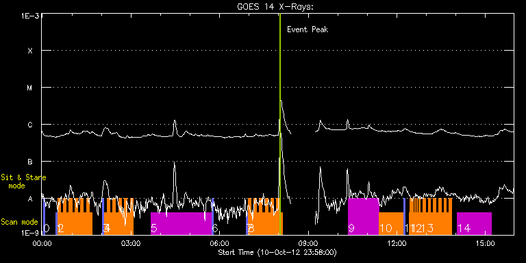 EIS Observation timeline overlay to GOES-Xray curve Code 1" 2" 40" 266" EIS Observations list for this event: STUDY ACRONYM ID DATE OBSERVED DESCRIPTION NOAA# TARGET 0 PRY_slot_contextLITE | 29882 | 2012/10/11 00:01:37 | context on AR Obs - Coming AR near E l | 1589 | Active Region TIMELINE ID DATE OBSERVED FITS FILE XCEN (+W/-E) YCEN (+N/-S) DUR ----------------------------------------------------------------------------------------------------------------- 29882 | 2012/10/11 00:01:37.000 | eis_l0_20121011_000137.fits.gz | -879.07 | 159.17 | 2m57s 1 PRY_slot_contextLITE | 29900 | 2012/10/11 00:27:40 | Context on AR Obs - Coming AR near E l | 1589 | Active Region TIMELINE ID DATE OBSERVED FITS FILE XCEN (+W/-E) YCEN (+N/-S) DUR ----------------------------------------------------------------------------------------------------------------- 29900 | 2012/10/11 00:27:40.000 | eis_l0_20121011_002740.fits.gz | -877.45 | 158.71 | 2m56s 2 HH_Flare_180x160_v2 | 29901 | 2012/10/11 00:31:02 | AR Obs - Coming AR near E limb | 1589 | Flare TIMELINE ID DATE OBSERVED FITS FILE XCEN (+W/-E) YCEN (+N/-S) DUR ----------------------------------------------------------------------------------------------------------------- 29901 | 2012/10/11 00:31:02.000 | eis_l0_20121011_003102.fits.gz | -863.80 | 158.63 | 5m46s 29901 | 2012/10/11 00:36:51.000 | eis_l0_20121011_003651.fits.gz | -863.50 | 158.63 | 5m46s 29901 | 2012/10/11 00:42:40.000 | eis_l0_20121011_004240.fits.gz | -863.11 | 158.55 | 5m46s 29901 | 2012/10/11 00:48:29.000 | eis_l0_20121011_004829.fits.gz | -862.80 | 158.48 | 5m47s 29901 | 2012/10/11 00:54:18.000 | eis_l0_20121011_005418.fits.gz | -862.41 | 158.40 | 5m47s 29901 | 2012/10/11 01:00:08.000 | eis_l0_20121011_010008.fits.gz | -862.03 | 158.24 | 5m46s 29901 | 2012/10/11 01:05:57.000 | eis_l0_20121011_010557.fits.gz | -861.72 | 158.17 | 5m47s 29901 | 2012/10/11 01:11:47.000 | eis_l0_20121011_011147.fits.gz | -861.41 | 158.17 | 5m46s 29901 | 2012/10/11 01:17:36.000 | eis_l0_20121011_011736.fits.gz | -861.02 | 158.09 | 5m47s 29901 | 2012/10/11 01:23:25.000 | eis_l0_20121011_012325.fits.gz | -860.64 | 157.93 | 5m47s 29901 | 2012/10/11 01:29:15.000 | eis_l0_20121011_012915.fits.gz | -860.25 | 157.86 | 5m46s 29901 | 2012/10/11 01:35:04.000 | eis_l0_20121011_013504.fits.gz | -859.94 | 157.86 | 5m45s 3 PRY_slot_contextLITE | 29888 | 2012/10/11 02:02:19 | AR Obs - Coming AR near E limb | 1589 | Active Region TIMELINE ID DATE OBSERVED FITS FILE XCEN (+W/-E) YCEN (+N/-S) DUR ----------------------------------------------------------------------------------------------------------------- 29888 | 2012/10/11 02:02:19.000 | eis_l0_20121011_020219.fits.gz | -871.73 | 157.39 | 2m57s 4 HH_Flare_180x160_v2 | 29889 | 2012/10/11 02:05:41 | AR Obs - Coming AR near E limb | 1589 | Flare TIMELINE ID DATE OBSERVED FITS FILE XCEN (+W/-E) YCEN (+N/-S) DUR ----------------------------------------------------------------------------------------------------------------- 29889 | 2012/10/11 02:05:41.000 | eis_l0_20121011_020541.fits.gz | -857.93 | 157.32 | 5m47s 29889 | 2012/10/11 02:11:30.000 | eis_l0_20121011_021130.fits.gz | -857.62 | 157.16 | 5m47s 29889 | 2012/10/11 02:17:20.000 | eis_l0_20121011_021720.fits.gz | -857.24 | 157.16 | 5m47s 29889 | 2012/10/11 02:23:10.000 | eis_l0_20121011_022310.fits.gz | -856.93 | 157.09 | 5m46s 29889 | 2012/10/11 02:28:59.000 | eis_l0_20121011_022859.fits.gz | -856.54 | 156.93 | 5m47s 29889 | 2012/10/11 02:34:49.000 | eis_l0_20121011_023449.fits.gz | -856.23 | 156.93 | 5m46s 29889 | 2012/10/11 02:40:38.000 | eis_l0_20121011_024038.fits.gz | -855.85 | 156.78 | 5m51s 29889 | 2012/10/11 02:46:31.000 | eis_l0_20121011_024631.fits.gz | -855.54 | 156.85 | 5m47s 29889 | 2012/10/11 02:52:21.000 | eis_l0_20121011_025221.fits.gz | -855.08 | 156.62 | 5m47s 29889 | 2012/10/11 02:58:11.000 | eis_l0_20121011_025811.fits.gz | -854.69 | 156.47 | 5m46s 5 HPW021_VEL_240x512v1 | 29878 | 2012/10/11 03:39:56 | AR Obs - limb to limb - Coming AR near | 1589 | Active Region TIMELINE ID DATE OBSERVED FITS FILE XCEN (+W/-E) YCEN (+N/-S) DUR ----------------------------------------------------------------------------------------------------------------- 29878 | 2012/10/11 03:39:56.000 | eis_l0_20121011_033956.fits.gz | -850.58 | 156.16 | 2h3m48s 6 PRY_slot_contextLITE | 29879 | 2012/10/11 05:44:10 | context on AR Obs - limb to limb - Co | 1589 | Active Region TIMELINE ID DATE OBSERVED FITS FILE XCEN (+W/-E) YCEN (+N/-S) DUR ----------------------------------------------------------------------------------------------------------------- 29879 | 2012/10/11 05:44:10.000 | eis_l0_20121011_054410.fits.gz | -857.44 | 154.15 | 2m56s 7 PRY_slot_contextLITE | 29902 | 2012/10/11 06:54:13 | Context on AR Obs - Coming AR near E l | 1589 | Active Region TIMELINE ID DATE OBSERVED FITS FILE XCEN (+W/-E) YCEN (+N/-S) DUR ----------------------------------------------------------------------------------------------------------------- 29902 | 2012/10/11 06:54:13.000 | eis_l0_20121011_065413.fits.gz | -852.58 | 153.22 | 2m56s 8 HH_Flare_180x160_v2 | 29903 | 2012/10/11 06:57:34 | AR Obs - Coming AR near E limb | 1589 | Flare TIMELINE ID DATE OBSERVED FITS FILE XCEN (+W/-E) YCEN (+N/-S) DUR ----------------------------------------------------------------------------------------------------------------- 29903 | 2012/10/11 06:57:34.000 | eis_l0_20121011_065734.fits.gz | -838.93 | 153.15 | 5m47s 29903 | 2012/10/11 07:03:23.000 | eis_l0_20121011_070323.fits.gz | -838.54 | 153.15 | 5m46s 29903 | 2012/10/11 07:09:12.000 | eis_l0_20121011_070912.fits.gz | -838.08 | 152.99 | 5m47s 29903 | 2012/10/11 07:15:02.000 | eis_l0_20121011_071502.fits.gz | -837.70 | 152.91 | 5m46s 29903 | 2012/10/11 07:20:51.000 | eis_l0_20121011_072051.fits.gz | -837.31 | 152.91 | 5m46s 29903 | 2012/10/11 07:26:39.000 | eis_l0_20121011_072639.fits.gz | -836.84 | 152.76 | 5m47s 29903 | 2012/10/11 07:32:29.000 | eis_l0_20121011_073229.fits.gz | -836.54 | 152.68 | 5m47s