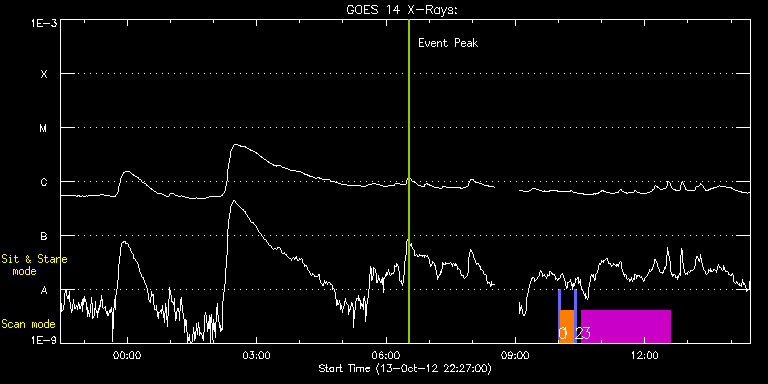 EIS Observation timeline overlay to GOES-Xray curve Code 1" 2" 40" 266" EIS Observations list for this event: STUDY ACRONYM ID DATE OBSERVED DESCRIPTION NOAA# TARGET 0 PRY_slot_context_v3 | 29968 | 2012/10/14 09:59:20 | Active Region Transient Brightenings ( | 1589 | Active Region TIMELINE ID DATE OBSERVED FITS FILE XCEN (+W/-E) YCEN (+N/-S) DUR ----------------------------------------------------------------------------------------------------------------- 29968 | 2012/10/14 09:59:20.000 | eis_l0_20121014_095920.fits.gz | -286.12 | 96.91 | 2m56s 1 cam_artb_cds_a_lite | 29969 | 2012/10/14 10:02:41 | Active Region Transient Brightenings ( | 1589 | Active Region TIMELINE ID DATE OBSERVED FITS FILE XCEN (+W/-E) YCEN (+N/-S) DUR ----------------------------------------------------------------------------------------------------------------- 29969 | 2012/10/14 10:02:41.000 | eis_l0_20121014_100241.fits.gz | -270.67 | 96.75 | 19m25s 2 PRY_slot_context_v3 | 29970 | 2012/10/14 10:22:18 | Active Region Transient Brightenings ( | 1589 | Active Region TIMELINE ID DATE OBSERVED FITS FILE XCEN (+W/-E) YCEN (+N/-S) DUR ----------------------------------------------------------------------------------------------------------------- 29970 | 2012/10/14 10:22:18.000 | eis_l0_20121014_102218.fits.gz | -282.80 | 96.68 | 2m56s 3 HPW021_VEL_240x512v1 | 29971 | 2012/10/14 10:32:19 | Diagnostic scan of AR. | 1589 | Active Region TIMELINE ID DATE OBSERVED FITS FILE XCEN (+W/-E) YCEN (+N/-S) DUR ----------------------------------------------------------------------------------------------------------------- 29971 | 2012/10/14 10:32:19.000 | eis_l0_20121014_103219.fits.gz | -266.28 | 96.60 | 2h3m48s : Check study information : Download file : View thumbnails For this event, also check for: