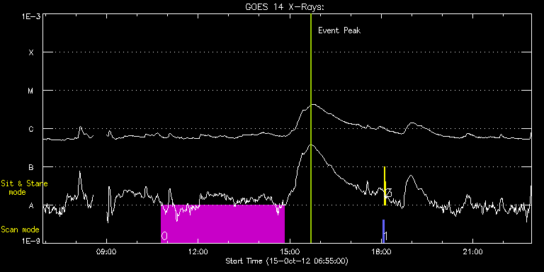 EIS Observation timeline overlay to GOES-Xray curve Code 1" 2" 40" 266" EIS Observations list for this event: STUDY ACRONYM ID DATE OBSERVED DESCRIPTION NOAA# TARGET 0 HPW021_VEL_120x512v3 | 29976 | 2012/10/15 10:47:33 | Test of Long Exposure Outflow Study (W | 1589 | Quiet Sun TIMELINE ID DATE OBSERVED FITS FILE XCEN (+W/-E) YCEN (+N/-S) DUR ----------------------------------------------------------------------------------------------------------------- 29976 | 2012/10/15 10:47:33.000 | eis_l0_20121015_104733.fits.gz | 92.09 | 230.05 | 4h1m54s 1 PRY_slot_contextLITE | 29965 | 2012/10/15 18:02:32 | Change of EIS pointing and alignment w | 1589 | Active Region TIMELINE ID DATE OBSERVED FITS FILE XCEN (+W/-E) YCEN (+N/-S) DUR ----------------------------------------------------------------------------------------------------------------- 29965 | 2012/10/15 18:02:32.000 | eis_l0_20121015_180232.fits.gz | -15.37 | -0.58 | 2m57s 2 Alignment_266 | 29966 | 2012/10/15 18:05:47 | Change of EIS pointing and alignment w | 1589 | Quiet Sun TIMELINE ID DATE OBSERVED FITS FILE XCEN (+W/-E) YCEN (+N/-S) DUR ----------------------------------------------------------------------------------------------------------------- 29966 | 2012/10/15 18:05:47.000 | eis_l0_20121015_180547.fits.gz | -132.57 | -0.50 | 1m22s 3 XRT_synop_AIA | 29967 | 2012/10/15 18:08:22 | Change of EIS pointing and alignment w | 1589 | Quiet Sun TIMELINE ID DATE OBSERVED FITS FILE XCEN (+W/-E) YCEN (+N/-S) DUR ----------------------------------------------------------------------------------------------------------------- 29967 | 2012/10/15 18:08:22.000 | eis_l0_20121015_180822.fits.gz | -132.49 | -0.50 | 10s : Check study information : Download file : View thumbnails For this event, also check for: