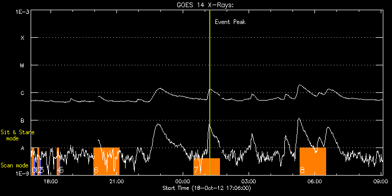 EIS Observation timeline overlay to GOES-Xray curve Code 1" 2" 40" 266" EIS Observations list for this event: STUDY ACRONYM ID DATE OBSERVED DESCRIPTION NOAA# TARGET 0 SK_DEEP_10x512_SLIT2 | 30072 | 2012/10/18 17:08:33 | HOP79 latitude irradiance scan. | | Quiet Sun TIMELINE ID DATE OBSERVED FITS FILE XCEN (+W/-E) YCEN (+N/-S) DUR ----------------------------------------------------------------------------------------------------------------- 30072 | 2012/10/18 17:08:33.000 | eis_l0_20121018_170833.fits.gz | 552.54 | 154.69 | 5m8s 1 PRY_slot_contextLITE | 30073 | 2012/10/18 17:13:52 | HOP79 latitude irradiance scan. | 1589 | Active Region TIMELINE ID DATE OBSERVED FITS FILE XCEN (+W/-E) YCEN (+N/-S) DUR ----------------------------------------------------------------------------------------------------------------- 30073 | 2012/10/18 17:13:52.000 | eis_l0_20121018_171352.fits.gz | 537.73 | 154.61 | 2m57s 2 SK_DEEP_10x512_SLIT2 | 30074 | 2012/10/18 17:23:33 | HOP79 latitude irradiance scan. | | Quiet Sun TIMELINE ID DATE OBSERVED FITS FILE XCEN (+W/-E) YCEN (+N/-S) DUR ----------------------------------------------------------------------------------------------------------------- 30074 | 2012/10/18 17:23:33.000 | eis_l0_20121018_172333.fits.gz | 731.45 | 172.69 | 5m7s 3 PRY_slot_contextLITE | 30075 | 2012/10/18 17:28:52 | HOP79 latitude irradiance scan. | 1589 | Active Region TIMELINE ID DATE OBSERVED FITS FILE XCEN (+W/-E) YCEN (+N/-S) DUR ----------------------------------------------------------------------------------------------------------------- 30075 | 2012/10/18 17:28:52.000 | eis_l0_20121018_172852.fits.gz | 716.55 | 172.69 | 2m56s 4 SK_DEEP_10x512_SLIT2 | 30076 | 2012/10/18 18:17:33 | HOP79 latitude irradiance scan. | | Quiet Sun TIMELINE ID DATE OBSERVED FITS FILE XCEN (+W/-E) YCEN (+N/-S) DUR ----------------------------------------------------------------------------------------------------------------- 30076 | 2012/10/18 18:17:33.000 | eis_l0_20121018_181733.fits.gz | 899.46 | 212.70 | 5m8s 5 PRY_slot_contextLITE | 30077 | 2012/10/18 18:22:53 | HOP79 latitude irradiance scan. | 1589 | Active Region TIMELINE ID DATE OBSERVED FITS FILE XCEN (+W/-E) YCEN (+N/-S) DUR ----------------------------------------------------------------------------------------------------------------- 30077 | 2012/10/18 18:22:53.000 | eis_l0_20121018_182253.fits.gz | 884.80 | 212.47 | 2m56s 6 GDZ_300x384_S2S3_40 | 30080 | 2012/10/18 19:57:12 | Flows Near Active Region Neutral Lines | 1593 | Active Region TIMELINE ID DATE OBSERVED FITS FILE XCEN (+W/-E) YCEN (+N/-S) DUR ----------------------------------------------------------------------------------------------------------------- 30080 | 2012/10/18 19:57:12.000 | eis_l0_20121018_195712.fits.gz | -555.98 | 154.92 | 1h10m8s 7 GDZ_300x384_S2S3_40 | 30081 | 2012/10/19 00:30:13 | Flows Near Active Region Neutral Lines | 1593 | Active Region TIMELINE ID DATE OBSERVED FITS FILE XCEN (+W/-E) YCEN (+N/-S) DUR ----------------------------------------------------------------------------------------------------------------- 30081 | 2012/10/19 00:30:13.000 | eis_l0_20121019_003013.fits.gz | -522.45 | 153.07 | 1h10m8s 8 GDZ_300x384_S2S3_40 | 30082 | 2012/10/19 05:19:43 | Flows Near Active Region Neutral Lines | 1593 | Active Region TIMELINE ID DATE OBSERVED FITS FILE XCEN (+W/-E) YCEN (+N/-S) DUR ----------------------------------------------------------------------------------------------------------------- 30082 | 2012/10/19 05:19:43.000 | eis_l0_20121019_051943.fits.gz | -485.76 | 150.90 | 1h10m9s : Check study information : Download file : View thumbnails For this event, also check for: