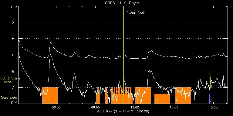 EIS Observation timeline overlay to GOES-Xray curve Code 1" 2" 40" 266" EIS Observations list for this event: STUDY ACRONYM ID DATE OBSERVED DESCRIPTION NOAA# TARGET 0 GDZ_300x384_S2S3_40 | 30098 | 2012/10/21 04:56:13 | Flows Near Active Region Neutral Lines | 1593 | Active Region TIMELINE ID DATE OBSERVED FITS FILE XCEN (+W/-E) YCEN (+N/-S) DUR ----------------------------------------------------------------------------------------------------------------- 30098 | 2012/10/21 04:56:13.000 | eis_l0_20121021_045613.fits.gz | -80.60 | 141.10 | 1h10m9s 1 HH_Flare+AR_180x152H | 30088 | 2012/10/21 09:03:14 | Chromospheric Solar Flares. Joint Obse | 1593 | Flare TIMELINE ID DATE OBSERVED FITS FILE XCEN (+W/-E) YCEN (+N/-S) DUR ----------------------------------------------------------------------------------------------------------------- 30088 | 2012/10/21 09:03:14.000 | eis_l0_20121021_090314.fits.gz | -74.68 | 155.54 | 5m17s 30088 | 2012/10/21 09:08:34.000 | eis_l0_20121021_090834.fits.gz | -73.91 | 155.54 | 5m18s 30088 | 2012/10/21 09:13:55.000 | eis_l0_20121021_091355.fits.gz | -72.98 | 155.62 | 5m17s 2 HH_Flare+AR_180x152H | 30093 | 2012/10/21 09:45:43 | Chromospheric Solar Flares. Joint Obse | 1593 | Flare TIMELINE ID DATE OBSERVED FITS FILE XCEN (+W/-E) YCEN (+N/-S) DUR ----------------------------------------------------------------------------------------------------------------- 30093 | 2012/10/21 09:45:43.000 | eis_l0_20121021_094543.fits.gz | -68.27 | 155.62 | 5m18s 30093 | 2012/10/21 09:51:04.000 | eis_l0_20121021_095104.fits.gz | -67.49 | 155.62 | 5m18s 3 HH_Flare+AR_180x152H | 30089 | 2012/10/21 10:13:14 | Chromospheric Solar Flares. Joint Obse | 1593 | Flare TIMELINE ID DATE OBSERVED FITS FILE XCEN (+W/-E) YCEN (+N/-S) DUR ----------------------------------------------------------------------------------------------------------------- 30089 | 2012/10/21 10:13:14.000 | eis_l0_20121021_101314.fits.gz | -64.25 | 155.62 | 5m18s 30089 | 2012/10/21 10:18:35.000 | eis_l0_20121021_101835.fits.gz | -63.48 | 155.46 | 5m19s 30089 | 2012/10/21 10:23:56.000 | eis_l0_20121021_102356.fits.gz | -62.55 | 155.62 | 5m18s 30089 | 2012/10/21 10:29:17.000 | eis_l0_20121021_102917.fits.gz | -61.78 | 155.46 | 5m18s 30089 | 2012/10/21 10:34:38.000 | eis_l0_20121021_103438.fits.gz | -61.08 | 155.54 | 5m18s 30089 | 2012/10/21 10:39:59.000 | eis_l0_20121021_103959.fits.gz | -60.16 | 155.54 | 5m17s 30089 | 2012/10/21 10:45:19.000 | eis_l0_20121021_104519.fits.gz | -59.38 | 155.54 | 5m18s 30089 | 2012/10/21 10:50:40.000 | eis_l0_20121021_105040.fits.gz | -58.61 | 155.39 | 5m18s 30089 | 2012/10/21 10:56:00.000 | eis_l0_20121021_105600.fits.gz | -57.76 | 155.54 | 5m19s 30089 | 2012/10/21 11:01:22.000 | eis_l0_20121021_110122.fits.gz | -56.99 | 155.54 | 5m18s 30089 | 2012/10/21 11:06:43.000 | eis_l0_20121021_110643.fits.gz | -56.22 | 155.54 | 5m18s 30089 | 2012/10/21 11:12:03.000 | eis_l0_20121021_111203.fits.gz | -55.44 | 155.62 | 5m19s 30089 | 2012/10/21 11:17:25.000 | eis_l0_20121021_111725.fits.gz | -54.59 | 155.54 | 5m17s 30089 | 2012/10/21 11:22:45.000 | eis_l0_20121021_112245.fits.gz | -53.82 | 155.62 | 5m18s 30089 | 2012/10/21 11:28:06.000 | eis_l0_20121021_112806.fits.gz | -52.97 | 155.62 | 5m18s 30089 | 2012/10/21 11:33:26.000 | eis_l0_20121021_113326.fits.gz | -52.20 | 155.70 | 5m18s 30089 | 2012/10/21 11:38:47.000 | eis_l0_20121021_113847.fits.gz | -51.35 | 155.54 | 5m18s 30089 | 2012/10/21 11:44:08.000 | eis_l0_20121021_114408.fits.gz | -50.65 | 155.62 | 5m18s 4 GDZ_300x384_S2S3_40 | 30099 | 2012/10/21 12:03:14 | Flows Near Active Region Neutral Lines | 1593 | Active Region TIMELINE ID DATE OBSERVED FITS FILE XCEN (+W/-E) YCEN (+N/-S) DUR ----------------------------------------------------------------------------------------------------------------- 30099 | 2012/10/21 12:03:14.000 | eis_l0_20121021_120314.fits.gz | -16.25 | 141.10 | 1h10m8s 5 GDZ_300x384_S2S3_40 | 30103 | 2012/10/21 13:30:13 | Flows Near Active Region Neutral Lines | 1593 | Active Region TIMELINE ID DATE OBSERVED FITS FILE XCEN (+W/-E) YCEN (+N/-S) DUR ----------------------------------------------------------------------------------------------------------------- 30103 | 2012/10/21 13:30:13.000 | eis_l0_20121021_133013.fits.gz | -3.19 | 141.17 | 1h10m8s 6 GDZ_300x384_S2S3_40 | 30104 | 2012/10/21 15:06:43 | Flows Near Active Region Neutral Lines | 1593 | Active Region TIMELINE ID DATE OBSERVED FITS FILE XCEN (+W/-E) YCEN (+N/-S) DUR ----------------------------------------------------------------------------------------------------------------- 30104 | 2012/10/21 15:06:43.000 | eis_l0_20121021_150643.fits.gz | 11.25 | 141.33 | 1h10m7s 7 PRY_slot_contextLITE | 30116 | 2012/10/21 17:41:20 | Change of EIS pointing and alignment w | 1593 | Active Region TIMELINE ID DATE OBSERVED FITS FILE XCEN (+W/-E) YCEN (+N/-S) DUR ----------------------------------------------------------------------------------------------------------------- 30116 | 2012/10/21 17:41:20.000 | eis_l0_20121021_174120.fits.gz | -15.29 | -0.58 | 2m57s 8 Alignment_266 | 30117 | 2012/10/21 17:44:35 | Change of EIS pointing and alignment w | 1593 | Quiet Sun TIMELINE ID DATE OBSERVED FITS FILE XCEN (+W/-E) YCEN (+N/-S) DUR ----------------------------------------------------------------------------------------------------------------- 30117 | 2012/10/21 17:44:35.000 | eis_l0_20121021_174435.fits.gz | -132.57 | -0.50 | 1m22s 9 XRT_synop_AIA | 30118 | 2012/10/21 17:47:09 | Change of EIS pointing and alignment w | 1593 | Quiet Sun TIMELINE ID DATE OBSERVED FITS FILE XCEN (+W/-E) YCEN (+N/-S) DUR ----------------------------------------------------------------------------------------------------------------- 30118 | 2012/10/21 17:47:09.000 | eis_l0_20121021_174709.fits.gz | -132.57 | -0.42 | 11s : Check study information : Download file : View thumbnails For this event, also check for: