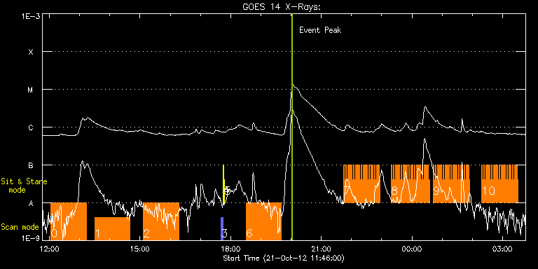EIS Observation timeline overlay to GOES-Xray curve Code 1" 2" 40" 266" EIS Observations list for this event: STUDY ACRONYM ID DATE OBSERVED DESCRIPTION NOAA# TARGET 0 GDZ_300x384_S2S3_40 | 30099 | 2012/10/21 12:03:14 | Flows Near Active Region Neutral Lines | 1593 | Active Region TIMELINE ID DATE OBSERVED FITS FILE XCEN (+W/-E) YCEN (+N/-S) DUR ----------------------------------------------------------------------------------------------------------------- 30099 | 2012/10/21 12:03:14.000 | eis_l0_20121021_120314.fits.gz | -16.25 | 141.10 | 1h10m8s 1 GDZ_300x384_S2S3_40 | 30103 | 2012/10/21 13:30:13 | Flows Near Active Region Neutral Lines | 1593 | Active Region TIMELINE ID DATE OBSERVED FITS FILE XCEN (+W/-E) YCEN (+N/-S) DUR ----------------------------------------------------------------------------------------------------------------- 30103 | 2012/10/21 13:30:13.000 | eis_l0_20121021_133013.fits.gz | -3.19 | 141.17 | 1h10m8s 2 GDZ_300x384_S2S3_40 | 30104 | 2012/10/21 15:06:43 | Flows Near Active Region Neutral Lines | 1593 | Active Region TIMELINE ID DATE OBSERVED FITS FILE XCEN (+W/-E) YCEN (+N/-S) DUR ----------------------------------------------------------------------------------------------------------------- 30104 | 2012/10/21 15:06:43.000 | eis_l0_20121021_150643.fits.gz | 11.25 | 141.33 | 1h10m7s 3 PRY_slot_contextLITE | 30116 | 2012/10/21 17:41:20 | Change of EIS pointing and alignment w | 1593 | Active Region TIMELINE ID DATE OBSERVED FITS FILE XCEN (+W/-E) YCEN (+N/-S) DUR ----------------------------------------------------------------------------------------------------------------- 30116 | 2012/10/21 17:41:20.000 | eis_l0_20121021_174120.fits.gz | -15.29 | -0.58 | 2m57s 4 Alignment_266 | 30117 | 2012/10/21 17:44:35 | Change of EIS pointing and alignment w | 1593 | Quiet Sun TIMELINE ID DATE OBSERVED FITS FILE XCEN (+W/-E) YCEN (+N/-S) DUR ----------------------------------------------------------------------------------------------------------------- 30117 | 2012/10/21 17:44:35.000 | eis_l0_20121021_174435.fits.gz | -132.57 | -0.50 | 1m22s 5 XRT_synop_AIA | 30118 | 2012/10/21 17:47:09 | Change of EIS pointing and alignment w | 1593 | Quiet Sun TIMELINE ID DATE OBSERVED FITS FILE XCEN (+W/-E) YCEN (+N/-S) DUR ----------------------------------------------------------------------------------------------------------------- 30118 | 2012/10/21 17:47:09.000 | eis_l0_20121021_174709.fits.gz | -132.57 | -0.42 | 11s 6 GDZ_300x384_S2S3_40 | 30105 | 2012/10/21 18:30:20 | Flows Near Active Region Neutral Lines | 1593 | Active Region TIMELINE ID DATE OBSERVED FITS FILE XCEN (+W/-E) YCEN (+N/-S) DUR ----------------------------------------------------------------------------------------------------------------- 30105 | 2012/10/21 18:30:20.000 | eis_l0_20121021_183020.fits.gz | 41.99 | 141.56 | 1h10m9s 7 SI_Venus_slit_v2 | 30123 | 2012/10/21 21:44:40 | Flareing loop observation on the W-lim | | Quiet Sun TIMELINE ID DATE OBSERVED FITS FILE XCEN (+W/-E) YCEN (+N/-S) DUR ----------------------------------------------------------------------------------------------------------------- 30123 | 2012/10/21 21:44:40.000 | eis_l0_20121021_214440.fits.gz | 1079.59 | 199.63 | 1m40s 30123 | 2012/10/21 21:46:34.000 | eis_l0_20121021_214634.fits.gz | 1079.59 | 199.63 | 1m40s 30123 | 2012/10/21 21:48:28.000 | eis_l0_20121021_214828.fits.gz | 1079.51 | 199.55 | 1m40s 30123 | 2012/10/21 21:50:22.000 | eis_l0_20121021_215022.fits.gz | 1079.59 | 199.63 | 1m40s 30123 | 2012/10/21 21:52:16.000 | eis_l0_20121021_215216.fits.gz | 1079.66 | 199.63 | 1m40s 30123 | 2012/10/21 21:54:10.000 | eis_l0_20121021_215410.fits.gz | 1079.66 | 199.63 | 1m40s 30123 | 2012/10/21 21:56:04.000 | eis_l0_20121021_215604.fits.gz | 1079.66 | 199.55 | 1m40s 30123 | 2012/10/21 21:57:58.000 | eis_l0_20121021_215758.fits.gz | 1079.51 | 199.63 | 1m40s 30123 | 2012/10/21 21:59:52.000 | eis_l0_20121021_215952.fits.gz | 1079.59 | 199.78 | 1m40s 30123 | 2012/10/21 22:01:46.000 | eis_l0_20121021_220146.fits.gz | 1079.59 | 199.63 | 1m40s 30123 | 2012/10/21 22:03:40.000 | eis_l0_20121021_220340.fits.gz | 1079.51 | 199.71 | 1m40s 30123 | 2012/10/21 22:05:34.000 | eis_l0_20121021_220534.fits.gz | 1079.59 | 199.55 | 1m40s 30123 | 2012/10/21 22:07:28.000 | eis_l0_20121021_220728.fits.gz | 1079.59 | 199.63 | 1m41s 30123 | 2012/10/21 22:09:22.000 | eis_l0_20121021_220922.fits.gz | 1079.59 | 199.55 | 1m41s 30123 | 2012/10/21 22:11:16.000 | eis_l0_20121021_221116.fits.gz | 1079.59 | 199.55 | 1m41s 30123 | 2012/10/21 22:13:11.000 | eis_l0_20121021_221311.fits.gz | 1079.59 | 199.63 | 1m40s 30123 | 2012/10/21 22:15:05.000 | eis_l0_20121021_221505.fits.gz | 1079.59 | 199.55 | 1m40s 30123 | 2012/10/21 22:16:59.000 | eis_l0_20121021_221659.fits.gz | 1079.59 | 199.71 | 1m40s 30123 | 2012/10/21 22:18:53.000 | eis_l0_20121021_221853.fits.gz | 1079.59 | 199.71 | 1m40s 30123 | 2012/10/21 22:20:47.000 | eis_l0_20121021_222047.fits.gz | 1079.51 | 199.71 | 1m40s 30123 | 2012/10/21 22:22:41.000 | eis_l0_20121021_222241.fits.gz | 1079.51 | 199.63 | 1m40s 30123 | 2012/10/21 22:24:35.000 | eis_l0_20121021_222435.fits.gz | 1079.59 | 199.71 | 1m40s 30123 | 2012/10/21 22:26:29.000 | eis_l0_20121021_222629.fits.gz | 1079.66 | 199.63 | 1m40s 30123 | 2012/10/21 22:28:23.000 | eis_l0_20121021_222823.fits.gz | 1079.59 | 199.55 | 1m40s 30123 | 2012/10/21 22:30:17.000 | eis_l0_20121021_223017.fits.gz | 1079.59 | 199.63 | 1m40s 30123 | 2012/10/21 22:32:11.000 | eis_l0_20121021_223211.fits.gz | 1079.59 | 199.63 | 1m40s 30123 | 2012/10/21 22:34:05.000 | eis_l0_20121021_223405.fits.gz | 1079.59 | 199.71 | 1m40s 30123 | 2012/10/21 22:35:59.000 | eis_l0_20121021_223559.fits.gz | 1079.51 | 199.63 | 1m41s 30123 | 2012/10/21 22:37:53.000 | eis_l0_20121021_223753.fits.gz | 1079.59 | 199.63 | 1m40s 30123 | 2012/10/21 22:39:47.000 | eis_l0_20121021_223947.fits.gz | 1079.66 | 199.63 | 1m41s 30123 | 2012/10/21 22:41:41.000 | eis_l0_20121021_224141.fits.gz | 1079.51 | 199.71 | 1m41s 30123 
