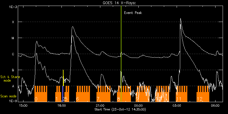 EIS Observation timeline overlay to GOES-Xray curve Code 1" 2" 40" 266" EIS Observations list for this event: STUDY ACRONYM ID DATE OBSERVED DESCRIPTION NOAA# TARGET 0 HH_Flare+AR_180x152 | 30134 | 2012/10/22 15:53:14 | MMMF on AR11598 | 1598 | Flare TIMELINE ID DATE OBSERVED FITS FILE XCEN (+W/-E) YCEN (+N/-S) DUR ----------------------------------------------------------------------------------------------------------------- 30134 | 2012/10/22 15:53:14.000 | eis_l0_20121022_155314.fits.gz | -835.26 | -268.86 | 5m17s 30134 | 2012/10/22 15:58:34.000 | eis_l0_20121022_155834.fits.gz | -834.95 | -268.78 | 5m18s 30134 | 2012/10/22 16:03:55.000 | eis_l0_20121022_160355.fits.gz | -834.56 | -268.93 | 5m18s 30134 | 2012/10/22 16:09:16.000 | eis_l0_20121022_160916.fits.gz | -834.26 | -269.01 | 5m18s 30134 | 2012/10/22 16:14:37.000 | eis_l0_20121022_161437.fits.gz | -833.87 | -269.09 | 5m19s 30134 | 2012/10/22 16:19:58.000 | eis_l0_20121022_161958.fits.gz | -833.48 | -269.09 | 5m18s 30134 | 2012/10/22 16:25:19.000 | eis_l0_20121022_162519.fits.gz | -833.10 | -269.24 | 5m18s 30134 | 2012/10/22 16:30:40.000 | eis_l0_20121022_163040.fits.gz | -832.71 | -269.24 | 5m18s 30134 | 2012/10/22 16:36:00.000 | eis_l0_20121022_163600.fits.gz | -832.40 | -269.32 | 5m18s 30134 | 2012/10/22 16:41:21.000 | eis_l0_20121022_164121.fits.gz | -832.02 | -269.32 | 5m19s 30134 | 2012/10/22 16:46:43.000 | eis_l0_20121022_164643.fits.gz | -831.63 | -269.48 | 5m17s 1 HH_Flare+AR_180x152 | 30135 | 2012/10/22 17:30:14 | MMMF on AR11598 | 1598 | Flare TIMELINE ID DATE OBSERVED FITS FILE XCEN (+W/-E) YCEN (+N/-S) DUR ----------------------------------------------------------------------------------------------------------------- 30135 | 2012/10/22 17:30:14.000 | eis_l0_20121022_173014.fits.gz | -828.62 | -270.02 | 5m18s 30135 | 2012/10/22 17:35:34.000 | eis_l0_20121022_173534.fits.gz | -828.15 | -270.09 | 5m19s 30135 | 2012/10/22 17:40:55.000 | eis_l0_20121022_174055.fits.gz | -827.84 | -270.09 | 5m18s 30135 | 2012/10/22 17:46:15.000 | eis_l0_20121022_174615.fits.gz | -827.46 | -270.25 | 5m18s 30135 | 2012/10/22 17:51:36.000 | eis_l0_20121022_175136.fits.gz | -827.07 | -270.25 | 5m18s 2 PRY_slot_contextLITE | 30119 | 2012/10/22 18:03:21 | Change of EIS pointing and alignment w | 1593 | Active Region TIMELINE ID DATE OBSERVED FITS FILE XCEN (+W/-E) YCEN (+N/-S) DUR ----------------------------------------------------------------------------------------------------------------- 30119 | 2012/10/22 18:03:21.000 | eis_l0_20121022_180321.fits.gz | -15.29 | -0.27 | 2m57s 3 Alignment_266 | 30120 | 2012/10/22 18:06:36 | Change of EIS pointing and alignment w | | Quiet Sun TIMELINE ID DATE OBSERVED FITS FILE XCEN (+W/-E) YCEN (+N/-S) DUR ----------------------------------------------------------------------------------------------------------------- 30120 | 2012/10/22 18:06:36.000 | eis_l0_20121022_180636.fits.gz | -132.57 | -0.42 | 1m22s 4 XRT_synop_AIA | 30121 | 2012/10/22 18:08:43 | Change of EIS pointing and alignment w | | Quiet Sun TIMELINE ID DATE OBSERVED FITS FILE XCEN (+W/-E) YCEN (+N/-S) DUR ----------------------------------------------------------------------------------------------------------------- 30121 | 2012/10/22 18:08:43.000 | eis_l0_20121022_180843.fits.gz | -132.41 | -0.50 | 10s 5 HH_Flare+AR_180x152 | 30136 | 2012/10/22 18:13:21 | MMMF on AR11598 | 1598 | Flare TIMELINE ID DATE OBSERVED FITS FILE XCEN (+W/-E) YCEN (+N/-S) DUR ----------------------------------------------------------------------------------------------------------------- 30136 | 2012/10/22 18:13:21.000 | eis_l0_20121022_181321.fits.gz | -825.53 | -270.56 | 5m18s 30136 | 2012/10/22 18:18:42.000 | eis_l0_20121022_181842.fits.gz | -825.06 | -270.56 | 5m18s 30136 | 2012/10/22 18:24:03.000 | eis_l0_20121022_182403.fits.gz | -824.75 | -270.56 | 5m18s 30136 | 2012/10/22 18:29:24.000 | eis_l0_20121022_182924.fits.gz | -824.37 | -270.64 | 5m18s 6 HH_Flare+AR_180x152 | 30137 | 2012/10/22 19:07:11 | MMMF on AR11598 | 1598 | Flare TIMELINE ID DATE OBSERVED FITS FILE XCEN (+W/-E) YCEN (+N/-S) DUR ----------------------------------------------------------------------------------------------------------------- 30137 | 2012/10/22 19:07:11.000 | eis_l0_20121022_190711.fits.gz | -821.59 | -271.18 | 5m18s 30137 | 2012/10/22 19:12:31.000 | eis_l0_20121022_191231.fits.gz | -821.28 | -271.18 | 5m18s 30137 | 2012/10/22 19:17:52.000 | eis_l0_20121022_191752.fits.gz | -820.81 | -271.25 | 5m18s 30137 | 2012/10/22 19:23:13.000 | eis_l0_20121022_192313.fits.gz | -820.43 | -271.33 | 5m18s 30137 | 2012/10/22 19:28:34.000 | eis_l0_20121022_192834.fits.gz | -820.04 | -271.41 | 5m18s 30137 | 2012/10/22 19:33:55.000 | eis_l0_20121022_193355.fits.gz | -819.66 | -271.48 | 5m18s 30137 | 2012/10/22 19:39:16.000 | eis_l0_20121022_193916.fits.gz | -819.27 | -271.56 | 5m17s 30137 | 2012/10/22 19:44:36.000 | eis_l0_20121022_194436.fits.gz | -818.88 | -271.56 | 5m17s 30137 | 2012/10/22 19:49:56.000 | eis_l0_20121022_194956.fits.gz | -818.57 | -271.56 | 5m18s 30137 | 2012/10/22 19:55:17.000 | eis_l0_20121022_195517.fits.gz | -818.19 | -271.64 | 5m18s 30137 | 2012/10/22 20:00:37.000 | eis_l0_20121022_200037.fits.gz | -817.72 | -271.64 | 5m18s 30137 | 2012/10/22 20:05:58.000 | eis_l0_20121022_200558.fits.gz | -817.26 | -271.79 | 5m18s 7 HH_Flare+AR_180x152 | 30138 | 2012/10/22 20:44:14 | MMMF on AR11598 | 1598 | Flare TIMELINE ID DATE OBSERVED FITS FILE XCEN (+W/-E) YCEN (+N/-S) DUR ----------------------------------------------------------------------------------------------------------------- 30138 | 2012/10/22 20:44:14.000 | eis_l0_20121022_204414.fits.gz | -814.48 | -272.26 | 5m18s 30138 | 2012/10/22 20:49:34.000 | eis_l0_20121022_204934.fits.gz | -814.02 | -272.33 | 5m18s 30138 | 2012/10/22 20:54:55.000 | eis_l0_20121022_205455.fits.gz | -813.63 | -272.41 | 5m18s 30138 | 2012/10/22 21:00:16.000 | eis_l0_20121022_210016.fits.gz | -813.32 | -272.33 | 5m18s 30138 | 2012/10/22 21:05:37.000 