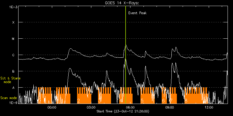 EIS Observation timeline overlay to GOES-Xray curve Code 1" 2" 40" 266" EIS Observations list for this event: STUDY ACRONYM ID DATE OBSERVED DESCRIPTION NOAA# TARGET 0 HH_Flare+AR_180x152 | 30165 | 2012/10/23 22:56:13 | MMMF on AR11598 | 1598 | Flare TIMELINE ID DATE OBSERVED FITS FILE XCEN (+W/-E) YCEN (+N/-S) DUR ----------------------------------------------------------------------------------------------------------------- 30165 | 2012/10/23 22:56:13.000 | eis_l0_20121023_225613.fits.gz | -704.40 | -289.95 | 5m18s 30165 | 2012/10/23 23:01:34.000 | eis_l0_20121023_230134.fits.gz | -703.86 | -289.95 | 5m17s 30165 | 2012/10/23 23:06:54.000 | eis_l0_20121023_230654.fits.gz | -703.24 | -289.95 | 5m18s 30165 | 2012/10/23 23:12:15.000 | eis_l0_20121023_231215.fits.gz | -702.78 | -290.02 | 5m17s 30165 | 2012/10/23 23:17:35.000 | eis_l0_20121023_231735.fits.gz | -702.24 | -290.10 | 5m18s 30165 | 2012/10/23 23:22:56.000 | eis_l0_20121023_232256.fits.gz | -701.70 | -290.26 | 5m17s 30165 | 2012/10/23 23:28:16.000 | eis_l0_20121023_232816.fits.gz | -701.16 | -290.26 | 5m17s 30165 | 2012/10/23 23:33:36.000 | eis_l0_20121023_233336.fits.gz | -700.69 | -290.26 | 5m18s 30165 | 2012/10/23 23:38:57.000 | eis_l0_20121023_233857.fits.gz | -700.15 | -290.33 | 5m19s 30165 | 2012/10/23 23:44:19.000 | eis_l0_20121023_234419.fits.gz | -699.53 | -290.49 | 5m17s 30165 | 2012/10/23 23:49:39.000 | eis_l0_20121023_234939.fits.gz | -698.92 | -290.41 | 5m17s 30165 | 2012/10/23 23:54:59.000 | eis_l0_20121023_235459.fits.gz | -698.53 | -290.49 | 5m19s 1 HH_Flare+AR_180x152 | 30166 | 2012/10/24 00:20:13 | MMMF on AR11598 | 1598 | Flare TIMELINE ID DATE OBSERVED FITS FILE XCEN (+W/-E) YCEN (+N/-S) DUR ----------------------------------------------------------------------------------------------------------------- 30166 | 2012/10/24 00:20:13.000 | eis_l0_20121024_002013.fits.gz | -695.90 | -290.57 | 5m17s 30166 | 2012/10/24 00:25:33.000 | eis_l0_20121024_002533.fits.gz | -695.44 | -290.72 | 5m18s 30166 | 2012/10/24 00:30:53.000 | eis_l0_20121024_003053.fits.gz | -694.90 | -290.72 | 5m19s 30166 | 2012/10/24 00:36:15.000 | eis_l0_20121024_003615.fits.gz | -694.28 | -290.87 | 5m18s 30166 | 2012/10/24 00:41:36.000 | eis_l0_20121024_004136.fits.gz | -693.82 | -290.87 | 5m18s 30166 | 2012/10/24 00:46:57.000 | eis_l0_20121024_004657.fits.gz | -693.20 | -290.95 | 5m18s 30166 | 2012/10/24 00:52:18.000 | eis_l0_20121024_005218.fits.gz | -692.74 | -291.11 | 5m18s 30166 | 2012/10/24 00:57:39.000 | eis_l0_20121024_005739.fits.gz | -692.20 | -291.11 | 5m18s 30166 | 2012/10/24 01:03:00.000 | eis_l0_20121024_010300.fits.gz | -691.58 | -291.11 | 5m18s 30166 | 2012/10/24 01:08:21.000 | eis_l0_20121024_010821.fits.gz | -691.04 | -291.18 | 5m18s 30166 | 2012/10/24 01:13:42.000 | eis_l0_20121024_011342.fits.gz | -690.57 | -291.18 | 5m18s 30166 | 2012/10/24 01:19:03.000 | eis_l0_20121024_011903.fits.gz | -689.96 | -291.26 | 5m18s 2 HH_Flare+AR_180x152 | 30167 | 2012/10/24 01:55:13 | MMMF on AR11598 | 1598 | Flare TIMELINE ID DATE OBSERVED FITS FILE XCEN (+W/-E) YCEN (+N/-S) DUR ----------------------------------------------------------------------------------------------------------------- 30167 | 2012/10/24 01:55:13.000 | eis_l0_20121024_015513.fits.gz | -686.33 | -291.49 | 5m18s 30167 | 2012/10/24 02:00:34.000 | eis_l0_20121024_020034.fits.gz | -685.71 | -291.57 | 5m18s 30167 | 2012/10/24 02:05:54.000 | eis_l0_20121024_020554.fits.gz | -685.17 | -291.65 | 5m18s 30167 | 2012/10/24 02:11:15.000 | eis_l0_20121024_021115.fits.gz | -684.63 | -291.80 | 5m18s 30167 | 2012/10/24 02:16:35.000 | eis_l0_20121024_021635.fits.gz | -684.09 | -291.80 | 5m18s 30167 | 2012/10/24 02:21:56.000 | eis_l0_20121024_022156.fits.gz | -683.54 | -291.80 | 5m18s 30167 | 2012/10/24 02:27:17.000 | eis_l0_20121024_022717.fits.gz | -683.00 | -291.95 | 5m17s 30167 | 2012/10/24 02:32:37.000 | eis_l0_20121024_023237.fits.gz | -682.46 | -291.95 | 5m18s 30167 | 2012/10/24 02:37:57.000 | eis_l0_20121024_023757.fits.gz | -681.92 | -292.03 | 5m19s 30167 | 2012/10/24 02:43:19.000 | eis_l0_20121024_024319.fits.gz | -681.30 | -291.95 | 5m17s 30167 | 2012/10/24 02:48:39.000 | eis_l0_20121024_024839.fits.gz | -680.76 | -292.11 | 5m18s 30167 | 2012/10/24 02:54:00.000 | eis_l0_20121024_025400.fits.gz | -680.30 | -292.03 | 5m17s 3 HH_Flare+AR_180x152 | 30168 | 2012/10/24 03:32:13 | MMMF on AR11598 | 1598 | Flare TIMELINE ID DATE OBSERVED FITS FILE XCEN (+W/-E) YCEN (+N/-S) DUR ----------------------------------------------------------------------------------------------------------------- 30168 | 2012/10/24 03:32:13.000 | eis_l0_20121024_033213.fits.gz | -676.21 | -292.50 | 5m18s 30168 | 2012/10/24 03:37:34.000 | eis_l0_20121024_033734.fits.gz | -675.74 | -292.57 | 5m18s 30168 | 2012/10/24 03:42:54.000 | eis_l0_20121024_034254.fits.gz | -675.05 | -292.65 | 5m18s 30168 | 2012/10/24 03:48:15.000 | eis_l0_20121024_034815.fits.gz | -674.66 | -292.57 | 5m17s 30168 | 2012/10/24 03:53:35.000 | eis_l0_20121024_035335.fits.gz | -674.04 | -292.73 | 5m19s 30168 | 2012/10/24 03:58:56.000 | eis_l0_20121024_035856.fits.gz | -673.50 | -292.73 | 5m18s 30168 | 2012/10/24 04:04:17.000 | eis_l0_20121024_040417.fits.gz | -672.96 | -292.73 | 5m17s 30168 | 2012/10/24 04:09:37.000 | eis_l0_20121024_040937.fits.gz | -672.34 | -292.80 | 5m18s 30168 | 2012/10/24 04:14:58.000 | eis_l0_20121024_041458.fits.gz | -671.80 | -292.96 | 5m17s 30168 | 2012/10/24 04:20:18.000 | eis_l0_20121024_042018.fits.gz | -671.18 | -293.04 | 5m19s 30168 | 2012/10/24 04:25:39.000 | eis_l0_20121024_042539.fits.gz | -670.64 | -292.96 | 5m19s 4 HH_Flare+AR_180x152 | 30169 | 2012/10/24 05:09:43 | MMMF on AR11598 | 1598 | Flare TIMELINE ID DATE OBSERVED FITS FILE XCEN (+W/-E) YCEN (+N/-S) DUR ----------------------------------------------------------------------------------------------------------------- 30169 | 2012/10/24 05:09:43.000 | eis_l0_20121024_050943.fits.gz | -666.01 | -293.35 | 5m17s 30169 | 2012/10/24 05:15:03.000 | eis_l0_2012