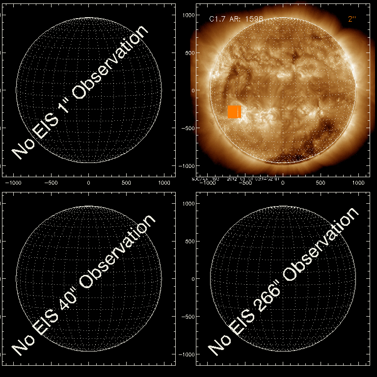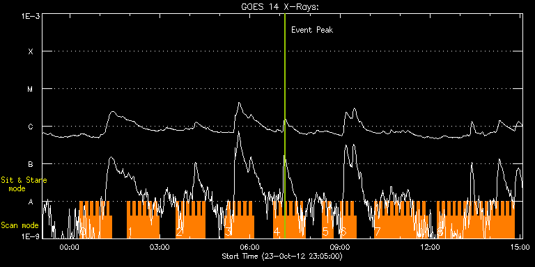 EIS Observation timeline overlay to GOES-Xray curve Code 1" 2" 40" 266" EIS Observations list for this event: STUDY ACRONYM ID DATE OBSERVED DESCRIPTION NOAA# TARGET 0 HH_Flare+AR_180x152 | 30166 | 2012/10/24 00:20:13 | MMMF on AR11598 | 1598 | Flare TIMELINE ID DATE OBSERVED FITS FILE XCEN (+W/-E) YCEN (+N/-S) DUR ----------------------------------------------------------------------------------------------------------------- 30166 | 2012/10/24 00:20:13.000 | eis_l0_20121024_002013.fits.gz | -695.90 | -290.57 | 5m17s 30166 | 2012/10/24 00:25:33.000 | eis_l0_20121024_002533.fits.gz | -695.44 | -290.72 | 5m18s 30166 | 2012/10/24 00:30:53.000 | eis_l0_20121024_003053.fits.gz | -694.90 | -290.72 | 5m19s 30166 | 2012/10/24 00:36:15.000 | eis_l0_20121024_003615.fits.gz | -694.28 | -290.87 | 5m18s 30166 | 2012/10/24 00:41:36.000 | eis_l0_20121024_004136.fits.gz | -693.82 | -290.87 | 5m18s 30166 | 2012/10/24 00:46:57.000 | eis_l0_20121024_004657.fits.gz | -693.20 | -290.95 | 5m18s 30166 | 2012/10/24 00:52:18.000 | eis_l0_20121024_005218.fits.gz | -692.74 | -291.11 | 5m18s 30166 | 2012/10/24 00:57:39.000 | eis_l0_20121024_005739.fits.gz | -692.20 | -291.11 | 5m18s 30166 | 2012/10/24 01:03:00.000 | eis_l0_20121024_010300.fits.gz | -691.58 | -291.11 | 5m18s 30166 | 2012/10/24 01:08:21.000 | eis_l0_20121024_010821.fits.gz | -691.04 | -291.18 | 5m18s 30166 | 2012/10/24 01:13:42.000 | eis_l0_20121024_011342.fits.gz | -690.57 | -291.18 | 5m18s 30166 | 2012/10/24 01:19:03.000 | eis_l0_20121024_011903.fits.gz | -689.96 | -291.26 | 5m18s 1 HH_Flare+AR_180x152 | 30167 | 2012/10/24 01:55:13 | MMMF on AR11598 | 1598 | Flare TIMELINE ID DATE OBSERVED FITS FILE XCEN (+W/-E) YCEN (+N/-S) DUR ----------------------------------------------------------------------------------------------------------------- 30167 | 2012/10/24 01:55:13.000 | eis_l0_20121024_015513.fits.gz | -686.33 | -291.49 | 5m18s 30167 | 2012/10/24 02:00:34.000 | eis_l0_20121024_020034.fits.gz | -685.71 | -291.57 | 5m18s 30167 | 2012/10/24 02:05:54.000 | eis_l0_20121024_020554.fits.gz | -685.17 | -291.65 | 5m18s 30167 | 2012/10/24 02:11:15.000 | eis_l0_20121024_021115.fits.gz | -684.63 | -291.80 | 5m18s 30167 | 2012/10/24 02:16:35.000 | eis_l0_20121024_021635.fits.gz | -684.09 | -291.80 | 5m18s 30167 | 2012/10/24 02:21:56.000 | eis_l0_20121024_022156.fits.gz | -683.54 | -291.80 | 5m18s 30167 | 2012/10/24 02:27:17.000 | eis_l0_20121024_022717.fits.gz | -683.00 | -291.95 | 5m17s 30167 | 2012/10/24 02:32:37.000 | eis_l0_20121024_023237.fits.gz | -682.46 | -291.95 | 5m18s 30167 | 2012/10/24 02:37:57.000 | eis_l0_20121024_023757.fits.gz | -681.92 | -292.03 | 5m19s 30167 | 2012/10/24 02:43:19.000 | eis_l0_20121024_024319.fits.gz | -681.30 | -291.95 | 5m17s 30167 | 2012/10/24 02:48:39.000 | eis_l0_20121024_024839.fits.gz | -680.76 | -292.11 | 5m18s 30167 | 2012/10/24 02:54:00.000 | eis_l0_20121024_025400.fits.gz | -680.30 | -292.03 | 5m17s 2 HH_Flare+AR_180x152 | 30168 | 2012/10/24 03:32:13 | MMMF on AR11598 | 1598 | Flare TIMELINE ID DATE OBSERVED FITS FILE XCEN (+W/-E) YCEN (+N/-S) DUR ----------------------------------------------------------------------------------------------------------------- 30168 | 2012/10/24 03:32:13.000 | eis_l0_20121024_033213.fits.gz | -676.21 | -292.50 | 5m18s 30168 | 2012/10/24 03:37:34.000 | eis_l0_20121024_033734.fits.gz | -675.74 | -292.57 | 5m18s 30168 | 2012/10/24 03:42:54.000 | eis_l0_20121024_034254.fits.gz | -675.05 | -292.65 | 5m18s 30168 | 2012/10/24 03:48:15.000 | eis_l0_20121024_034815.fits.gz | -674.66 | -292.57 | 5m17s 30168 | 2012/10/24 03:53:35.000 | eis_l0_20121024_035335.fits.gz | -674.04 | -292.73 | 5m19s 30168 | 2012/10/24 03:58:56.000 | eis_l0_20121024_035856.fits.gz | -673.50 | -292.73 | 5m18s 30168 | 2012/10/24 04:04:17.000 | eis_l0_20121024_040417.fits.gz | -672.96 | -292.73 | 5m17s 30168 | 2012/10/24 04:09:37.000 | eis_l0_20121024_040937.fits.gz | -672.34 | -292.80 | 5m18s 30168 | 2012/10/24 04:14:58.000 | eis_l0_20121024_041458.fits.gz | -671.80 | -292.96 | 5m17s 30168 | 2012/10/24 04:20:18.000 | eis_l0_20121024_042018.fits.gz | -671.18 | -293.04 | 5m19s 30168 | 2012/10/24 04:25:39.000 | eis_l0_20121024_042539.fits.gz | -670.64 | -292.96 | 5m19s 3 HH_Flare+AR_180x152 | 30169 | 2012/10/24 05:09:43 | MMMF on AR11598 | 1598 | Flare TIMELINE ID DATE OBSERVED FITS FILE XCEN (+W/-E) YCEN (+N/-S) DUR ----------------------------------------------------------------------------------------------------------------- 30169 | 2012/10/24 05:09:43.000 | eis_l0_20121024_050943.fits.gz | -666.01 | -293.35 | 5m17s 30169 | 2012/10/24 05:15:03.000 | eis_l0_20121024_051503.fits.gz | -665.47 | -293.42 | 5m17s 30169 | 2012/10/24 05:20:23.000 | eis_l0_20121024_052023.fits.gz | -664.93 | -293.42 | 5m19s 30169 | 2012/10/24 05:25:45.000 | eis_l0_20121024_052545.fits.gz | -664.23 | -293.65 | 5m18s 30169 | 2012/10/24 05:31:06.000 | eis_l0_20121024_053106.fits.gz | -663.77 | -293.58 | 5m18s 30169 | 2012/10/24 05:36:27.000 | eis_l0_20121024_053627.fits.gz | -663.23 | -293.65 | 5m18s 30169 | 2012/10/24 05:41:48.000 | eis_l0_20121024_054148.fits.gz | -662.61 | -293.65 | 5m18s 30169 | 2012/10/24 05:47:09.000 | eis_l0_20121024_054709.fits.gz | -662.07 | -293.81 | 5m18s 30169 | 2012/10/24 05:52:30.000 | eis_l0_20121024_055230.fits.gz | -661.53 | -293.81 | 5m17s 30169 | 2012/10/24 05:57:50.000 | eis_l0_20121024_055750.fits.gz | -660.91 | -293.81 | 5m19s 30169 | 2012/10/24 06:03:11.000 | eis_l0_20121024_060311.fits.gz | -660.29 | -293.89 | 5m19s 4 HH_Flare+AR_180x152 | 30170 | 2012/10/24 06:47:13 | MMMF on AR11598 | 1598 | Flare TIMELINE ID DATE OBSERVED FITS FILE XCEN (+W/-E) YCEN (+N/-S) DUR ----------------------------------------------------------------------------------------------------------------- 30170 | 2012/10/24 06:47:13.000 | eis_l0_20121024_064713.fits.gz | -655.74 | -294.20 | 5m18s 30170 | 2012/10/24 06:52:34.000 | eis_l0_20121024_065234.fits.gz | -655.04 | -294.27 | 5m18s 30170 | 2012/10/24 06:57:54.000 | eis_l0_2012