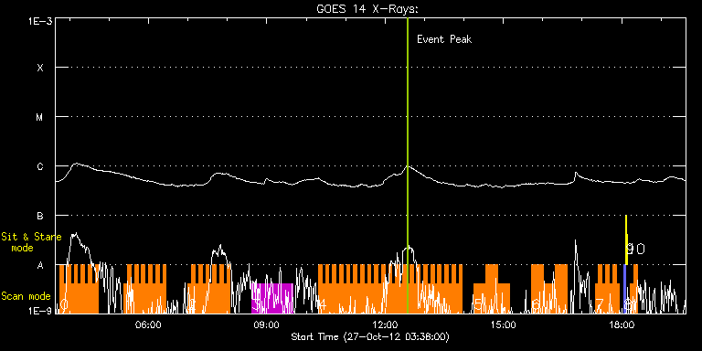 EIS Observation timeline overlay to GOES-Xray curve Code 1" 2" 40" 266" EIS Observations list for this event: STUDY ACRONYM ID DATE OBSERVED DESCRIPTION NOAA# TARGET 0 HH_Flare+AR_180x152 | 30221 | 2012/10/27 03:45:14 | MMMFW on AR11598 | 1598 | Flare TIMELINE ID DATE OBSERVED FITS FILE XCEN (+W/-E) YCEN (+N/-S) DUR ----------------------------------------------------------------------------------------------------------------- 30221 | 2012/10/27 03:45:14.000 | eis_l0_20121027_034514.fits.gz | -65.25 | -302.00 | 5m18s 30221 | 2012/10/27 03:50:35.000 | eis_l0_20121027_035035.fits.gz | -64.40 | -302.15 | 5m18s 30221 | 2012/10/27 03:55:56.000 | eis_l0_20121027_035556.fits.gz | -63.63 | -302.08 | 5m18s 30221 | 2012/10/27 04:01:17.000 | eis_l0_20121027_040117.fits.gz | -62.78 | -302.08 | 5m18s 30221 | 2012/10/27 04:06:37.000 | eis_l0_20121027_040637.fits.gz | -61.93 | -302.15 | 5m19s 30221 | 2012/10/27 04:11:59.000 | eis_l0_20121027_041159.fits.gz | -61.24 | -302.00 | 5m18s 30221 | 2012/10/27 04:17:20.000 | eis_l0_20121027_041720.fits.gz | -60.31 | -302.08 | 5m18s 30221 | 2012/10/27 04:22:41.000 | eis_l0_20121027_042241.fits.gz | -59.54 | -302.08 | 5m18s 30221 | 2012/10/27 04:28:02.000 | eis_l0_20121027_042802.fits.gz | -58.77 | -302.23 | 5m17s 30221 | 2012/10/27 04:33:22.000 | eis_l0_20121027_043322.fits.gz | -57.92 | -302.15 | 5m18s 30221 | 2012/10/27 04:38:43.000 | eis_l0_20121027_043843.fits.gz | -57.07 | -302.00 | 5m17s 1 HH_Flare+AR_180x152 | 30222 | 2012/10/27 05:22:43 | MMMFW on AR11598 | 1598 | Flare TIMELINE ID DATE OBSERVED FITS FILE XCEN (+W/-E) YCEN (+N/-S) DUR ----------------------------------------------------------------------------------------------------------------- 30222 | 2012/10/27 05:22:43.000 | eis_l0_20121027_052243.fits.gz | -50.50 | -302.00 | 5m19s 30222 | 2012/10/27 05:28:05.000 | eis_l0_20121027_052805.fits.gz | -49.57 | -302.08 | 5m18s 30222 | 2012/10/27 05:33:26.000 | eis_l0_20121027_053326.fits.gz | -48.80 | -302.08 | 5m18s 30222 | 2012/10/27 05:38:47.000 | eis_l0_20121027_053847.fits.gz | -48.11 | -302.00 | 5m17s 30222 | 2012/10/27 05:44:07.000 | eis_l0_20121027_054407.fits.gz | -47.18 | -302.08 | 5m18s 30222 | 2012/10/27 05:49:27.000 | eis_l0_20121027_054927.fits.gz | -46.41 | -302.00 | 5m19s 30222 | 2012/10/27 05:54:49.000 | eis_l0_20121027_055449.fits.gz | -45.63 | -302.08 | 5m18s 30222 | 2012/10/27 06:00:09.000 | eis_l0_20121027_060009.fits.gz | -44.78 | -302.08 | 5m19s 30222 | 2012/10/27 06:05:30.000 | eis_l0_20121027_060530.fits.gz | -44.01 | -302.00 | 5m18s 30222 | 2012/10/27 06:10:51.000 | eis_l0_20121027_061051.fits.gz | -43.24 | -302.08 | 5m18s 30222 | 2012/10/27 06:16:12.000 | eis_l0_20121027_061612.fits.gz | -42.39 | -302.00 | 5m17s 30222 | 2012/10/27 06:21:32.000 | eis_l0_20121027_062132.fits.gz | -41.62 | -302.00 | 5m19s 2 HH_Flare+AR_180x152 | 30223 | 2012/10/27 07:00:13 | MMMFW on AR11598 | 1598 | Flare TIMELINE ID DATE OBSERVED FITS FILE XCEN (+W/-E) YCEN (+N/-S) DUR ----------------------------------------------------------------------------------------------------------------- 30223 | 2012/10/27 07:00:13.000 | eis_l0_20121027_070013.fits.gz | -35.75 | -302.00 | 5m18s 30223 | 2012/10/27 07:05:34.000 | eis_l0_20121027_070534.fits.gz | -34.97 | -301.92 | 5m17s 30223 | 2012/10/27 07:10:54.000 | eis_l0_20121027_071054.fits.gz | -34.12 | -301.92 | 5m18s 30223 | 2012/10/27 07:16:15.000 | eis_l0_20121027_071615.fits.gz | -33.43 | -301.92 | 5m18s 30223 | 2012/10/27 07:21:36.000 | eis_l0_20121027_072136.fits.gz | -32.50 | -302.00 | 5m17s 30223 | 2012/10/27 07:26:56.000 | eis_l0_20121027_072656.fits.gz | -31.73 | -302.08 | 5m19s 30223 | 2012/10/27 07:32:17.000 | eis_l0_20121027_073217.fits.gz | -30.88 | -302.00 | 5m19s 30223 | 2012/10/27 07:37:38.000 | eis_l0_20121027_073738.fits.gz | -30.11 | -302.08 | 5m18s 30223 | 2012/10/27 07:42:58.000 | eis_l0_20121027_074258.fits.gz | -29.26 | -302.08 | 5m19s 30223 | 2012/10/27 07:48:20.000 | eis_l0_20121027_074820.fits.gz | -28.41 | -302.08 | 5m17s 30223 | 2012/10/27 07:53:40.000 | eis_l0_20121027_075340.fits.gz | -27.71 | -302.15 | 5m18s 30223 | 2012/10/27 07:59:01.000 | eis_l0_20121027_075901.fits.gz | -26.79 | -302.00 | 5m18s 3 HPW021_VEL_120x512v1 | 30281 | 2012/10/27 08:37:27 | MMMFW on AR11598 passing through CM | 1598 | Active Region TIMELINE ID DATE OBSERVED FITS FILE XCEN (+W/-E) YCEN (+N/-S) DUR ----------------------------------------------------------------------------------------------------------------- 30281 | 2012/10/27 08:37:27.000 | eis_l0_20121027_083727.fits.gz | -19.33 | -301.84 | 1h1m52s 4 HH_Flare+AR_180x152 | 30225 | 2012/10/27 10:18:27 | MMMFW on AR11598 | 1598 | Flare TIMELINE ID DATE OBSERVED FITS FILE XCEN (+W/-E) YCEN (+N/-S) DUR ----------------------------------------------------------------------------------------------------------------- 30225 | 2012/10/27 10:18:27.000 | eis_l0_20121027_101827.fits.gz | -5.77 | -301.84 | 5m18s 30225 | 2012/10/27 10:23:48.000 | eis_l0_20121027_102348.fits.gz | -5.00 | -301.84 | 5m18s 30225 | 2012/10/27 10:29:08.000 | eis_l0_20121027_102908.fits.gz | -4.15 | -301.92 | 5m19s 30225 | 2012/10/27 10:34:30.000 | eis_l0_20121027_103430.fits.gz | -3.38 | -301.84 | 5m18s 30225 | 2012/10/27 10:39:51.000 | eis_l0_20121027_103951.fits.gz | -2.53 | -301.84 | 5m17s 30225 | 2012/10/27 10:45:11.000 | eis_l0_20121027_104511.fits.gz | -1.76 | -301.92 | 5m18s 30225 | 2012/10/27 10:50:32.000 | eis_l0_20121027_105032.fits.gz | -0.91 | -301.84 | 5m17s 30225 | 2012/10/27 10:55:52.000 | eis_l0_20121027_105552.fits.gz | -0.13 | -301.84 | 5m18s 30225 | 2012/10/27 11:01:12.000 | eis_l0_20121027_110112.fits.gz | 0.71 | -301.84 | 5m18s 30225 | 2012/10/27 11:06:33.000 | eis_l0_20121027_110633.fits.gz | 1.49 | -301.84 | 5m18s 30225 | 2012/10/27 11:11:54.000 | eis_l0_20121027_111154.fits.gz | 2.34 | -301.84 | 5m18s 30225 | 2012/10/27 11:17:15.000 | eis_l0_20121027_111715.fits.gz | 3.03 | -301.84 | 5m18s 30225 | 2012/10/27 11:22:36.000 | eis_l0_20121027_112236.fits.gz | 3.96 | 