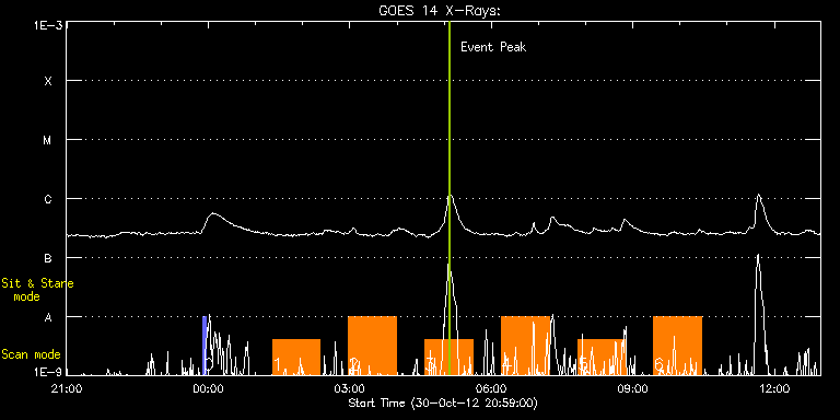 EIS Observation timeline overlay to GOES-Xray curve Code 1" 2" 40" 266" EIS Observations list for this event: STUDY ACRONYM ID DATE OBSERVED DESCRIPTION NOAA# TARGET 0 PRY_slot_context_v3 | 30319 | 2012/10/30 23:53:36 | Context for large raster | 1598 | Active Region TIMELINE ID DATE OBSERVED FITS FILE XCEN (+W/-E) YCEN (+N/-S) DUR ----------------------------------------------------------------------------------------------------------------- 30319 | 2012/10/30 23:53:36.000 | eis_l0_20121030_235336.fits.gz | 708.26 | -216.99 | 2m56s 1 dhb_atlas_120m_30" | 30320 | 2012/10/31 01:21:34 | Stitched-raster wide-FOV atlas spectru | 1598 | Quiet Sun TIMELINE ID DATE OBSERVED FITS FILE XCEN (+W/-E) YCEN (+N/-S) DUR ----------------------------------------------------------------------------------------------------------------- 30320 | 2012/10/31 01:21:34.000 | eis_l0_20121031_012134.fits.gz | 874.79 | -233.07 | 1h0m48s 2 dhb_atlas_120m_30" | 30321 | 2012/10/31 02:58:13 | Stitched-raster wide-FOV atlas spectru | | Quiet Sun TIMELINE ID DATE OBSERVED FITS FILE XCEN (+W/-E) YCEN (+N/-S) DUR ----------------------------------------------------------------------------------------------------------------- 30321 | 2012/10/31 02:58:13.000 | eis_l0_20121031_025813.fits.gz | 828.84 | -232.14 | 1h0m49s 3 dhb_atlas_120m_30" | 30322 | 2012/10/31 04:35:13 | Stitched-raster wide-FOV atlas spectru | | Quiet Sun TIMELINE ID DATE OBSERVED FITS FILE XCEN (+W/-E) YCEN (+N/-S) DUR ----------------------------------------------------------------------------------------------------------------- 30322 | 2012/10/31 04:35:13.000 | eis_l0_20121031_043513.fits.gz | 782.74 | -231.29 | 1h0m49s 4 dhb_atlas_120m_30" | 30323 | 2012/10/31 06:12:43 | Stitched-raster wide-FOV atlas spectru | 1598 | Quiet Sun TIMELINE ID DATE OBSERVED FITS FILE XCEN (+W/-E) YCEN (+N/-S) DUR ----------------------------------------------------------------------------------------------------------------- 30323 | 2012/10/31 06:12:43.000 | eis_l0_20121031_061243.fits.gz | 736.41 | -230.13 | 1h0m50s 5 dhb_atlas_120m_30" | 30324 | 2012/10/31 07:50:13 | Stitched-raster wide-FOV atlas spectru | | Quiet Sun TIMELINE ID DATE OBSERVED FITS FILE XCEN (+W/-E) YCEN (+N/-S) DUR ----------------------------------------------------------------------------------------------------------------- 30324 | 2012/10/31 07:50:13.000 | eis_l0_20121031_075013.fits.gz | 690.00 | -229.28 | 1h0m49s 6 dhb_atlas_120m_30" | 30325 | 2012/10/31 09:26:13 | Stitched-raster wide-FOV atlas spectru | | Quiet Sun TIMELINE ID DATE OBSERVED FITS FILE XCEN (+W/-E) YCEN (+N/-S) DUR ----------------------------------------------------------------------------------------------------------------- 30325 | 2012/10/31 09:26:13.000 | eis_l0_20121031_092613.fits.gz | 643.28 | -228.20 | 1h0m49s : Check study information : Download file : View thumbnails For this event, also check for: