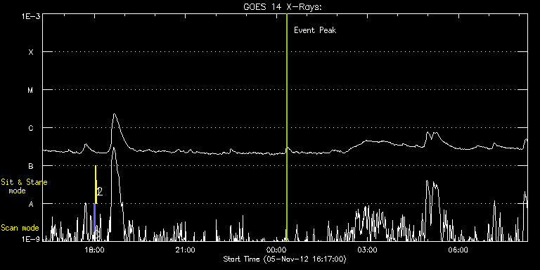 EIS Observation timeline overlay to GOES-Xray curve Code 1" 2" 40" 266" EIS Observations list for this event: STUDY ACRONYM ID DATE OBSERVED DESCRIPTION NOAA# TARGET 0 PRY_slot_contextLITE | 30350 | 2012/11/05 17:58:19 | Change of EIS pointing and alignment w | 1605 | Active Region TIMELINE ID DATE OBSERVED FITS FILE XCEN (+W/-E) YCEN (+N/-S) DUR ----------------------------------------------------------------------------------------------------------------- 30350 | 2012/11/05 17:58:19.000 | eis_l0_20121105_175819.fits.gz | -15.29 | -0.35 | 2m56s 1 Alignment_266 | 30351 | 2012/11/05 18:01:33 | Change of EIS pointing and alignment w | 1605 | Quiet Sun TIMELINE ID DATE OBSERVED FITS FILE XCEN (+W/-E) YCEN (+N/-S) DUR ----------------------------------------------------------------------------------------------------------------- 30351 | 2012/11/05 18:01:33.000 | eis_l0_20121105_180133.fits.gz | -132.57 | -0.50 | 1m22s 2 XRT_synop_AIA | 30352 | 2012/11/05 18:03:40 | Change of EIS pointing and alignment w | 1605 | Quiet Sun TIMELINE ID DATE OBSERVED FITS FILE XCEN (+W/-E) YCEN (+N/-S) DUR ----------------------------------------------------------------------------------------------------------------- 30352 | 2012/11/05 18:03:40.000 | eis_l0_20121105_180340.fits.gz | -132.57 | -0.50 | 10s : Check study information : Download file : View thumbnails For this event, also check for: