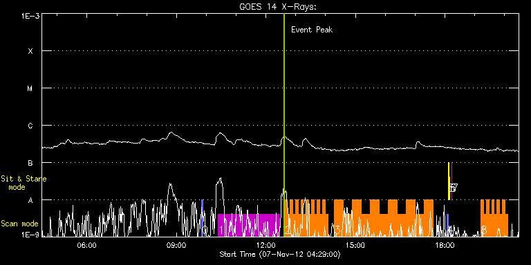 EIS Observation timeline overlay to GOES-Xray curve Code 1" 2" 40" 266" EIS Observations list for this event: STUDY ACRONYM ID DATE OBSERVED DESCRIPTION NOAA# TARGET 0 PRY_slot_contextLITE | 30389 | 2012/11/07 09:50:52 | Active Region Studies - Context raster | | Active Region TIMELINE ID DATE OBSERVED FITS FILE XCEN (+W/-E) YCEN (+N/-S) DUR ----------------------------------------------------------------------------------------------------------------- 30389 | 2012/11/07 09:50:52.000 | eis_l0_20121107_095052.fits.gz | -863.01 | 191.07 | 2m57s 1 HPW021_VEL_240x512v1 | 30386 | 2012/11/07 10:24:19 | Active Region Studies | | Active Region TIMELINE ID DATE OBSERVED FITS FILE XCEN (+W/-E) YCEN (+N/-S) DUR ----------------------------------------------------------------------------------------------------------------- 30386 | 2012/11/07 10:24:19.000 | eis_l0_20121107_102419.fits.gz | -722.49 | 115.92 | 2h3m47s 2 IUU_SCAN_STEPS_002 | 30385 | 2012/11/07 12:37:26 | Active Region Studies | | Active Region TIMELINE ID DATE OBSERVED FITS FILE XCEN (+W/-E) YCEN (+N/-S) DUR ----------------------------------------------------------------------------------------------------------------- 30385 | 2012/11/07 12:37:26.000 | eis_l0_20121107_123726.fits.gz | -837.91 | 189.68 | 5m23s 30385 | 2012/11/07 12:42:53.000 | eis_l0_20121107_124253.fits.gz | -837.52 | 189.68 | 5m23s 30385 | 2012/11/07 12:48:19.000 | eis_l0_20121107_124819.fits.gz | -837.06 | 189.61 | 5m24s 30385 | 2012/11/07 12:53:46.000 | eis_l0_20121107_125346.fits.gz | -836.75 | 189.53 | 5m24s 30385 | 2012/11/07 12:59:13.000 | eis_l0_20121107_125913.fits.gz | -836.36 | 189.53 | 5m23s 30385 | 2012/11/07 13:04:40.000 | eis_l0_20121107_130440.fits.gz | -835.90 | 189.53 | 5m23s 30385 | 2012/11/07 13:10:07.000 | eis_l0_20121107_131007.fits.gz | -835.59 | 189.45 | 5m23s 30385 | 2012/11/07 13:15:34.000 | eis_l0_20121107_131534.fits.gz | -835.21 | 189.38 | 5m23s 30385 | 2012/11/07 13:21:00.000 | eis_l0_20121107_132100.fits.gz | -834.82 | 189.38 | 5m24s 30385 | 2012/11/07 13:26:27.000 | eis_l0_20121107_132627.fits.gz | -834.43 | 189.22 | 5m23s 30385 | 2012/11/07 13:31:54.000 | eis_l0_20121107_133154.fits.gz | -834.05 | 189.22 | 5m23s 30385 | 2012/11/07 13:37:20.000 | eis_l0_20121107_133720.fits.gz | -833.66 | 189.30 | 5m24s 30385 | 2012/11/07 13:42:47.000 | eis_l0_20121107_134247.fits.gz | -833.27 | 189.22 | 5m24s 30385 | 2012/11/07 13:48:14.000 | eis_l0_20121107_134814.fits.gz | -832.89 | 189.30 | 5m23s 30385 | 2012/11/07 13:53:41.000 | eis_l0_20121107_135341.fits.gz | -832.50 | 189.14 | 5m23s 30385 | 2012/11/07 13:59:08.000 | eis_l0_20121107_135908.fits.gz | -832.11 | 189.07 | 5m23s 3 BP_response1_2raster | 30378 | 2012/11/07 14:17:13 | HOP 203: Understanding the Driving Mec | | Quiet Sun TIMELINE ID DATE OBSERVED FITS FILE XCEN (+W/-E) YCEN (+N/-S) DUR ----------------------------------------------------------------------------------------------------------------- 30378 | 2012/11/07 14:17:13.000 | eis_l0_20121107_141713.fits.gz | -8.04 | 59.83 | 18m2s 30378 | 2012/11/07 14:35:18.000 | eis_l0_20121107_143518.fits.gz | -5.42 | 60.06 | 18m2s 30378 | 2012/11/07 14:53:22.000 | eis_l0_20121107_145322.fits.gz | -2.56 | 60.06 | 18m2s 30378 | 2012/11/07 15:11:27.000 | eis_l0_20121107_151127.fits.gz | 0.30 | 60.06 | 18m2s 30378 | 2012/11/07 15:29:32.000 | eis_l0_20121107_152932.fits.gz | 3.08 | 60.14 | 18m1s 30378 | 2012/11/07 15:47:36.000 | eis_l0_20121107_154736.fits.gz | 5.94 | 60.14 | 18m2s 30378 | 2012/11/07 16:05:41.000 | eis_l0_20121107_160541.fits.gz | 8.80 | 60.06 | 18m1s 30378 | 2012/11/07 16:23:45.000 | eis_l0_20121107_162345.fits.gz | 11.58 | 60.06 | 18m2s 30378 | 2012/11/07 16:41:50.000 | eis_l0_20121107_164150.fits.gz | 14.28 | 60.06 | 18m1s 30378 | 2012/11/07 16:59:54.000 | eis_l0_20121107_165954.fits.gz | 17.14 | 60.29 | 18m2s 30378 | 2012/11/07 17:17:59.000 | eis_l0_20121107_171759.fits.gz | 20.07 | 60.22 | 18m1s 4 PRY_slot_contextLITE | 30379 | 2012/11/07 18:04:19 | Change of EIS pointing and alignment w | 1605 | Active Region TIMELINE ID DATE OBSERVED FITS FILE XCEN (+W/-E) YCEN (+N/-S) DUR ----------------------------------------------------------------------------------------------------------------- 30379 | 2012/11/07 18:04:19.000 | eis_l0_20121107_180419.fits.gz | -15.37 | -0.50 | 2m56s 5 Alignment_266 | 30380 | 2012/11/07 18:07:34 | Change of EIS pointing and alignment w | | Quiet Sun TIMELINE ID DATE OBSERVED FITS FILE XCEN (+W/-E) YCEN (+N/-S) DUR ----------------------------------------------------------------------------------------------------------------- 30380 | 2012/11/07 18:07:34.000 | eis_l0_20121107_180734.fits.gz | -132.64 | -0.35 | 1m22s 6 XRT_synop_AIA | 30381 | 2012/11/07 18:10:08 | Change of EIS pointing and alignment w | | Quiet Sun TIMELINE ID DATE OBSERVED FITS FILE XCEN (+W/-E) YCEN (+N/-S) DUR ----------------------------------------------------------------------------------------------------------------- 30381 | 2012/11/07 18:10:08.000 | eis_l0_20121107_181008.fits.gz | -132.57 | -0.50 | 10s 7 regcal076 | 30383 | 2012/11/07 18:14:11 | Flatfield, 1 exposure, led 100ms, ccd | | Engineering TIMELINE ID DATE OBSERVED FITS FILE XCEN (+W/-E) YCEN (+N/-S) DUR ----------------------------------------------------------------------------------------------------------------- 30383 | 2012/11/07 18:14:11.000 | eis_l0_20121107_181411.fits.gz | -797.05 | 137.68 | 1s 8 IUU_SCAN_STEPS_002 | 30394 | 2012/11/07 19:12:19 | Active Region Studies | | Active Region TIMELINE ID DATE OBSERVED FITS FILE XCEN (+W/-E) YCEN (+N/-S) DUR ----------------------------------------------------------------------------------------------------------------- 30394 | 2012/11/07 19:12:19.000 | eis_l0_20121107_191219.fits.gz | -808.55 | 186.75 | 5m23s 30394 | 2012/11/07 19:17:46.000 | eis_l0_20121107_191746.fits.gz | -808.17 | 186.59 | 5m24s 30394 | 2012/11/07 19:23:13.000 | eis_l0_20121107_192313.fits.gz | -807.78 | 186.67 | 5m23s 30394 | 2012/11/07 19:28:39.