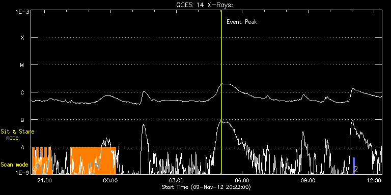 EIS Observation timeline overlay to GOES-Xray curve Code 1" 2" 40" 266" EIS Observations list for this event: STUDY ACRONYM ID DATE OBSERVED DESCRIPTION NOAA# TARGET 0 IUU_SCAN_STEPS_002 | 30418 | 2012/11/09 20:26:40 | Active Region Studies | | Active Region TIMELINE ID DATE OBSERVED FITS FILE XCEN (+W/-E) YCEN (+N/-S) DUR ----------------------------------------------------------------------------------------------------------------- 30418 | 2012/11/09 20:26:40.000 | eis_l0_20121109_202640.fits.gz | -344.53 | 157.09 | 5m24s 30418 | 2012/11/09 20:32:07.000 | eis_l0_20121109_203207.fits.gz | -343.76 | 157.16 | 5m24s 30418 | 2012/11/09 20:37:34.000 | eis_l0_20121109_203734.fits.gz | -342.98 | 157.09 | 5m24s 30418 | 2012/11/09 20:43:01.000 | eis_l0_20121109_204301.fits.gz | -342.21 | 157.09 | 5m23s 30418 | 2012/11/09 20:48:28.000 | eis_l0_20121109_204828.fits.gz | -341.44 | 157.09 | 5m23s 30418 | 2012/11/09 20:53:55.000 | eis_l0_20121109_205355.fits.gz | -340.74 | 157.09 | 5m23s 30418 | 2012/11/09 20:59:21.000 | eis_l0_20121109_205921.fits.gz | -339.97 | 157.09 | 5m24s 30418 | 2012/11/09 21:04:48.000 | eis_l0_20121109_210448.fits.gz | -339.12 | 157.09 | 5m24s 30418 | 2012/11/09 21:10:15.000 | eis_l0_20121109_211015.fits.gz | -338.35 | 157.01 | 5m23s 30418 | 2012/11/09 21:15:42.000 | eis_l0_20121109_211542.fits.gz | -337.58 | 157.16 | 5m23s 1 cam_ar_limb_lite_v3 | 30426 | 2012/11/09 22:09:40 | Active Region on East limb | 1611 | Active Region TIMELINE ID DATE OBSERVED FITS FILE XCEN (+W/-E) YCEN (+N/-S) DUR ----------------------------------------------------------------------------------------------------------------- 30426 | 2012/11/09 22:09:40.000 | eis_l0_20121109_220940.fits.gz | -793.03 | 157.47 | 2h5m18s : Check study information : Download file : View thumbnails For this event, also check for: