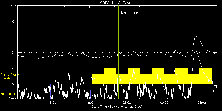 EIS Observation timeline overlay to GOES-Xray curve Code 1" 2" 40" 266" EIS Observations list for this event: STUDY ACRONYM ID DATE OBSERVED DESCRIPTION NOAA# TARGET 0 PRY_slot_contextLITE | 30452 | 2012/11/10 14:50:24 | Sit-and-Stare Observations of AR11611 | 1611 | Active Region TIMELINE ID DATE OBSERVED FITS FILE XCEN (+W/-E) YCEN (+N/-S) DUR ----------------------------------------------------------------------------------------------------------------- 30452 | 2012/11/10 14:50:24.000 | eis_l0_20121110_145024.fits.gz | -713.30 | 151.37 | 2m57s 1 PRY_slot_contextLITE | 30432 | 2012/11/10 18:03:41 | Change of EIS pointing and alignment w | | Active Region TIMELINE ID DATE OBSERVED FITS FILE XCEN (+W/-E) YCEN (+N/-S) DUR ----------------------------------------------------------------------------------------------------------------- 30432 | 2012/11/10 18:03:41.000 | eis_l0_20121110_180341.fits.gz | -15.21 | -0.42 | 2m57s 2 XRT_synop_AIA | 30433 | 2012/11/10 18:06:56 | Change of EIS pointing and alignment w | | Quiet Sun TIMELINE ID DATE OBSERVED FITS FILE XCEN (+W/-E) YCEN (+N/-S) DUR ----------------------------------------------------------------------------------------------------------------- 30433 | 2012/11/10 18:06:56.000 | eis_l0_20121110_180656.fits.gz | -132.49 | -0.42 | 10s 3 Flare266_Hunter02 | 30444 | 2012/11/10 18:13:14 | Flare Trigger Observations of AR11611 | 1611 | Flare TIMELINE ID DATE OBSERVED FITS FILE XCEN (+W/-E) YCEN (+N/-S) DUR ----------------------------------------------------------------------------------------------------------------- 30444 | 2012/11/10 18:13:14.000 | eis_l0_20121110_181314.fits.gz | -809.10 | 150.29 | 56m54s 30444 | 2012/11/10 19:10:35.000 | eis_l0_20121110_191035.fits.gz | -802.92 | 149.98 | 56m53s 30444 | 2012/11/10 20:07:55.000 | eis_l0_20121110_200755.fits.gz | -796.66 | 149.59 | 56m54s 30444 | 2012/11/10 21:05:16.000 | eis_l0_20121110_210516.fits.gz | -790.41 | 149.36 | 56m53s 30444 | 2012/11/10 22:02:36.000 | eis_l0_20121110_220236.fits.gz | -784.07 | 149.13 | 56m54s 30444 | 2012/11/10 22:59:57.000 | eis_l0_20121110_225957.fits.gz | -777.58 | 148.82 | 56m53s 30444 | 2012/11/10 23:57:17.000 | eis_l0_20121110_235717.fits.gz | -771.09 | 148.51 | 56m53s 30444 | 2012/11/11 00:54:37.000 | eis_l0_20121111_005437.fits.gz | -764.60 | 148.20 | 56m54s 30444 | 2012/11/11 01:51:58.000 | eis_l0_20121111_015158.fits.gz | -758.04 | 148.05 | 56m53s 30444 | 2012/11/11 02:49:18.000 | eis_l0_20121111_024918.fits.gz | -751.40 | 147.66 | 56m54s : Check study information : Download file : View thumbnails For this event, also check for: