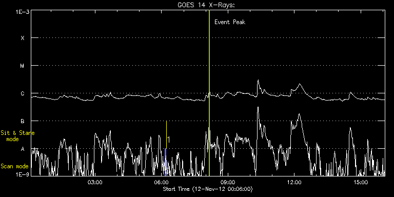 EIS Observation timeline overlay to GOES-Xray curve Code 1" 2" 40" 266" EIS Observations list for this event: STUDY ACRONYM ID DATE OBSERVED DESCRIPTION NOAA# TARGET 0 PRY_slot_contextLITE | 30438 | 2012/11/12 06:09:26 | Change of EIS pointing and alignment w | 1611 | Active Region TIMELINE ID DATE OBSERVED FITS FILE XCEN (+W/-E) YCEN (+N/-S) DUR ----------------------------------------------------------------------------------------------------------------- 30438 | 2012/11/12 06:09:26.000 | eis_l0_20121112_060926.fits.gz | -15.21 | -0.58 | 2m57s 1 XRT_synop_AIA | 30439 | 2012/11/12 06:12:41 | Change of EIS pointing and alignment w | 1611 | Quiet Sun TIMELINE ID DATE OBSERVED FITS FILE XCEN (+W/-E) YCEN (+N/-S) DUR ----------------------------------------------------------------------------------------------------------------- 30439 | 2012/11/12 06:12:41.000 | eis_l0_20121112_061241.fits.gz | -132.57 | -0.42 | 10s : Check study information : Download file : View thumbnails For this event, also check for: