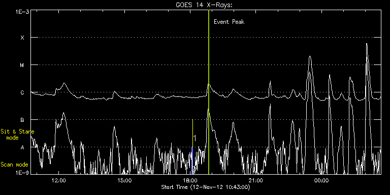 EIS Observation timeline overlay to GOES-Xray curve Code 1" 2" 40" 266" EIS Observations list for this event: STUDY ACRONYM ID DATE OBSERVED DESCRIPTION NOAA# TARGET 0 PRY_slot_contextLITE | 30440 | 2012/11/12 18:03:26 | Change of EIS pointing and alignment w | 1611 | Active Region TIMELINE ID DATE OBSERVED FITS FILE XCEN (+W/-E) YCEN (+N/-S) DUR ----------------------------------------------------------------------------------------------------------------- 30440 | 2012/11/12 18:03:26.000 | eis_l0_20121112_180326.fits.gz | -15.14 | -0.50 | 2m57s 1 XRT_synop_AIA | 30441 | 2012/11/12 18:06:42 | Change of EIS pointing and alignment w | 1611 | Quiet Sun TIMELINE ID DATE OBSERVED FITS FILE XCEN (+W/-E) YCEN (+N/-S) DUR ----------------------------------------------------------------------------------------------------------------- 30441 | 2012/11/12 18:06:42.000 | eis_l0_20121112_180642.fits.gz | -132.49 | -0.58 | 10s : Check study information : Download file : View thumbnails For this event, also check for: