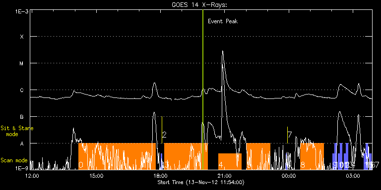 EIS Observation timeline overlay to GOES-Xray curve Code 1" 2" 40" 266" EIS Observations list for this event: STUDY ACRONYM ID DATE OBSERVED DESCRIPTION NOAA# TARGET 0 dhb_polar_scan | 30456 | 2012/11/13 14:10:14 | Streamer Scan for HOP224 | | Quiet Sun TIMELINE ID DATE OBSERVED FITS FILE XCEN (+W/-E) YCEN (+N/-S) DUR ----------------------------------------------------------------------------------------------------------------- 30456 | 2012/11/13 14:10:14.000 | eis_l0_20121113_141014.fits.gz | -905.78 | -476.52 | 3h35m42s 1 PRY_slot_contextLITE | 30457 | 2012/11/13 18:01:20 | Change of EIS pointing and alignment w | 1611 | Active Region TIMELINE ID DATE OBSERVED FITS FILE XCEN (+W/-E) YCEN (+N/-S) DUR ----------------------------------------------------------------------------------------------------------------- 30457 | 2012/11/13 18:01:20.000 | eis_l0_20121113_180120.fits.gz | -15.21 | -0.35 | 2m56s 2 XRT_synop_AIA | 30458 | 2012/11/13 18:04:35 | Change of EIS pointing and alignment w | 1611 | Quiet Sun TIMELINE ID DATE OBSERVED FITS FILE XCEN (+W/-E) YCEN (+N/-S) DUR ----------------------------------------------------------------------------------------------------------------- 30458 | 2012/11/13 18:04:35.000 | eis_l0_20121113_180435.fits.gz | -132.57 | -0.42 | 10s 3 LANDI_SCAN_CH | 30459 | 2012/11/13 18:11:20 | Coronal Hole Scan for HOP224 | | Coronal Hole TIMELINE ID DATE OBSERVED FITS FILE XCEN (+W/-E) YCEN (+N/-S) DUR ----------------------------------------------------------------------------------------------------------------- 30459 | 2012/11/13 18:11:20.000 | eis_l0_20121113_181120.fits.gz | -32.58 | 1083.58 | 2h0m56s 4 GDZ_PLUME1_2_300_50s | 30460 | 2012/11/13 20:42:13 | Coronal Hole Scan for HOP224 | | Coronal Hole TIMELINE ID DATE OBSERVED FITS FILE XCEN (+W/-E) YCEN (+N/-S) DUR ----------------------------------------------------------------------------------------------------------------- 30460 | 2012/11/13 20:42:13.000 | eis_l0_20121113_204213.fits.gz | -11.86 | 1083.58 | 1h4m53s 5 GDZ_PLUME1_2_300_50s | 30461 | 2012/11/13 22:02:13 | Cavity Scan for HOP224 | | Coronal Hole TIMELINE ID DATE OBSERVED FITS FILE XCEN (+W/-E) YCEN (+N/-S) DUR ----------------------------------------------------------------------------------------------------------------- 30461 | 2012/11/13 22:02:13.000 | eis_l0_20121113_220213.fits.gz | -451.05 | -829.14 | 1h4m51s 6 PRY_slot_contextLITE | 30462 | 2012/11/13 23:52:20 | Change of EIS pointing and alignment w | 1611 | Active Region TIMELINE ID DATE OBSERVED FITS FILE XCEN (+W/-E) YCEN (+N/-S) DUR ----------------------------------------------------------------------------------------------------------------- 30462 | 2012/11/13 23:52:20.000 | eis_l0_20121113_235220.fits.gz | -15.14 | -0.35 | 2m56s 7 XRT_synop_AIA | 30463 | 2012/11/13 23:55:35 | Change of EIS pointing and alignment w | 1611 | Quiet Sun TIMELINE ID DATE OBSERVED FITS FILE XCEN (+W/-E) YCEN (+N/-S) DUR ----------------------------------------------------------------------------------------------------------------- 30463 | 2012/11/13 23:55:35.000 | eis_l0_20121113_235535.fits.gz | -132.57 | -0.35 | 10s 8 GDZ_PLUME1_2_300_50s | 30464 | 2012/11/14 00:32:20 | AR Near Limb for HOP224 | | Coronal Hole TIMELINE ID DATE OBSERVED FITS FILE XCEN (+W/-E) YCEN (+N/-S) DUR ----------------------------------------------------------------------------------------------------------------- 30464 | 2012/11/14 00:32:20.000 | eis_l0_20121114_003220.fits.gz | -928.57 | -495.68 | 1h4m51s 9 full_sun_slot_scan_1 | 30465 | 2012/11/14 02:02:20 | HOP130 | | Quiet Sun TIMELINE ID DATE OBSERVED FITS FILE XCEN (+W/-E) YCEN (+N/-S) DUR ----------------------------------------------------------------------------------------------------------------- 30465 | 2012/11/14 02:02:20.000 | eis_l0_20121114_020220.fits.gz | 914.31 | 185.73 | 5m27s 10 full_sun_slot_scan_1 | 30466 | 2012/11/14 02:07:52 | HOP130 | | Quiet Sun TIMELINE ID DATE OBSERVED FITS FILE XCEN (+W/-E) YCEN (+N/-S) DUR ----------------------------------------------------------------------------------------------------------------- 30466 | 2012/11/14 02:07:52.000 | eis_l0_20121114_020752.fits.gz | 920.72 | -286.42 | 5m27s 11 full_sun_slot_scan_1 | 30467 | 2012/11/14 02:18:13 | HOP130 | 1611 | Quiet Sun TIMELINE ID DATE OBSERVED FITS FILE XCEN (+W/-E) YCEN (+N/-S) DUR ----------------------------------------------------------------------------------------------------------------- 30467 | 2012/11/14 02:18:13.000 | eis_l0_20121114_021813.fits.gz | 452.68 | 185.58 | 5m27s 12 full_sun_slot_scan_1 | 30468 | 2012/11/14 02:23:46 | HOP130 | 1610 | Quiet Sun TIMELINE ID DATE OBSERVED FITS FILE XCEN (+W/-E) YCEN (+N/-S) DUR ----------------------------------------------------------------------------------------------------------------- 30468 | 2012/11/14 02:23:46.000 | eis_l0_20121114_022346.fits.gz | 452.75 | -286.65 | 5m26s 13 full_sun_slot_scan_1 | 30469 | 2012/11/14 02:34:13 | HOP130 | 1611 | Quiet Sun TIMELINE ID DATE OBSERVED FITS FILE XCEN (+W/-E) YCEN (+N/-S) DUR ----------------------------------------------------------------------------------------------------------------- 30469 | 2012/11/14 02:34:13.000 | eis_l0_20121114_023413.fits.gz | -15.37 | 185.58 | 5m27s 14 full_sun_slot_scan_1 | 30470 | 2012/11/14 02:39:45 | HOP130 | | Quiet Sun TIMELINE ID DATE OBSERVED FITS FILE XCEN (+W/-E) YCEN (+N/-S) DUR ----------------------------------------------------------------------------------------------------------------- 30470 | 2012/11/14 02:39:45.000 | eis_l0_20121114_023945.fits.gz | -15.14 | -286.50 | 5m27s 15 full_sun_slot_scan_1 | 30471 | 2012/11/14 03:30:13 | HOP130 | 1614 | Quiet Sun TIMELINE ID DATE OBSERVED FITS FILE XCEN (+W/-E) YCEN (+N/-S) DUR ----------------------------------------------------------------------------------------------------------------- 30471 | 2012/11/14 03:30:13.000 | eis_l0_20121114_033013.fits.gz | -483.26 | 185.58 | 5m27s 16 
