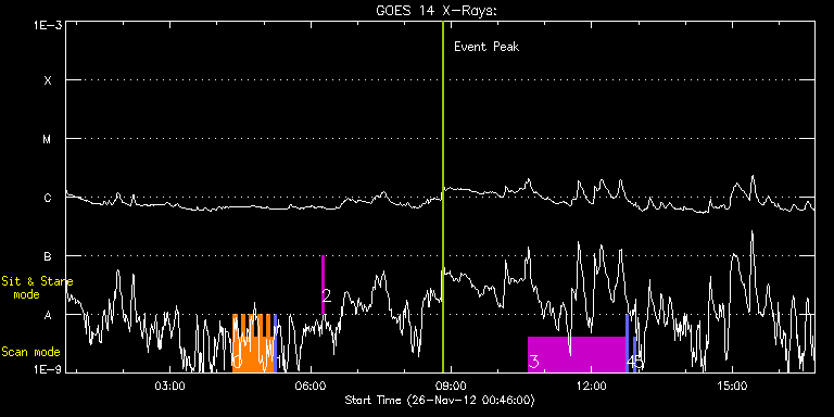 EIS Observation timeline overlay to GOES-Xray curve Code 1" 2" 40" 266" EIS Observations list for this event: STUDY ACRONYM ID DATE OBSERVED DESCRIPTION NOAA# TARGET 0 HH_Flare+AR_180x152 | 30755 | 2012/11/26 04:20:02 | AR 11618 Obs | 1618 | Flare TIMELINE ID DATE OBSERVED FITS FILE XCEN (+W/-E) YCEN (+N/-S) DUR ----------------------------------------------------------------------------------------------------------------- 30755 | 2012/11/26 04:20:02.000 | eis_l0_20121126_042002.fits.gz | 786.17 | 96.60 | 5m18s 30755 | 2012/11/26 04:25:23.000 | eis_l0_20121126_042523.fits.gz | 786.71 | 96.60 | 5m17s 30755 | 2012/11/26 04:30:43.000 | eis_l0_20121126_043043.fits.gz | 787.10 | 96.60 | 5m18s 30755 | 2012/11/26 04:36:04.000 | eis_l0_20121126_043604.fits.gz | 787.64 | 96.52 | 5m17s 30755 | 2012/11/26 04:41:24.000 | eis_l0_20121126_044124.fits.gz | 788.02 | 96.60 | 5m18s 30755 | 2012/11/26 04:46:45.000 | eis_l0_20121126_044645.fits.gz | 788.41 | 96.68 | 5m18s 30755 | 2012/11/26 04:52:06.000 | eis_l0_20121126_045206.fits.gz | 788.95 | 96.60 | 5m18s 30755 | 2012/11/26 04:57:27.000 | eis_l0_20121126_045727.fits.gz | 789.49 | 96.60 | 5m18s 30755 | 2012/11/26 05:02:48.000 | eis_l0_20121126_050248.fits.gz | 790.03 | 96.68 | 5m18s 30755 | 2012/11/26 05:08:09.000 | eis_l0_20121126_050809.fits.gz | 790.49 | 96.68 | 5m18s 1 PRY_slot_context_v3 | 30756 | 2012/11/26 05:13:38 | context for AR 11618 Obs | 1618 | Active Region TIMELINE ID DATE OBSERVED FITS FILE XCEN (+W/-E) YCEN (+N/-S) DUR ----------------------------------------------------------------------------------------------------------------- 30756 | 2012/11/26 05:13:38.000 | eis_l0_20121126_051338.fits.gz | 777.97 | 96.68 | 2m56s 2 regcal074 | 30766 | 2012/11/26 06:14:11 | Dark exposures including overscan pixe | | Engineering TIMELINE ID DATE OBSERVED FITS FILE XCEN (+W/-E) YCEN (+N/-S) DUR ----------------------------------------------------------------------------------------------------------------- 30766 | 2012/11/26 06:14:11.000 | eis_l0_20121126_061411.fits.gz | 813.17 | 303.06 | 3m22s 3 HPW021_VEL_240x512v1 | 30745 | 2012/11/26 10:39:19 | Limb-to-limb AR coverage - 11618 | 1618 | Active Region TIMELINE ID DATE OBSERVED FITS FILE XCEN (+W/-E) YCEN (+N/-S) DUR ----------------------------------------------------------------------------------------------------------------- 30745 | 2012/11/26 10:39:19.000 | eis_l0_20121126_103919.fits.gz | 820.83 | 98.07 | 2h3m48s 4 PRY_slot_context_v3 | 30746 | 2012/11/26 12:43:32 | context for Limb-to-limb AR coverage - | 1618 | Active Region TIMELINE ID DATE OBSERVED FITS FILE XCEN (+W/-E) YCEN (+N/-S) DUR ----------------------------------------------------------------------------------------------------------------- 30746 | 2012/11/26 12:43:32.000 | eis_l0_20121126_124332.fits.gz | 815.97 | 98.61 | 2m56s 5 PRY_slot_contextLITE | 30767 | 2012/11/26 12:53:39 | Slow mode oscillations in coronal flar | 1618 | Active Region TIMELINE ID DATE OBSERVED FITS FILE XCEN (+W/-E) YCEN (+N/-S) DUR ----------------------------------------------------------------------------------------------------------------- 30767 | 2012/11/26 12:53:39.000 | eis_l0_20121126_125339.fits.gz | 816.90 | 98.61 | 2m57s : Check study information : Download file : View thumbnails For this event, also check for: