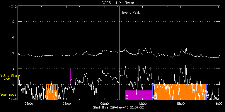 EIS Observation timeline overlay to GOES-Xray curve Code 1" 2" 40" 266" EIS Observations list for this event: STUDY ACRONYM ID DATE OBSERVED DESCRIPTION NOAA# TARGET 0 HH_Flare+AR_180x152 | 30755 | 2012/11/26 04:20:02 | AR 11618 Obs | 1618 | Flare TIMELINE ID DATE OBSERVED FITS FILE XCEN (+W/-E) YCEN (+N/-S) DUR ----------------------------------------------------------------------------------------------------------------- 30755 | 2012/11/26 04:20:02.000 | eis_l0_20121126_042002.fits.gz | 786.17 | 96.60 | 5m18s 30755 | 2012/11/26 04:25:23.000 | eis_l0_20121126_042523.fits.gz | 786.71 | 96.60 | 5m17s 30755 | 2012/11/26 04:30:43.000 | eis_l0_20121126_043043.fits.gz | 787.10 | 96.60 | 5m18s 30755 | 2012/11/26 04:36:04.000 | eis_l0_20121126_043604.fits.gz | 787.64 | 96.52 | 5m17s 30755 | 2012/11/26 04:41:24.000 | eis_l0_20121126_044124.fits.gz | 788.02 | 96.60 | 5m18s 30755 | 2012/11/26 04:46:45.000 | eis_l0_20121126_044645.fits.gz | 788.41 | 96.68 | 5m18s 30755 | 2012/11/26 04:52:06.000 | eis_l0_20121126_045206.fits.gz | 788.95 | 96.60 | 5m18s 30755 | 2012/11/26 04:57:27.000 | eis_l0_20121126_045727.fits.gz | 789.49 | 96.60 | 5m18s 30755 | 2012/11/26 05:02:48.000 | eis_l0_20121126_050248.fits.gz | 790.03 | 96.68 | 5m18s 30755 | 2012/11/26 05:08:09.000 | eis_l0_20121126_050809.fits.gz | 790.49 | 96.68 | 5m18s 1 PRY_slot_context_v3 | 30756 | 2012/11/26 05:13:38 | context for AR 11618 Obs | 1618 | Active Region TIMELINE ID DATE OBSERVED FITS FILE XCEN (+W/-E) YCEN (+N/-S) DUR ----------------------------------------------------------------------------------------------------------------- 30756 | 2012/11/26 05:13:38.000 | eis_l0_20121126_051338.fits.gz | 777.97 | 96.68 | 2m56s 2 regcal074 | 30766 | 2012/11/26 06:14:11 | Dark exposures including overscan pixe | | Engineering TIMELINE ID DATE OBSERVED FITS FILE XCEN (+W/-E) YCEN (+N/-S) DUR ----------------------------------------------------------------------------------------------------------------- 30766 | 2012/11/26 06:14:11.000 | eis_l0_20121126_061411.fits.gz | 813.17 | 303.06 | 3m22s 3 HPW021_VEL_240x512v1 | 30745 | 2012/11/26 10:39:19 | Limb-to-limb AR coverage - 11618 | 1618 | Active Region TIMELINE ID DATE OBSERVED FITS FILE XCEN (+W/-E) YCEN (+N/-S) DUR ----------------------------------------------------------------------------------------------------------------- 30745 | 2012/11/26 10:39:19.000 | eis_l0_20121126_103919.fits.gz | 820.83 | 98.07 | 2h3m48s 4 PRY_slot_context_v3 | 30746 | 2012/11/26 12:43:32 | context for Limb-to-limb AR coverage - | 1618 | Active Region TIMELINE ID DATE OBSERVED FITS FILE XCEN (+W/-E) YCEN (+N/-S) DUR ----------------------------------------------------------------------------------------------------------------- 30746 | 2012/11/26 12:43:32.000 | eis_l0_20121126_124332.fits.gz | 815.97 | 98.61 | 2m56s 5 PRY_slot_contextLITE | 30767 | 2012/11/26 12:53:39 | Slow mode oscillations in coronal flar | 1618 | Active Region TIMELINE ID DATE OBSERVED FITS FILE XCEN (+W/-E) YCEN (+N/-S) DUR ----------------------------------------------------------------------------------------------------------------- 30767 | 2012/11/26 12:53:39.000 | eis_l0_20121126_125339.fits.gz | 816.90 | 98.61 | 2m57s 6 hot_loop_osc_1_v4 | 30768 | 2012/11/26 12:57:01 | Slow mode oscillations in coronal flar | | Flare TIMELINE ID DATE OBSERVED FITS FILE XCEN (+W/-E) YCEN (+N/-S) DUR ----------------------------------------------------------------------------------------------------------------- 30768 | 2012/11/26 12:57:01.000 | eis_l0_20121126_125701.fits.gz | 830.79 | 98.61 | 1m56s 30768 | 2012/11/26 12:59:00.000 | eis_l0_20121126_125900.fits.gz | 831.03 | 98.53 | 1m55s 30768 | 2012/11/26 13:00:58.000 | eis_l0_20121126_130058.fits.gz | 831.10 | 98.69 | 1m55s 30768 | 2012/11/26 13:02:56.000 | eis_l0_20121126_130256.fits.gz | 831.26 | 98.76 | 1m55s 30768 | 2012/11/26 13:04:54.000 | eis_l0_20121126_130454.fits.gz | 831.49 | 98.69 | 1m55s 30768 | 2012/11/26 13:06:52.000 | eis_l0_20121126_130652.fits.gz | 831.57 | 98.69 | 1m55s 30768 | 2012/11/26 13:08:50.000 | eis_l0_20121126_130850.fits.gz | 831.80 | 98.69 | 1m55s 30768 | 2012/11/26 13:10:48.000 | eis_l0_20121126_131048.fits.gz | 831.88 | 98.69 | 1m56s 30768 | 2012/11/26 13:12:46.000 | eis_l0_20121126_131246.fits.gz | 832.03 | 98.61 | 1m55s 30768 | 2012/11/26 13:14:44.000 | eis_l0_20121126_131444.fits.gz | 832.26 | 98.76 | 1m55s 30768 | 2012/11/26 13:16:42.000 | eis_l0_20121126_131642.fits.gz | 832.42 | 98.61 | 1m56s 30768 | 2012/11/26 13:18:40.000 | eis_l0_20121126_131840.fits.gz | 832.57 | 98.84 | 1m55s 30768 | 2012/11/26 13:20:38.000 | eis_l0_20121126_132038.fits.gz | 832.72 | 98.69 | 1m56s 30768 | 2012/11/26 13:22:37.000 | eis_l0_20121126_132237.fits.gz | 832.80 | 98.84 | 1m54s 30768 | 2012/11/26 13:24:34.000 | eis_l0_20121126_132434.fits.gz | 832.96 | 98.84 | 1m55s 30768 | 2012/11/26 13:26:32.000 | eis_l0_20121126_132632.fits.gz | 833.19 | 98.76 | 1m56s 30768 | 2012/11/26 13:28:31.000 | eis_l0_20121126_132831.fits.gz | 833.27 | 98.84 | 1m55s 30768 | 2012/11/26 13:30:29.000 | eis_l0_20121126_133029.fits.gz | 833.34 | 98.76 | 1m55s 30768 | 2012/11/26 13:32:27.000 | eis_l0_20121126_133227.fits.gz | 833.73 | 98.76 | 1m55s 30768 | 2012/11/26 13:34:25.000 | eis_l0_20121126_133425.fits.gz | 833.81 | 98.92 | 1m55s 30768 | 2012/11/26 13:36:23.000 | eis_l0_20121126_133623.fits.gz | 833.96 | 98.84 | 1m55s 30768 | 2012/11/26 13:38:21.000 | eis_l0_20121126_133821.fits.gz | 834.04 | 98.84 | 1m55s 30768 | 2012/11/26 13:40:19.000 | eis_l0_20121126_134019.fits.gz | 834.19 | 98.84 | 1m56s 30768 | 2012/11/26 13:42:18.000 | eis_l0_20121126_134218.fits.gz | 834.42 | 98.84 | 1m54s 30768 | 2012/11/26 13:44:15.000 | eis_l0_20121126_134415.fits.gz | 834.50 | 98.92 | 1m56s 30768 | 2012/11/26 13:46:14.000 | eis_l0_20121126_134614.fits.gz | 834.73 | 98.92 | 1m55s 30768 | 2012/11/26 13:48:11.000 | eis_l0_20121126_134811.fits.gz | 834.89 | 98.84 | 1m56s 30768 | 2012/11/26 13:50:09.000 | eis_l0_20121126_135009.fits.g