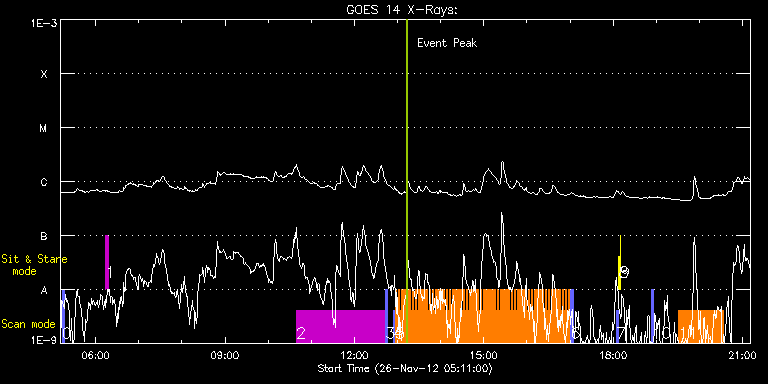 EIS Observation timeline overlay to GOES-Xray curve Code 1" 2" 40" 266" EIS Observations list for this event: STUDY ACRONYM ID DATE OBSERVED DESCRIPTION NOAA# TARGET 0 PRY_slot_context_v3 | 30756 | 2012/11/26 05:13:38 | context for AR 11618 Obs | 1618 | Active Region TIMELINE ID DATE OBSERVED FITS FILE XCEN (+W/-E) YCEN (+N/-S) DUR ----------------------------------------------------------------------------------------------------------------- 30756 | 2012/11/26 05:13:38.000 | eis_l0_20121126_051338.fits.gz | 777.97 | 96.68 | 2m56s 1 regcal074 | 30766 | 2012/11/26 06:14:11 | Dark exposures including overscan pixe | | Engineering TIMELINE ID DATE OBSERVED FITS FILE XCEN (+W/-E) YCEN (+N/-S) DUR ----------------------------------------------------------------------------------------------------------------- 30766 | 2012/11/26 06:14:11.000 | eis_l0_20121126_061411.fits.gz | 813.17 | 303.06 | 3m22s 2 HPW021_VEL_240x512v1 | 30745 | 2012/11/26 10:39:19 | Limb-to-limb AR coverage - 11618 | 1618 | Active Region TIMELINE ID DATE OBSERVED FITS FILE XCEN (+W/-E) YCEN (+N/-S) DUR ----------------------------------------------------------------------------------------------------------------- 30745 | 2012/11/26 10:39:19.000 | eis_l0_20121126_103919.fits.gz | 820.83 | 98.07 | 2h3m48s 3 PRY_slot_context_v3 | 30746 | 2012/11/26 12:43:32 | context for Limb-to-limb AR coverage - | 1618 | Active Region TIMELINE ID DATE OBSERVED FITS FILE XCEN (+W/-E) YCEN (+N/-S) DUR ----------------------------------------------------------------------------------------------------------------- 30746 | 2012/11/26 12:43:32.000 | eis_l0_20121126_124332.fits.gz | 815.97 | 98.61 | 2m56s 4 PRY_slot_contextLITE | 30767 | 2012/11/26 12:53:39 | Slow mode oscillations in coronal flar | 1618 | Active Region TIMELINE ID DATE OBSERVED FITS FILE XCEN (+W/-E) YCEN (+N/-S) DUR ----------------------------------------------------------------------------------------------------------------- 30767 | 2012/11/26 12:53:39.000 | eis_l0_20121126_125339.fits.gz | 816.90 | 98.61 | 2m57s 5 hot_loop_osc_1_v4 | 30768 | 2012/11/26 12:57:01 | Slow mode oscillations in coronal flar | | Flare TIMELINE ID DATE OBSERVED FITS FILE XCEN (+W/-E) YCEN (+N/-S) DUR ----------------------------------------------------------------------------------------------------------------- 30768 | 2012/11/26 12:57:01.000 | eis_l0_20121126_125701.fits.gz | 830.79 | 98.61 | 1m56s 30768 | 2012/11/26 12:59:00.000 | eis_l0_20121126_125900.fits.gz | 831.03 | 98.53 | 1m55s 30768 | 2012/11/26 13:00:58.000 | eis_l0_20121126_130058.fits.gz | 831.10 | 98.69 | 1m55s 30768 | 2012/11/26 13:02:56.000 | eis_l0_20121126_130256.fits.gz | 831.26 | 98.76 | 1m55s 30768 | 2012/11/26 13:04:54.000 | eis_l0_20121126_130454.fits.gz | 831.49 | 98.69 | 1m55s 30768 | 2012/11/26 13:06:52.000 | eis_l0_20121126_130652.fits.gz | 831.57 | 98.69 | 1m55s 30768 | 2012/11/26 13:08:50.000 | eis_l0_20121126_130850.fits.gz | 831.80 | 98.69 | 1m55s 30768 | 2012/11/26 13:10:48.000 | eis_l0_20121126_131048.fits.gz | 831.88 | 98.69 | 1m56s 30768 | 2012/11/26 13:12:46.000 | eis_l0_20121126_131246.fits.gz | 832.03 | 98.61 | 1m55s 30768 | 2012/11/26 13:14:44.000 | eis_l0_20121126_131444.fits.gz | 832.26 | 98.76 | 1m55s 30768 | 2012/11/26 13:16:42.000 | eis_l0_20121126_131642.fits.gz | 832.42 | 98.61 | 1m56s 30768 | 2012/11/26 13:18:40.000 | eis_l0_20121126_131840.fits.gz | 832.57 | 98.84 | 1m55s 30768 | 2012/11/26 13:20:38.000 | eis_l0_20121126_132038.fits.gz | 832.72 | 98.69 | 1m56s 30768 | 2012/11/26 13:22:37.000 | eis_l0_20121126_132237.fits.gz | 832.80 | 98.84 | 1m54s 30768 | 2012/11/26 13:24:34.000 | eis_l0_20121126_132434.fits.gz | 832.96 | 98.84 | 1m55s 30768 | 2012/11/26 13:26:32.000 | eis_l0_20121126_132632.fits.gz | 833.19 | 98.76 | 1m56s 30768 | 2012/11/26 13:28:31.000 | eis_l0_20121126_132831.fits.gz | 833.27 | 98.84 | 1m55s 30768 | 2012/11/26 13:30:29.000 | eis_l0_20121126_133029.fits.gz | 833.34 | 98.76 | 1m55s 30768 | 2012/11/26 13:32:27.000 | eis_l0_20121126_133227.fits.gz | 833.73 | 98.76 | 1m55s 30768 | 2012/11/26 13:34:25.000 | eis_l0_20121126_133425.fits.gz | 833.81 | 98.92 | 1m55s 30768 | 2012/11/26 13:36:23.000 | eis_l0_20121126_133623.fits.gz | 833.96 | 98.84 | 1m55s 30768 | 2012/11/26 13:38:21.000 | eis_l0_20121126_133821.fits.gz | 834.04 | 98.84 | 1m55s 30768 | 2012/11/26 13:40:19.000 | eis_l0_20121126_134019.fits.gz | 834.19 | 98.84 | 1m56s 30768 | 2012/11/26 13:42:18.000 | eis_l0_20121126_134218.fits.gz | 834.42 | 98.84 | 1m54s 30768 | 2012/11/26 13:44:15.000 | eis_l0_20121126_134415.fits.gz | 834.50 | 98.92 | 1m56s 30768 | 2012/11/26 13:46:14.000 | eis_l0_20121126_134614.fits.gz | 834.73 | 98.92 | 1m55s 30768 | 2012/11/26 13:48:11.000 | eis_l0_20121126_134811.fits.gz | 834.89 | 98.84 | 1m56s 30768 | 2012/11/26 13:50:09.000 | eis_l0_20121126_135009.fits.gz | 835.04 | 98.84 | 1m56s 30768 | 2012/11/26 13:52:08.000 | eis_l0_20121126_135208.fits.gz | 835.20 | 98.92 | 1m55s 30768 | 2012/11/26 13:54:06.000 | eis_l0_20121126_135406.fits.gz | 835.35 | 98.84 | 1m55s 30768 | 2012/11/26 13:56:04.000 | eis_l0_20121126_135604.fits.gz | 835.51 | 98.99 | 1m55s 30768 | 2012/11/26 13:58:02.000 | eis_l0_20121126_135802.fits.gz | 835.58 | 98.99 | 1m56s 30768 | 2012/11/26 14:00:01.000 | eis_l0_20121126_140001.fits.gz | 835.82 | 98.92 | 1m55s 30768 | 2012/11/26 14:01:59.000 | eis_l0_20121126_140159.fits.gz | 835.89 | 98.99 | 1m56s 30768 | 2012/11/26 14:03:58.000 | eis_l0_20121126_140358.fits.gz | 836.12 | 99.07 | 1m55s 30768 | 2012/11/26 14:05:56.000 | eis_l0_20121126_140556.fits.gz | 836.28 | 99.07 | 1m55s 30768 | 2012/11/26 14:07:54.000 | eis_l0_20121126_140754.fits.gz | 836.43 | 98.99 | 1m55s 30768 | 2012/11/26 14:09:52.000 | eis_l0_20121126_140952.fits.gz | 836.59 | 98.99 | 1m55s 30768 | 2012/11/26 14:11:50.000 | eis_l0_20121126_141150.fits.gz | 836.66 | 99.07 | 1m55s 30768 | 2012/11/26 14:13:48.000 | eis_l0_20121126_141348.fits.gz | 836.90 | 98.99 | 1m55s 30768 | 2012/11/26 14:15:46.000 | eis_l0_20121126_14154
