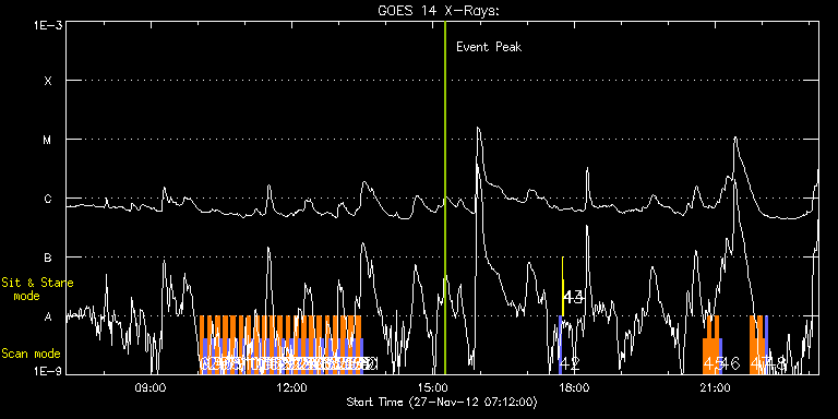 EIS Observation timeline overlay to GOES-Xray curve Code 1" 2" 40" 266" EIS Observations list for this event: STUDY ACRONYM ID DATE OBSERVED DESCRIPTION NOAA# TARGET 0 SK_DEEP_10x512_SLIT2 | 30830 | 2012/11/27 10:02:35 | HOP 79 - SOT irradiance scans (E-W) | | Quiet Sun TIMELINE ID DATE OBSERVED FITS FILE XCEN (+W/-E) YCEN (+N/-S) DUR ----------------------------------------------------------------------------------------------------------------- 30830 | 2012/11/27 10:02:35.000 | eis_l0_20121127_100235.fits.gz | -9869.95 | -9963.20 | 5m8s 1 PRY_slot_contextLITE | 30831 | 2012/11/27 10:07:54 | HOP 79 - SOT irradiance scans (E-W) - | | Active Region TIMELINE ID DATE OBSERVED FITS FILE XCEN (+W/-E) YCEN (+N/-S) DUR ----------------------------------------------------------------------------------------------------------------- 30831 | 2012/11/27 10:07:54.000 | eis_l0_20121127_100754.fits.gz | -9884.69 | -9963.20 | 2m57s 2 SK_DEEP_10x512_SLIT2 | 30832 | 2012/11/27 10:12:34 | HOP 79 - SOT irradiance scans (E-W) | | Quiet Sun TIMELINE ID DATE OBSERVED FITS FILE XCEN (+W/-E) YCEN (+N/-S) DUR ----------------------------------------------------------------------------------------------------------------- 30832 | 2012/11/27 10:12:34.000 | eis_l0_20121127_101234.fits.gz | -720.65 | -19.66 | 5m8s 3 PRY_slot_contextLITE | 30833 | 2012/11/27 10:17:54 | HOP 79 - SOT irradiance scans (E-W) - | 1623 | Active Region TIMELINE ID DATE OBSERVED FITS FILE XCEN (+W/-E) YCEN (+N/-S) DUR ----------------------------------------------------------------------------------------------------------------- 30833 | 2012/11/27 10:17:54.000 | eis_l0_20121127_101754.fits.gz | -735.70 | -19.50 | 2m56s 4 SK_DEEP_10x512_SLIT2 | 30834 | 2012/11/27 10:22:34 | HOP 79 - SOT irradiance scans (E-W) | | Quiet Sun TIMELINE ID DATE OBSERVED FITS FILE XCEN (+W/-E) YCEN (+N/-S) DUR ----------------------------------------------------------------------------------------------------------------- 30834 | 2012/11/27 10:22:34.000 | eis_l0_20121127_102234.fits.gz | -521.74 | -19.58 | 5m8s 5 PRY_slot_contextLITE | 30835 | 2012/11/27 10:27:54 | HOP 79 - SOT irradiance scans (E-W) - | | Active Region TIMELINE ID DATE OBSERVED FITS FILE XCEN (+W/-E) YCEN (+N/-S) DUR ----------------------------------------------------------------------------------------------------------------- 30835 | 2012/11/27 10:27:54.000 | eis_l0_20121127_102754.fits.gz | -536.63 | -19.50 | 2m56s 6 SK_DEEP_10x512_SLIT2 | 30836 | 2012/11/27 10:32:34 | HOP 79 - SOT irradiance scans (E-W) | | Quiet Sun TIMELINE ID DATE OBSERVED FITS FILE XCEN (+W/-E) YCEN (+N/-S) DUR ----------------------------------------------------------------------------------------------------------------- 30836 | 2012/11/27 10:32:34.000 | eis_l0_20121127_103234.fits.gz | -322.60 | -19.58 | 5m8s 7 PRY_slot_contextLITE | 30837 | 2012/11/27 10:37:54 | HOP 79 - SOT irradiance scans (E-W) - | | Active Region TIMELINE ID DATE OBSERVED FITS FILE XCEN (+W/-E) YCEN (+N/-S) DUR ----------------------------------------------------------------------------------------------------------------- 30837 | 2012/11/27 10:37:54.000 | eis_l0_20121127_103754.fits.gz | -337.41 | -19.50 | 2m56s 8 SK_DEEP_10x512_SLIT2 | 30838 | 2012/11/27 10:42:34 | HOP 79 - SOT irradiance scans (E-W) | | Quiet Sun TIMELINE ID DATE OBSERVED FITS FILE XCEN (+W/-E) YCEN (+N/-S) DUR ----------------------------------------------------------------------------------------------------------------- 30838 | 2012/11/27 10:42:34.000 | eis_l0_20121127_104234.fits.gz | -123.53 | -19.58 | 5m8s 9 PRY_slot_contextLITE | 30839 | 2012/11/27 10:47:54 | HOP 79 - SOT irradiance scans (E-W) - | | Active Region TIMELINE ID DATE OBSERVED FITS FILE XCEN (+W/-E) YCEN (+N/-S) DUR ----------------------------------------------------------------------------------------------------------------- 30839 | 2012/11/27 10:47:54.000 | eis_l0_20121127_104754.fits.gz | -138.35 | -19.50 | 2m56s 10 SK_DEEP_10x512_SLIT2 | 30840 | 2012/11/27 10:52:34 | HOP 79 - SOT irradiance scans (E-W) | | Quiet Sun TIMELINE ID DATE OBSERVED FITS FILE XCEN (+W/-E) YCEN (+N/-S) DUR ----------------------------------------------------------------------------------------------------------------- 30840 | 2012/11/27 10:52:34.000 | eis_l0_20121127_105234.fits.gz | 75.46 | -19.58 | 5m8s 11 PRY_slot_contextLITE | 30841 | 2012/11/27 10:57:54 | HOP 79 - SOT irradiance scans (E-W) - | | Active Region TIMELINE ID DATE OBSERVED FITS FILE XCEN (+W/-E) YCEN (+N/-S) DUR ----------------------------------------------------------------------------------------------------------------- 30841 | 2012/11/27 10:57:54.000 | eis_l0_20121127_105754.fits.gz | 60.64 | -19.50 | 2m56s 12 SK_DEEP_10x512_SLIT2 | 30842 | 2012/11/27 11:02:34 | HOP 79 - SOT irradiance scans (E-W) | | Quiet Sun TIMELINE ID DATE OBSERVED FITS FILE XCEN (+W/-E) YCEN (+N/-S) DUR ----------------------------------------------------------------------------------------------------------------- 30842 | 2012/11/27 11:02:34.000 | eis_l0_20121127_110234.fits.gz | 274.30 | -19.58 | 5m8s 13 PRY_slot_contextLITE | 30843 | 2012/11/27 11:07:54 | HOP 79 - SOT irradiance scans (E-W) - | 1620 | Active Region TIMELINE ID DATE OBSERVED FITS FILE XCEN (+W/-E) YCEN (+N/-S) DUR ----------------------------------------------------------------------------------------------------------------- 30843 | 2012/11/27 11:07:54.000 | eis_l0_20121127_110754.fits.gz | 259.48 | -19.50 | 2m56s 14 SK_DEEP_10x512_SLIT2 | 30844 | 2012/11/27 11:12:34 | HOP 79 - SOT irradiance scans (E-W) | | Quiet Sun TIMELINE ID DATE OBSERVED FITS FILE XCEN (+W/-E) YCEN (+N/-S) DUR ----------------------------------------------------------------------------------------------------------------- 30844 | 2012/11/27 11:12:34.000 | eis_l0_20121127_111234.fits.gz | 473.44 | -19.58 | 5m8s 15 PRY_slot_contextLITE | 30845 | 2012/11/27 11:17:54 | HOP 79 - SOT irradiance scans (E-W) - | 1620 | Active Region TIMELINE ID DA