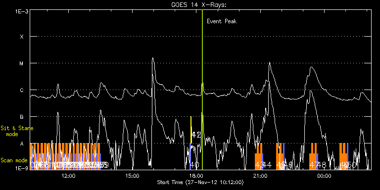 EIS Observation timeline overlay to GOES-Xray curve Code 1" 2" 40" 266" EIS Observations list for this event: STUDY ACRONYM ID DATE OBSERVED DESCRIPTION NOAA# TARGET 0 SK_DEEP_10x512_SLIT2 | 30832 | 2012/11/27 10:12:34 | HOP 79 - SOT irradiance scans (E-W) | | Quiet Sun TIMELINE ID DATE OBSERVED FITS FILE XCEN (+W/-E) YCEN (+N/-S) DUR ----------------------------------------------------------------------------------------------------------------- 30832 | 2012/11/27 10:12:34.000 | eis_l0_20121127_101234.fits.gz | -720.65 | -19.66 | 5m8s 1 PRY_slot_contextLITE | 30833 | 2012/11/27 10:17:54 | HOP 79 - SOT irradiance scans (E-W) - | 1623 | Active Region TIMELINE ID DATE OBSERVED FITS FILE XCEN (+W/-E) YCEN (+N/-S) DUR ----------------------------------------------------------------------------------------------------------------- 30833 | 2012/11/27 10:17:54.000 | eis_l0_20121127_101754.fits.gz | -735.70 | -19.50 | 2m56s 2 SK_DEEP_10x512_SLIT2 | 30834 | 2012/11/27 10:22:34 | HOP 79 - SOT irradiance scans (E-W) | | Quiet Sun TIMELINE ID DATE OBSERVED FITS FILE XCEN (+W/-E) YCEN (+N/-S) DUR ----------------------------------------------------------------------------------------------------------------- 30834 | 2012/11/27 10:22:34.000 | eis_l0_20121127_102234.fits.gz | -521.74 | -19.58 | 5m8s 3 PRY_slot_contextLITE | 30835 | 2012/11/27 10:27:54 | HOP 79 - SOT irradiance scans (E-W) - | | Active Region TIMELINE ID DATE OBSERVED FITS FILE XCEN (+W/-E) YCEN (+N/-S) DUR ----------------------------------------------------------------------------------------------------------------- 30835 | 2012/11/27 10:27:54.000 | eis_l0_20121127_102754.fits.gz | -536.63 | -19.50 | 2m56s 4 SK_DEEP_10x512_SLIT2 | 30836 | 2012/11/27 10:32:34 | HOP 79 - SOT irradiance scans (E-W) | | Quiet Sun TIMELINE ID DATE OBSERVED FITS FILE XCEN (+W/-E) YCEN (+N/-S) DUR ----------------------------------------------------------------------------------------------------------------- 30836 | 2012/11/27 10:32:34.000 | eis_l0_20121127_103234.fits.gz | -322.60 | -19.58 | 5m8s 5 PRY_slot_contextLITE | 30837 | 2012/11/27 10:37:54 | HOP 79 - SOT irradiance scans (E-W) - | | Active Region TIMELINE ID DATE OBSERVED FITS FILE XCEN (+W/-E) YCEN (+N/-S) DUR ----------------------------------------------------------------------------------------------------------------- 30837 | 2012/11/27 10:37:54.000 | eis_l0_20121127_103754.fits.gz | -337.41 | -19.50 | 2m56s 6 SK_DEEP_10x512_SLIT2 | 30838 | 2012/11/27 10:42:34 | HOP 79 - SOT irradiance scans (E-W) | | Quiet Sun TIMELINE ID DATE OBSERVED FITS FILE XCEN (+W/-E) YCEN (+N/-S) DUR ----------------------------------------------------------------------------------------------------------------- 30838 | 2012/11/27 10:42:34.000 | eis_l0_20121127_104234.fits.gz | -123.53 | -19.58 | 5m8s 7 PRY_slot_contextLITE | 30839 | 2012/11/27 10:47:54 | HOP 79 - SOT irradiance scans (E-W) - | | Active Region TIMELINE ID DATE OBSERVED FITS FILE XCEN (+W/-E) YCEN (+N/-S) DUR ----------------------------------------------------------------------------------------------------------------- 30839 | 2012/11/27 10:47:54.000 | eis_l0_20121127_104754.fits.gz | -138.35 | -19.50 | 2m56s 8 SK_DEEP_10x512_SLIT2 | 30840 | 2012/11/27 10:52:34 | HOP 79 - SOT irradiance scans (E-W) | | Quiet Sun TIMELINE ID DATE OBSERVED FITS FILE XCEN (+W/-E) YCEN (+N/-S) DUR ----------------------------------------------------------------------------------------------------------------- 30840 | 2012/11/27 10:52:34.000 | eis_l0_20121127_105234.fits.gz | 75.46 | -19.58 | 5m8s 9 PRY_slot_contextLITE | 30841 | 2012/11/27 10:57:54 | HOP 79 - SOT irradiance scans (E-W) - | | Active Region TIMELINE ID DATE OBSERVED FITS FILE XCEN (+W/-E) YCEN (+N/-S) DUR ----------------------------------------------------------------------------------------------------------------- 30841 | 2012/11/27 10:57:54.000 | eis_l0_20121127_105754.fits.gz | 60.64 | -19.50 | 2m56s 10 SK_DEEP_10x512_SLIT2 | 30842 | 2012/11/27 11:02:34 | HOP 79 - SOT irradiance scans (E-W) | | Quiet Sun TIMELINE ID DATE OBSERVED FITS FILE XCEN (+W/-E) YCEN (+N/-S) DUR ----------------------------------------------------------------------------------------------------------------- 30842 | 2012/11/27 11:02:34.000 | eis_l0_20121127_110234.fits.gz | 274.30 | -19.58 | 5m8s 11 PRY_slot_contextLITE | 30843 | 2012/11/27 11:07:54 | HOP 79 - SOT irradiance scans (E-W) - | 1620 | Active Region TIMELINE ID DATE OBSERVED FITS FILE XCEN (+W/-E) YCEN (+N/-S) DUR ----------------------------------------------------------------------------------------------------------------- 30843 | 2012/11/27 11:07:54.000 | eis_l0_20121127_110754.fits.gz | 259.48 | -19.50 | 2m56s 12 SK_DEEP_10x512_SLIT2 | 30844 | 2012/11/27 11:12:34 | HOP 79 - SOT irradiance scans (E-W) | | Quiet Sun TIMELINE ID DATE OBSERVED FITS FILE XCEN (+W/-E) YCEN (+N/-S) DUR ----------------------------------------------------------------------------------------------------------------- 30844 | 2012/11/27 11:12:34.000 | eis_l0_20121127_111234.fits.gz | 473.44 | -19.58 | 5m8s 13 PRY_slot_contextLITE | 30845 | 2012/11/27 11:17:54 | HOP 79 - SOT irradiance scans (E-W) - | 1620 | Active Region TIMELINE ID DATE OBSERVED FITS FILE XCEN (+W/-E) YCEN (+N/-S) DUR ----------------------------------------------------------------------------------------------------------------- 30845 | 2012/11/27 11:17:54.000 | eis_l0_20121127_111754.fits.gz | 458.47 | -19.58 | 2m56s 14 SK_DEEP_10x512_SLIT2 | 30846 | 2012/11/27 11:22:34 | HOP 79 - SOT irradiance scans (E-W) | | Quiet Sun TIMELINE ID DATE OBSERVED FITS FILE XCEN (+W/-E) YCEN (+N/-S) DUR ----------------------------------------------------------------------------------------------------------------- 30846 | 2012/11/27 11:22:34.000 | eis_l0_20121127_112234.fits.gz | 672.35 | -19.50 | 5m8s 15 PRY_slot_contextLITE | 30847 | 2012/11/27 11:27:54 | HOP 79 - SOT irradiance scans (E-W) - | 1620 | Active Region TIMELINE ID DATE 