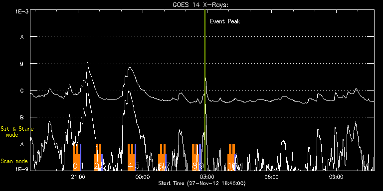 EIS Observation timeline overlay to GOES-Xray curve Code 1" 2" 40" 266" EIS Observations list for this event: STUDY ACRONYM ID DATE OBSERVED DESCRIPTION NOAA# TARGET 0 AR_filament | 30872 | 2012/11/27 20:45:04 | AR 11618 observation with prominence | 1618 | Active Region TIMELINE ID DATE OBSERVED FITS FILE XCEN (+W/-E) YCEN (+N/-S) DUR ----------------------------------------------------------------------------------------------------------------- 30872 | 2012/11/27 20:45:04.000 | eis_l0_20121127_204504.fits.gz | 919.82 | 105.02 | 4m50s 30872 | 2012/11/27 20:49:57.000 | eis_l0_20121127_204957.fits.gz | 919.90 | 104.94 | 4m50s 30872 | 2012/11/27 20:54:50.000 | eis_l0_20121127_205450.fits.gz | 919.74 | 104.94 | 4m50s 30872 | 2012/11/27 20:59:43.000 | eis_l0_20121127_205943.fits.gz | 919.74 | 105.02 | 4m50s 1 PRY_slot_contextLITE | 30873 | 2012/11/27 21:04:44 | AR 11618 observation with prominence - | 1618 | Active Region TIMELINE ID DATE OBSERVED FITS FILE XCEN (+W/-E) YCEN (+N/-S) DUR ----------------------------------------------------------------------------------------------------------------- 30873 | 2012/11/27 21:04:44.000 | eis_l0_20121127_210444.fits.gz | 908.82 | 104.94 | 2m57s 2 AR_filament | 30874 | 2012/11/27 21:44:34 | AR 11618 observation with prominence | 1618 | Active Region TIMELINE ID DATE OBSERVED FITS FILE XCEN (+W/-E) YCEN (+N/-S) DUR ----------------------------------------------------------------------------------------------------------------- 30874 | 2012/11/27 21:44:34.000 | eis_l0_20121127_214434.fits.gz | 919.82 | 105.02 | 4m50s 30874 | 2012/11/27 21:49:27.000 | eis_l0_20121127_214927.fits.gz | 919.82 | 105.02 | 4m50s 30874 | 2012/11/27 21:54:20.000 | eis_l0_20121127_215420.fits.gz | 919.82 | 104.94 | 4m50s 30874 | 2012/11/27 21:59:13.000 | eis_l0_20121127_215913.fits.gz | 919.82 | 104.94 | 4m50s 3 PRY_slot_contextLITE | 30875 | 2012/11/27 22:04:14 | AR 11618 observation with prominence - | 1618 | Active Region TIMELINE ID DATE OBSERVED FITS FILE XCEN (+W/-E) YCEN (+N/-S) DUR ----------------------------------------------------------------------------------------------------------------- 30875 | 2012/11/27 22:04:14.000 | eis_l0_20121127_220414.fits.gz | 908.82 | 105.02 | 2m56s 4 AR_filament | 30876 | 2012/11/27 23:18:34 | AR 11618 observation with prominence | 1618 | Active Region TIMELINE ID DATE OBSERVED FITS FILE XCEN (+W/-E) YCEN (+N/-S) DUR ----------------------------------------------------------------------------------------------------------------- 30876 | 2012/11/27 23:18:34.000 | eis_l0_20121127_231834.fits.gz | 919.82 | 104.94 | 4m49s 30876 | 2012/11/27 23:23:26.000 | eis_l0_20121127_232326.fits.gz | 919.82 | 104.94 | 4m51s 30876 | 2012/11/27 23:28:20.000 | eis_l0_20121127_232820.fits.gz | 919.90 | 104.94 | 4m50s 30876 | 2012/11/27 23:33:13.000 | eis_l0_20121127_233313.fits.gz | 919.82 | 105.02 | 4m50s 5 PRY_slot_contextLITE | 30877 | 2012/11/27 23:38:14 | AR 11618 observation with prominence - | 1618 | Active Region TIMELINE ID DATE OBSERVED FITS FILE XCEN (+W/-E) YCEN (+N/-S) DUR ----------------------------------------------------------------------------------------------------------------- 30877 | 2012/11/27 23:38:14.000 | eis_l0_20121127_233814.fits.gz | 908.82 | 105.02 | 2m57s 6 AR_filament | 30878 | 2012/11/28 00:43:33 | AR 11618 observation with prominence | 1618 | Active Region TIMELINE ID DATE OBSERVED FITS FILE XCEN (+W/-E) YCEN (+N/-S) DUR ----------------------------------------------------------------------------------------------------------------- 30878 | 2012/11/28 00:43:33.000 | eis_l0_20121128_004333.fits.gz | 919.74 | 105.18 | 4m50s 30878 | 2012/11/28 00:48:26.000 | eis_l0_20121128_004826.fits.gz | 919.90 | 105.02 | 4m51s 30878 | 2012/11/28 00:53:19.000 | eis_l0_20121128_005319.fits.gz | 919.82 | 105.02 | 4m51s 30878 | 2012/11/28 00:58:12.000 | eis_l0_20121128_005812.fits.gz | 919.82 | 104.94 | 4m51s 7 PRY_slot_contextLITE | 30879 | 2012/11/28 01:03:14 | AR 11618 observation with prominence - | 1618 | Active Region TIMELINE ID DATE OBSERVED FITS FILE XCEN (+W/-E) YCEN (+N/-S) DUR ----------------------------------------------------------------------------------------------------------------- 30879 | 2012/11/28 01:03:14.000 | eis_l0_20121128_010314.fits.gz | 908.75 | 105.02 | 2m56s 8 AR_filament | 30880 | 2012/11/28 02:18:33 | AR 11618 observation with prominence | 1618 | Active Region TIMELINE ID DATE OBSERVED FITS FILE XCEN (+W/-E) YCEN (+N/-S) DUR ----------------------------------------------------------------------------------------------------------------- 30880 | 2012/11/28 02:18:33.000 | eis_l0_20121128_021833.fits.gz | 919.82 | 105.10 | 4m50s 30880 | 2012/11/28 02:23:26.000 | eis_l0_20121128_022326.fits.gz | 919.82 | 105.02 | 4m51s 30880 | 2012/11/28 02:28:20.000 | eis_l0_20121128_022820.fits.gz | 919.90 | 105.02 | 4m50s 30880 | 2012/11/28 02:33:13.000 | eis_l0_20121128_023313.fits.gz | 919.82 | 105.02 | 4m51s 9 PRY_slot_contextLITE | 30881 | 2012/11/28 02:38:15 | AR 11618 observation with prominence - | 1618 | Active Region TIMELINE ID DATE OBSERVED FITS FILE XCEN (+W/-E) YCEN (+N/-S) DUR ----------------------------------------------------------------------------------------------------------------- 30881 | 2012/11/28 02:38:15.000 | eis_l0_20121128_023815.fits.gz | 908.90 | 104.94 | 2m56s 10 AR_filament | 30882 | 2012/11/28 03:56:33 | AR 11618 observation with prominence | 1618 | Active Region TIMELINE ID DATE OBSERVED FITS FILE XCEN (+W/-E) YCEN (+N/-S) DUR ----------------------------------------------------------------------------------------------------------------- 30882 | 2012/11/28 03:56:33.000 | eis_l0_20121128_035633.fits.gz | 919.82 | 105.10 | 4m51s 30882 | 2012/11/28 04:01:27.000 | eis_l0_20121128_040127.fits.gz | 919.82 | 104.94 | 4m50s 30882 | 2012/11/28 04:06:20.000 | eis_l0_20121128_040620.fits.gz | 919.90 | 105.02 | 4m50s 30882 | 2012/11/28 04:11:13.000 | eis_l0_20121128_041113.fits.gz | 919.90 | 104.94 |