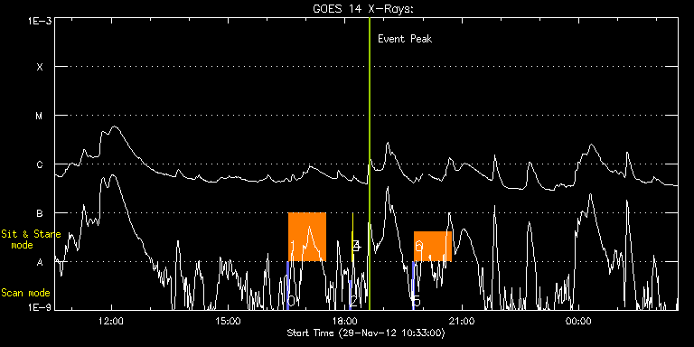 EIS Observation timeline overlay to GOES-Xray curve