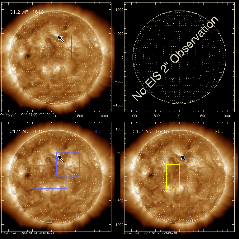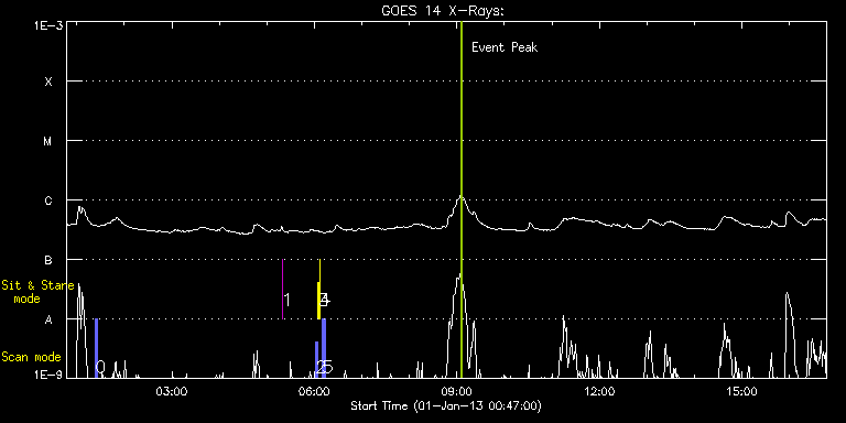 EIS Observation timeline overlay to GOES-Xray curve Code 1" 2" 40" 266" EIS Observations list for this event: STUDY ACRONYM ID DATE OBSERVED DESCRIPTION NOAA# TARGET 0 PRY_slot_contextLITE | 31388 | 2013/01/01 01:23:09 | Context AR observations | 1636 | Active Region TIMELINE ID DATE OBSERVED FITS FILE XCEN (+W/-E) YCEN (+N/-S) DUR ----------------------------------------------------------------------------------------------------------------- 31388 | 2013/01/01 01:23:09.000 | eis_l0_20130101_012309.fits.gz | 252.22 | 253.72 | 2m56s 1 regcal077 | 31397 | 2013/01/01 05:19:37 | Flatfield, 2 exposures, led 80ms, full | | Engineering TIMELINE ID DATE OBSERVED FITS FILE XCEN (+W/-E) YCEN (+N/-S) DUR ----------------------------------------------------------------------------------------------------------------- 31397 | 2013/01/01 05:19:37.000 | eis_l0_20130101_051937.fits.gz | 316.70 | 203.65 | 4s 2 PRY_slot_contextLITE | 31369 | 2013/01/01 06:01:39 | | 1639 | Active Region TIMELINE ID DATE OBSERVED FITS FILE XCEN (+W/-E) YCEN (+N/-S) DUR ----------------------------------------------------------------------------------------------------------------- 31369 | 2013/01/01 06:01:39.000 | eis_l0_20130101_060139.fits.gz | -15.29 | -0.58 | 2m56s 3 Alignment_266 | 31370 | 2013/01/01 06:04:54 | | 1639 | Quiet Sun TIMELINE ID DATE OBSERVED FITS FILE XCEN (+W/-E) YCEN (+N/-S) DUR ----------------------------------------------------------------------------------------------------------------- 31370 | 2013/01/01 06:04:54.000 | eis_l0_20130101_060454.fits.gz | -132.57 | -0.42 | 1m22s 4 XRT_synop_AIA | 31371 | 2013/01/01 06:07:01 | | 1639 | Quiet Sun TIMELINE ID DATE OBSERVED FITS FILE XCEN (+W/-E) YCEN (+N/-S) DUR ----------------------------------------------------------------------------------------------------------------- 31371 | 2013/01/01 06:07:01.000 | eis_l0_20130101_060701.fits.gz | -132.49 | -0.50 | 10s 5 PRY_slot_contextLITE | 31349 | 2013/01/01 06:10:25 | | 1639 | Active Region TIMELINE ID DATE OBSERVED FITS FILE XCEN (+W/-E) YCEN (+N/-S) DUR ----------------------------------------------------------------------------------------------------------------- 31349 | 2013/01/01 06:10:25.000 | eis_l0_20130101_061025.fits.gz | -240.78 | -4.52 | 2m56s : Check study information : Download file : View thumbnails For this event, also check for: