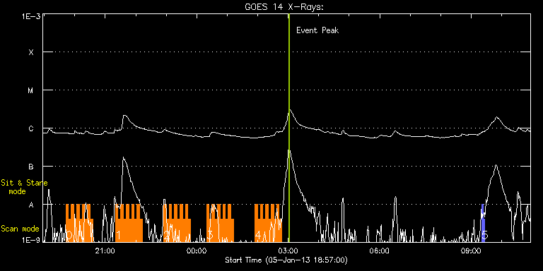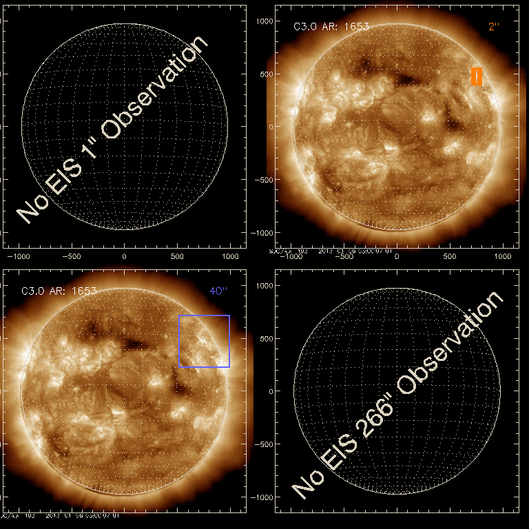 EIS Observation timeline overlay to GOES-Xray curve Code 1" 2" 40" 266" EIS Observations list for this event: STUDY ACRONYM ID DATE OBSERVED DESCRIPTION NOAA# TARGET 0 HH_Flare+AR_180x152 | 31449 | 2013/01/05 19:42:13 | Active Region Study at W-limb | 1640 | Flare TIMELINE ID DATE OBSERVED FITS FILE XCEN (+W/-E) YCEN (+N/-S) DUR ----------------------------------------------------------------------------------------------------------------- 31449 | 2013/01/05 19:42:13.000 | eis_l0_20130105_194213.fits.gz | 740.88 | 472.56 | 5m19s 31449 | 2013/01/05 19:47:34.000 | eis_l0_20130105_194734.fits.gz | 741.34 | 472.49 | 5m18s 31449 | 2013/01/05 19:52:54.000 | eis_l0_20130105_195254.fits.gz | 741.73 | 472.49 | 5m18s 31449 | 2013/01/05 19:58:14.000 | eis_l0_20130105_195814.fits.gz | 742.20 | 472.33 | 5m18s 31449 | 2013/01/05 20:03:35.000 | eis_l0_20130105_200335.fits.gz | 742.58 | 472.49 | 5m18s 31449 | 2013/01/05 20:08:56.000 | eis_l0_20130105_200856.fits.gz | 742.97 | 472.33 | 5m17s 31449 | 2013/01/05 20:14:16.000 | eis_l0_20130105_201416.fits.gz | 743.35 | 472.33 | 5m18s 31449 | 2013/01/05 20:19:37.000 | eis_l0_20130105_201937.fits.gz | 743.74 | 472.18 | 5m18s 31449 | 2013/01/05 20:24:58.000 | eis_l0_20130105_202458.fits.gz | 744.28 | 472.26 | 5m18s 31449 | 2013/01/05 20:30:18.000 | eis_l0_20130105_203018.fits.gz | 744.67 | 472.10 | 5m19s 1 HH_Flare+AR_180x152 | 31450 | 2013/01/05 21:19:44 | Active Region Study at W-limb | 1640 | Flare TIMELINE ID DATE OBSERVED FITS FILE XCEN (+W/-E) YCEN (+N/-S) DUR ----------------------------------------------------------------------------------------------------------------- 31450 | 2013/01/05 21:19:44.000 | eis_l0_20130105_211944.fits.gz | 748.45 | 471.79 | 5m17s 31450 | 2013/01/05 21:25:04.000 | eis_l0_20130105_212504.fits.gz | 748.84 | 471.87 | 5m18s 31450 | 2013/01/05 21:30:25.000 | eis_l0_20130105_213025.fits.gz | 749.22 | 471.87 | 5m17s 31450 | 2013/01/05 21:35:45.000 | eis_l0_20130105_213545.fits.gz | 749.53 | 471.79 | 5m18s 31450 | 2013/01/05 21:41:06.000 | eis_l0_20130105_214106.fits.gz | 750.07 | 471.71 | 5m18s 31450 | 2013/01/05 21:46:27.000 | eis_l0_20130105_214627.fits.gz | 750.46 | 471.71 | 5m17s 31450 | 2013/01/05 21:51:47.000 | eis_l0_20130105_215147.fits.gz | 750.85 | 471.48 | 5m18s 31450 | 2013/01/05 21:57:08.000 | eis_l0_20130105_215708.fits.gz | 751.23 | 471.56 | 5m18s 31450 | 2013/01/05 22:02:29.000 | eis_l0_20130105_220229.fits.gz | 751.62 | 471.64 | 5m17s 31450 | 2013/01/05 22:07:49.000 | eis_l0_20130105_220749.fits.gz | 752.08 | 471.48 | 5m19s 2 HH_Flare+AR_180x152 | 31464 | 2013/01/05 22:54:43 | Active Region Study at W-limb | 1640 | Flare TIMELINE ID DATE OBSERVED FITS FILE XCEN (+W/-E) YCEN (+N/-S) DUR ----------------------------------------------------------------------------------------------------------------- 31464 | 2013/01/05 22:54:43.000 | eis_l0_20130105_225443.fits.gz | 755.48 | 471.17 | 5m18s 31464 | 2013/01/05 23:00:04.000 | eis_l0_20130105_230004.fits.gz | 755.87 | 471.17 | 5m19s 31464 | 2013/01/05 23:05:25.000 | eis_l0_20130105_230525.fits.gz | 756.25 | 471.17 | 5m18s 31464 | 2013/01/05 23:10:46.000 | eis_l0_20130105_231046.fits.gz | 756.72 | 471.17 | 5m19s 31464 | 2013/01/05 23:16:07.000 | eis_l0_20130105_231607.fits.gz | 757.18 | 471.10 | 5m18s 31464 | 2013/01/05 23:21:28.000 | eis_l0_20130105_232128.fits.gz | 757.49 | 471.10 | 5m17s 31464 | 2013/01/05 23:26:48.000 | eis_l0_20130105_232648.fits.gz | 757.95 | 471.10 | 5m18s 31464 | 2013/01/05 23:32:09.000 | eis_l0_20130105_233209.fits.gz | 758.26 | 471.02 | 5m18s 31464 | 2013/01/05 23:37:30.000 | eis_l0_20130105_233730.fits.gz | 758.65 | 470.94 | 5m18s 31464 | 2013/01/05 23:42:51.000 | eis_l0_20130105_234251.fits.gz | 759.19 | 470.94 | 5m18s 3 HH_Flare+AR_180x152 | 31465 | 2013/01/06 00:19:13 | Active Region Study at W-limb | 1640 | Flare TIMELINE ID DATE OBSERVED FITS FILE XCEN (+W/-E) YCEN (+N/-S) DUR ----------------------------------------------------------------------------------------------------------------- 31465 | 2013/01/06 00:19:13.000 | eis_l0_20130106_001913.fits.gz | 761.74 | 470.79 | 5m19s 31465 | 2013/01/06 00:24:35.000 | eis_l0_20130106_002435.fits.gz | 762.12 | 470.71 | 5m17s 31465 | 2013/01/06 00:29:55.000 | eis_l0_20130106_002955.fits.gz | 762.59 | 470.63 | 5m18s 31465 | 2013/01/06 00:35:16.000 | eis_l0_20130106_003516.fits.gz | 762.97 | 470.56 | 5m18s 31465 | 2013/01/06 00:40:37.000 | eis_l0_20130106_004037.fits.gz | 763.28 | 470.48 | 5m17s 31465 | 2013/01/06 00:45:57.000 | eis_l0_20130106_004557.fits.gz | 763.67 | 470.48 | 5m18s 31465 | 2013/01/06 00:51:18.000 | eis_l0_20130106_005118.fits.gz | 764.06 | 470.32 | 5m18s 31465 | 2013/01/06 00:56:38.000 | eis_l0_20130106_005638.fits.gz | 764.44 | 470.48 | 5m18s 31465 | 2013/01/06 01:01:59.000 | eis_l0_20130106_010159.fits.gz | 764.91 | 470.32 | 5m19s 31465 | 2013/01/06 01:07:20.000 | eis_l0_20130106_010720.fits.gz | 765.21 | 470.40 | 5m18s 4 HH_Flare+AR_180x152 | 31466 | 2013/01/06 01:54:13 | Active Region Study at W-limb | 1640 | Flare TIMELINE ID DATE OBSERVED FITS FILE XCEN (+W/-E) YCEN (+N/-S) DUR ----------------------------------------------------------------------------------------------------------------- 31466 | 2013/01/06 01:54:13.000 | eis_l0_20130106_015413.fits.gz | 768.61 | 470.09 | 5m18s 31466 | 2013/01/06 01:59:34.000 | eis_l0_20130106_015934.fits.gz | 768.92 | 470.09 | 5m18s 31466 | 2013/01/06 02:04:55.000 | eis_l0_20130106_020455.fits.gz | 769.39 | 470.02 | 5m19s 31466 | 2013/01/06 02:10:16.000 | eis_l0_20130106_021016.fits.gz | 769.77 | 470.02 | 5m18s 31466 | 2013/01/06 02:15:37.000 | eis_l0_20130106_021537.fits.gz | 770.08 | 469.94 | 5m18s 31466 | 2013/01/06 02:20:58.000 | eis_l0_20130106_022058.fits.gz | 770.39 | 469.94 | 5m18s 31466 | 2013/01/06 02:26:19.000 | eis_l0_20130106_022619.fits.gz | 770.85 | 469.86 | 5m17s 31466 | 2013/01/06 02:31:39.000 | eis_l0_20130106_023139.fits.gz | 771.16 | 469.78 | 5m18s 31466 | 2013/01/06 02:37:00.000 | eis_l0_20130106_023700.fits.gz | 771.