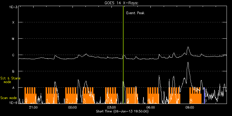 EIS Observation timeline overlay to GOES-Xray curve Code 1" 2" 40" 266" EIS Observations list for this event: STUDY ACRONYM ID DATE OBSERVED DESCRIPTION NOAA# TARGET 0 HH_Flare+AR_180x152 | 31467 | 2013/01/06 20:19:33 | Active Region Study at W-limb | 1640 | Flare TIMELINE ID DATE OBSERVED FITS FILE XCEN (+W/-E) YCEN (+N/-S) DUR ----------------------------------------------------------------------------------------------------------------- 31467 | 2013/01/06 20:19:33.000 | eis_l0_20130106_201933.fits.gz | 824.83 | 461.36 | 5m18s 31467 | 2013/01/06 20:24:53.000 | eis_l0_20130106_202453.fits.gz | 824.83 | 461.36 | 5m18s 31467 | 2013/01/06 20:30:14.000 | eis_l0_20130106_203014.fits.gz | 824.83 | 461.36 | 5m18s 31467 | 2013/01/06 20:35:35.000 | eis_l0_20130106_203535.fits.gz | 824.83 | 461.44 | 5m18s 31467 | 2013/01/06 20:40:56.000 | eis_l0_20130106_204056.fits.gz | 824.75 | 461.60 | 5m18s 31467 | 2013/01/06 20:46:17.000 | eis_l0_20130106_204617.fits.gz | 824.83 | 461.36 | 5m18s 31467 | 2013/01/06 20:51:38.000 | eis_l0_20130106_205138.fits.gz | 824.83 | 461.44 | 5m18s 31467 | 2013/01/06 20:56:59.000 | eis_l0_20130106_205659.fits.gz | 824.83 | 461.29 | 5m18s 31467 | 2013/01/06 21:02:20.000 | eis_l0_20130106_210220.fits.gz | 824.83 | 461.36 | 5m17s 31467 | 2013/01/06 21:07:40.000 | eis_l0_20130106_210740.fits.gz | 824.75 | 461.36 | 5m18s 1 HH_Flare+AR_180x152 | 31468 | 2013/01/06 21:56:40 | Active Region Study at W-limb | 1640 | Flare TIMELINE ID DATE OBSERVED FITS FILE XCEN (+W/-E) YCEN (+N/-S) DUR ----------------------------------------------------------------------------------------------------------------- 31468 | 2013/01/06 21:56:40.000 | eis_l0_20130106_215640.fits.gz | 824.75 | 461.36 | 5m18s 31468 | 2013/01/06 22:02:01.000 | eis_l0_20130106_220201.fits.gz | 824.83 | 461.29 | 5m18s 31468 | 2013/01/06 22:07:22.000 | eis_l0_20130106_220722.fits.gz | 824.75 | 461.36 | 5m17s 31468 | 2013/01/06 22:12:42.000 | eis_l0_20130106_221242.fits.gz | 824.83 | 461.44 | 5m18s 31468 | 2013/01/06 22:18:03.000 | eis_l0_20130106_221803.fits.gz | 824.83 | 461.36 | 5m18s 31468 | 2013/01/06 22:23:23.000 | eis_l0_20130106_222323.fits.gz | 824.91 | 461.44 | 5m19s 31468 | 2013/01/06 22:28:45.000 | eis_l0_20130106_222845.fits.gz | 824.83 | 461.44 | 5m18s 31468 | 2013/01/06 22:34:05.000 | eis_l0_20130106_223405.fits.gz | 824.75 | 461.36 | 5m18s 31468 | 2013/01/06 22:39:26.000 | eis_l0_20130106_223926.fits.gz | 824.91 | 461.36 | 5m17s 31468 | 2013/01/06 22:44:46.000 | eis_l0_20130106_224446.fits.gz | 824.83 | 461.29 | 5m18s 2 HH_Flare+AR_180x152 | 31469 | 2013/01/06 23:27:12 | Active Region Study at W-limb | 1640 | Flare TIMELINE ID DATE OBSERVED FITS FILE XCEN (+W/-E) YCEN (+N/-S) DUR ----------------------------------------------------------------------------------------------------------------- 31469 | 2013/01/06 23:27:12.000 | eis_l0_20130106_232712.fits.gz | 824.91 | 461.44 | 5m18s 31469 | 2013/01/06 23:32:33.000 | eis_l0_20130106_233233.fits.gz | 824.83 | 461.44 | 5m18s 31469 | 2013/01/06 23:37:54.000 | eis_l0_20130106_233754.fits.gz | 824.83 | 461.29 | 5m18s 31469 | 2013/01/06 23:43:15.000 | eis_l0_20130106_234315.fits.gz | 824.75 | 461.44 | 5m18s 31469 | 2013/01/06 23:48:35.000 | eis_l0_20130106_234835.fits.gz | 824.83 | 461.36 | 5m19s 31469 | 2013/01/06 23:53:56.000 | eis_l0_20130106_235356.fits.gz | 824.75 | 461.36 | 5m18s 31469 | 2013/01/06 23:59:17.000 | eis_l0_20130106_235917.fits.gz | 824.75 | 461.52 | 5m19s 31469 | 2013/01/07 00:04:38.000 | eis_l0_20130107_000438.fits.gz | 824.83 | 461.36 | 5m18s 31469 | 2013/01/07 00:09:59.000 | eis_l0_20130107_000959.fits.gz | 824.83 | 461.29 | 5m18s 31469 | 2013/01/07 00:15:19.000 | eis_l0_20130107_001519.fits.gz | 824.75 | 461.44 | 5m18s 3 HH_Flare+AR_180x152 | 31470 | 2013/01/07 00:47:13 | Active Region Study at W-limb | 1640 | Flare TIMELINE ID DATE OBSERVED FITS FILE XCEN (+W/-E) YCEN (+N/-S) DUR ----------------------------------------------------------------------------------------------------------------- 31470 | 2013/01/07 00:47:13.000 | eis_l0_20130107_004713.fits.gz | 824.75 | 461.36 | 5m17s 31470 | 2013/01/07 00:52:33.000 | eis_l0_20130107_005233.fits.gz | 824.83 | 461.36 | 5m18s 31470 | 2013/01/07 00:57:53.000 | eis_l0_20130107_005753.fits.gz | 824.83 | 461.44 | 5m18s 31470 | 2013/01/07 01:03:14.000 | eis_l0_20130107_010314.fits.gz | 824.83 | 461.44 | 5m17s 31470 | 2013/01/07 01:08:34.000 | eis_l0_20130107_010834.fits.gz | 824.75 | 461.44 | 5m18s 31470 | 2013/01/07 01:13:55.000 | eis_l0_20130107_011355.fits.gz | 824.83 | 461.29 | 5m18s 31470 | 2013/01/07 01:19:16.000 | eis_l0_20130107_011916.fits.gz | 824.83 | 461.36 | 5m19s 31470 | 2013/01/07 01:24:37.000 | eis_l0_20130107_012437.fits.gz | 824.83 | 461.44 | 5m18s 31470 | 2013/01/07 01:29:58.000 | eis_l0_20130107_012958.fits.gz | 824.83 | 461.36 | 5m18s 31470 | 2013/01/07 01:35:19.000 | eis_l0_20130107_013519.fits.gz | 824.75 | 461.44 | 5m18s 4 HH_Flare+AR_180x152 | 31471 | 2013/01/07 02:30:42 | Active Region Study at W-limb | 1640 | Flare TIMELINE ID DATE OBSERVED FITS FILE XCEN (+W/-E) YCEN (+N/-S) DUR ----------------------------------------------------------------------------------------------------------------- 31471 | 2013/01/07 02:30:42.000 | eis_l0_20130107_023042.fits.gz | 824.83 | 461.36 | 5m18s 31471 | 2013/01/07 02:36:03.000 | eis_l0_20130107_023603.fits.gz | 824.91 | 461.36 | 5m18s 31471 | 2013/01/07 02:41:24.000 | eis_l0_20130107_024124.fits.gz | 824.83 | 461.36 | 5m18s 31471 | 2013/01/07 02:46:45.000 | eis_l0_20130107_024645.fits.gz | 824.75 | 461.44 | 5m18s 31471 | 2013/01/07 02:52:06.000 | eis_l0_20130107_025206.fits.gz | 824.91 | 461.29 | 5m18s 31471 | 2013/01/07 02:57:26.000 | eis_l0_20130107_025726.fits.gz | 824.75 | 461.29 | 5m19s 31471 | 2013/01/07 03:02:48.000 | eis_l0_20130107_030248.fits.gz | 824.83 | 461.36 | 5m17s 31471 | 2013/01/07 03:08:08.000 | eis_l0_20130107_030808.fits.gz | 824.83 | 461.36 | 5m17s 31471 | 2013/01/07 03:13:28.000 | eis_l0_20130107_031328.fits.gz | 824.