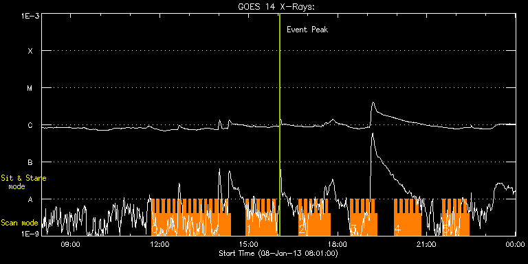EIS Observation timeline overlay to GOES-Xray curve Code 1" 2" 40" 266" EIS Observations list for this event: STUDY ACRONYM ID DATE OBSERVED DESCRIPTION NOAA# TARGET 0 HH_Flare+AR_180x152 | 31487 | 2013/01/08 11:43:20 | AR and Flare Observations | 1652 | Flare TIMELINE ID DATE OBSERVED FITS FILE XCEN (+W/-E) YCEN (+N/-S) DUR ----------------------------------------------------------------------------------------------------------------- 31487 | 2013/01/08 11:43:20.000 | eis_l0_20130108_114320.fits.gz | -696.06 | 366.35 | 5m18s 31487 | 2013/01/08 11:48:40.000 | eis_l0_20130108_114840.fits.gz | -695.52 | 366.19 | 5m18s 31487 | 2013/01/08 11:54:01.000 | eis_l0_20130108_115401.fits.gz | -694.98 | 366.43 | 5m18s 31487 | 2013/01/08 11:59:22.000 | eis_l0_20130108_115922.fits.gz | -694.51 | 366.43 | 5m18s 31487 | 2013/01/08 12:04:43.000 | eis_l0_20130108_120443.fits.gz | -693.97 | 366.50 | 5m18s 31487 | 2013/01/08 12:10:04.000 | eis_l0_20130108_121004.fits.gz | -693.51 | 366.50 | 5m18s 31487 | 2013/01/08 12:15:25.000 | eis_l0_20130108_121525.fits.gz | -692.89 | 366.58 | 5m18s 31487 | 2013/01/08 12:20:46.000 | eis_l0_20130108_122046.fits.gz | -692.43 | 366.58 | 5m18s 31487 | 2013/01/08 12:26:06.000 | eis_l0_20130108_122606.fits.gz | -691.89 | 366.58 | 5m18s 31487 | 2013/01/08 12:31:26.000 | eis_l0_20130108_123126.fits.gz | -691.50 | 366.66 | 5m19s 31487 | 2013/01/08 12:36:48.000 | eis_l0_20130108_123648.fits.gz | -690.96 | 366.73 | 5m18s 31487 | 2013/01/08 12:42:09.000 | eis_l0_20130108_124209.fits.gz | -690.27 | 366.81 | 5m17s 31487 | 2013/01/08 12:47:29.000 | eis_l0_20130108_124729.fits.gz | -689.88 | 366.97 | 5m18s 31487 | 2013/01/08 12:52:50.000 | eis_l0_20130108_125250.fits.gz | -689.26 | 366.89 | 5m18s 31487 | 2013/01/08 12:58:11.000 | eis_l0_20130108_125811.fits.gz | -688.80 | 367.12 | 5m18s 31487 | 2013/01/08 13:03:31.000 | eis_l0_20130108_130331.fits.gz | -688.26 | 367.12 | 5m19s 31487 | 2013/01/08 13:08:53.000 | eis_l0_20130108_130853.fits.gz | -687.79 | 367.12 | 5m17s 31487 | 2013/01/08 13:14:13.000 | eis_l0_20130108_131413.fits.gz | -687.17 | 367.04 | 5m18s 31487 | 2013/01/08 13:19:34.000 | eis_l0_20130108_131934.fits.gz | -686.71 | 367.20 | 5m18s 31487 | 2013/01/08 13:24:54.000 | eis_l0_20130108_132454.fits.gz | -686.17 | 367.12 | 5m18s 31487 | 2013/01/08 13:30:15.000 | eis_l0_20130108_133015.fits.gz | -685.71 | 367.28 | 5m19s 31487 | 2013/01/08 13:35:37.000 | eis_l0_20130108_133537.fits.gz | -685.09 | 367.20 | 5m17s 31487 | 2013/01/08 13:40:57.000 | eis_l0_20130108_134057.fits.gz | -684.47 | 367.20 | 5m17s 31487 | 2013/01/08 13:46:17.000 | eis_l0_20130108_134617.fits.gz | -684.09 | 367.43 | 5m17s 31487 | 2013/01/08 13:51:37.000 | eis_l0_20130108_135137.fits.gz | -683.54 | 367.35 | 5m18s 31487 | 2013/01/08 13:56:58.000 | eis_l0_20130108_135658.fits.gz | -683.08 | 367.51 | 5m17s 31487 | 2013/01/08 14:02:18.000 | eis_l0_20130108_140218.fits.gz | -682.54 | 367.43 | 5m18s 31487 | 2013/01/08 14:07:38.000 | eis_l0_20130108_140738.fits.gz | -681.92 | 367.51 | 5m19s 31487 | 2013/01/08 14:13:00.000 | eis_l0_20130108_141300.fits.gz | -681.46 | 367.58 | 5m17s 31487 | 2013/01/08 14:18:20.000 | eis_l0_20130108_141820.fits.gz | -680.92 | 367.58 | 5m19s 1 HH_Flare+AR_180x152 | 31490 | 2013/01/08 14:54:44 | AR and Flare Observations | 1652 | Flare TIMELINE ID DATE OBSERVED FITS FILE XCEN (+W/-E) YCEN (+N/-S) DUR ----------------------------------------------------------------------------------------------------------------- 31490 | 2013/01/08 14:54:44.000 | eis_l0_20130108_145444.fits.gz | -677.29 | 367.97 | 5m18s 31490 | 2013/01/08 15:00:05.000 | eis_l0_20130108_150005.fits.gz | -676.75 | 367.89 | 5m17s 31490 | 2013/01/08 15:05:25.000 | eis_l0_20130108_150525.fits.gz | -676.21 | 368.05 | 5m18s 31490 | 2013/01/08 15:10:45.000 | eis_l0_20130108_151045.fits.gz | -675.74 | 368.13 | 5m19s 31490 | 2013/01/08 15:16:07.000 | eis_l0_20130108_151607.fits.gz | -675.28 | 368.13 | 5m18s 31490 | 2013/01/08 15:21:27.000 | eis_l0_20130108_152127.fits.gz | -674.66 | 368.13 | 5m19s 31490 | 2013/01/08 15:26:49.000 | eis_l0_20130108_152649.fits.gz | -674.04 | 368.13 | 5m17s 31490 | 2013/01/08 15:32:09.000 | eis_l0_20130108_153209.fits.gz | -673.58 | 368.13 | 5m17s 31490 | 2013/01/08 15:37:29.000 | eis_l0_20130108_153729.fits.gz | -673.04 | 368.20 | 5m18s 31490 | 2013/01/08 15:42:50.000 | eis_l0_20130108_154250.fits.gz | -672.50 | 368.28 | 5m18s 31490 | 2013/01/08 15:48:11.000 | eis_l0_20130108_154811.fits.gz | -671.96 | 368.36 | 5m18s 31490 | 2013/01/08 15:53:31.000 | eis_l0_20130108_155331.fits.gz | -671.49 | 368.36 | 5m18s 2 HH_Flare+AR_180x152 | 31491 | 2013/01/08 16:41:44 | AR and Flare Observations | 1652 | Flare TIMELINE ID DATE OBSERVED FITS FILE XCEN (+W/-E) YCEN (+N/-S) DUR ----------------------------------------------------------------------------------------------------------------- 31491 | 2013/01/08 16:41:44.000 | eis_l0_20130108_164144.fits.gz | -666.55 | 368.67 | 5m17s 31491 | 2013/01/08 16:47:04.000 | eis_l0_20130108_164704.fits.gz | -666.16 | 368.82 | 5m18s 31491 | 2013/01/08 16:52:25.000 | eis_l0_20130108_165225.fits.gz | -665.62 | 368.90 | 5m18s 31491 | 2013/01/08 16:57:46.000 | eis_l0_20130108_165746.fits.gz | -664.93 | 368.90 | 5m18s 31491 | 2013/01/08 17:03:07.000 | eis_l0_20130108_170307.fits.gz | -664.47 | 368.98 | 5m18s 31491 | 2013/01/08 17:08:27.000 | eis_l0_20130108_170827.fits.gz | -663.92 | 369.05 | 5m18s 31491 | 2013/01/08 17:13:48.000 | eis_l0_20130108_171348.fits.gz | -663.31 | 369.05 | 5m17s 31491 | 2013/01/08 17:19:08.000 | eis_l0_20130108_171908.fits.gz | -662.77 | 369.05 | 5m17s 31491 | 2013/01/08 17:24:28.000 | eis_l0_20130108_172428.fits.gz | -662.22 | 369.21 | 5m18s 31491 | 2013/01/08 17:29:49.000 | eis_l0_20130108_172949.fits.gz | -661.76 | 369.13 | 5m18s 31491 | 2013/01/08 17:35:09.000 | eis_l0_20130108_173509.fits.gz | -661.14 | 369.13 | 5m19s 31491 | 2013/01/08 17:40:31.000 | eis_l0_20130108_174031.fits.gz | -660.53 | 369.28 | 5m17s 3 HH_Flare+AR_180x152 | 31492 | 2013/01/0