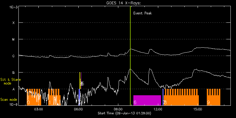 EIS Observation timeline overlay to GOES-Xray curve Code 1" 2" 40" 266" EIS Observations list for this event: STUDY ACRONYM ID DATE OBSERVED DESCRIPTION NOAA# TARGET 0 HH_Flare+AR_180x152 | 31497 | 2013/01/09 02:06:43 | AR and Flare Observations | 1652 | Flare TIMELINE ID DATE OBSERVED FITS FILE XCEN (+W/-E) YCEN (+N/-S) DUR ----------------------------------------------------------------------------------------------------------------- 31497 | 2013/01/09 02:06:43.000 | eis_l0_20130109_020643.fits.gz | -606.84 | 373.30 | 5m18s 31497 | 2013/01/09 02:12:04.000 | eis_l0_20130109_021204.fits.gz | -606.22 | 373.30 | 5m17s 31497 | 2013/01/09 02:17:24.000 | eis_l0_20130109_021724.fits.gz | -605.68 | 373.30 | 5m17s 31497 | 2013/01/09 02:22:44.000 | eis_l0_20130109_022244.fits.gz | -605.06 | 373.46 | 5m19s 31497 | 2013/01/09 02:28:05.000 | eis_l0_20130109_022805.fits.gz | -604.44 | 373.46 | 5m19s 31497 | 2013/01/09 02:33:27.000 | eis_l0_20130109_023327.fits.gz | -603.90 | 373.38 | 5m18s 31497 | 2013/01/09 02:38:47.000 | eis_l0_20130109_023847.fits.gz | -603.28 | 373.46 | 5m19s 31497 | 2013/01/09 02:44:09.000 | eis_l0_20130109_024409.fits.gz | -602.67 | 373.38 | 5m17s 31497 | 2013/01/09 02:49:29.000 | eis_l0_20130109_024929.fits.gz | -602.05 | 373.53 | 5m18s 31497 | 2013/01/09 02:54:50.000 | eis_l0_20130109_025450.fits.gz | -601.51 | 373.61 | 5m18s 31497 | 2013/01/09 03:00:11.000 | eis_l0_20130109_030011.fits.gz | -600.81 | 373.53 | 5m18s 31497 | 2013/01/09 03:05:31.000 | eis_l0_20130109_030531.fits.gz | -600.27 | 373.69 | 5m19s 1 HH_Flare+AR_180x152 | 31498 | 2013/01/09 03:44:13 | AR and Flare Observations | 1652 | Flare TIMELINE ID DATE OBSERVED FITS FILE XCEN (+W/-E) YCEN (+N/-S) DUR ----------------------------------------------------------------------------------------------------------------- 31498 | 2013/01/09 03:44:13.000 | eis_l0_20130109_034413.fits.gz | -595.95 | 374.07 | 5m18s 31498 | 2013/01/09 03:49:34.000 | eis_l0_20130109_034934.fits.gz | -595.41 | 374.07 | 5m17s 31498 | 2013/01/09 03:54:54.000 | eis_l0_20130109_035454.fits.gz | -594.86 | 374.07 | 5m18s 31498 | 2013/01/09 04:00:15.000 | eis_l0_20130109_040015.fits.gz | -594.17 | 374.15 | 5m18s 31498 | 2013/01/09 04:05:35.000 | eis_l0_20130109_040535.fits.gz | -593.63 | 374.23 | 5m18s 31498 | 2013/01/09 04:10:56.000 | eis_l0_20130109_041056.fits.gz | -593.09 | 374.15 | 5m17s 31498 | 2013/01/09 04:16:16.000 | eis_l0_20130109_041616.fits.gz | -592.39 | 374.23 | 5m18s 31498 | 2013/01/09 04:21:37.000 | eis_l0_20130109_042137.fits.gz | -591.77 | 374.30 | 5m18s 31498 | 2013/01/09 04:26:57.000 | eis_l0_20130109_042657.fits.gz | -591.23 | 374.23 | 5m18s 31498 | 2013/01/09 04:32:18.000 | eis_l0_20130109_043218.fits.gz | -590.62 | 374.23 | 5m18s 2 PRY_slot_contextLITE | 31476 | 2013/01/09 06:02:20 | | 1649 | Active Region TIMELINE ID DATE OBSERVED FITS FILE XCEN (+W/-E) YCEN (+N/-S) DUR ----------------------------------------------------------------------------------------------------------------- 31476 | 2013/01/09 06:02:20.000 | eis_l0_20130109_060220.fits.gz | -15.21 | -0.58 | 2m56s 3 Alignment_266 | 31477 | 2013/01/09 06:05:35 | | 1649 | Quiet Sun TIMELINE ID DATE OBSERVED FITS FILE XCEN (+W/-E) YCEN (+N/-S) DUR ----------------------------------------------------------------------------------------------------------------- 31477 | 2013/01/09 06:05:35.000 | eis_l0_20130109_060535.fits.gz | -132.49 | -0.58 | 1m22s 4 XRT_synop_AIA | 31478 | 2013/01/09 06:08:09 | | 1649 | Quiet Sun TIMELINE ID DATE OBSERVED FITS FILE XCEN (+W/-E) YCEN (+N/-S) DUR ----------------------------------------------------------------------------------------------------------------- 31478 | 2013/01/09 06:08:09.000 | eis_l0_20130109_060809.fits.gz | -132.57 | -0.50 | 10s 5 regcal076 | 31482 | 2013/01/09 06:12:12 | Flatfield, 1 exposure, led 100ms, ccd | | Engineering TIMELINE ID DATE OBSERVED FITS FILE XCEN (+W/-E) YCEN (+N/-S) DUR ----------------------------------------------------------------------------------------------------------------- 31482 | 2013/01/09 06:12:12.000 | eis_l0_20130109_061212.fits.gz | -562.53 | 325.08 | 1s 6 HPW021_VEL_240x512v1 | 31485 | 2013/01/09 10:09:33 | Active Region Studies | 1652 | Active Region TIMELINE ID DATE OBSERVED FITS FILE XCEN (+W/-E) YCEN (+N/-S) DUR ----------------------------------------------------------------------------------------------------------------- 31485 | 2013/01/09 10:09:33.000 | eis_l0_20130109_100933.fits.gz | -549.85 | 239.85 | 2h3m46s 7 PRY_slot_contextLITE | 31486 | 2013/01/09 12:21:33 | Active Region Studies | 1652 | Active Region TIMELINE ID DATE OBSERVED FITS FILE XCEN (+W/-E) YCEN (+N/-S) DUR ----------------------------------------------------------------------------------------------------------------- 31486 | 2013/01/09 12:21:33.000 | eis_l0_20130109_122133.fits.gz | -549.15 | 377.70 | 2m56s 8 IUU_SCAN_STEPS_002 | 31488 | 2013/01/09 12:26:33 | Active Region Studies | 1653 | Active Region TIMELINE ID DATE OBSERVED FITS FILE XCEN (+W/-E) YCEN (+N/-S) DUR ----------------------------------------------------------------------------------------------------------------- 31488 | 2013/01/09 12:26:33.000 | eis_l0_20130109_122633.fits.gz | -534.79 | 377.70 | 5m24s 31488 | 2013/01/09 12:32:00.000 | eis_l0_20130109_123200.fits.gz | -534.25 | 377.78 | 5m24s 31488 | 2013/01/09 12:37:27.000 | eis_l0_20130109_123727.fits.gz | -533.55 | 377.78 | 5m24s 31488 | 2013/01/09 12:42:54.000 | eis_l0_20130109_124254.fits.gz | -533.01 | 377.86 | 5m23s 31488 | 2013/01/09 12:48:21.000 | eis_l0_20130109_124821.fits.gz | -532.32 | 377.86 | 5m23s 31488 | 2013/01/09 12:53:48.000 | eis_l0_20130109_125348.fits.gz | -531.54 | 377.94 | 5m23s 31488 | 2013/01/09 12:59:14.000 | eis_l0_20130109_125914.fits.gz | -530.93 | 377.94 | 5m24s 31488 | 2013/01/09 13:04:41.000 | eis_l0_20130109_130441.fits.gz | -530.23 | 377.94 | 5m23s 31488 | 2013/01/09 13:10:08.000 | eis_l0_20130109_131008.fits.gz | -529.69 | 378.17 | 5m24s 31488 | 2013/01/09 