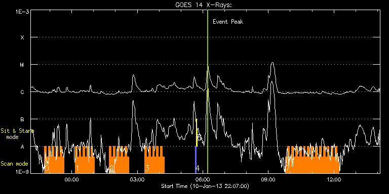 EIS Observation timeline overlay to GOES-Xray curve Code 1" 2" 40" 266" EIS Observations list for this event: STUDY ACRONYM ID DATE OBSERVED DESCRIPTION NOAA# TARGET 0 HH_Flare+AR_180x152 | 31513 | 2013/01/10 22:44:43 | AR and Flare Observations | 1652 | Flare TIMELINE ID DATE OBSERVED FITS FILE XCEN (+W/-E) YCEN (+N/-S) DUR ----------------------------------------------------------------------------------------------------------------- 31513 | 2013/01/10 22:44:43.000 | eis_l0_20130110_224443.fits.gz | -266.02 | 389.45 | 5m18s 31513 | 2013/01/10 22:50:04.000 | eis_l0_20130110_225004.fits.gz | -265.40 | 389.37 | 5m18s 31513 | 2013/01/10 22:55:25.000 | eis_l0_20130110_225525.fits.gz | -264.63 | 389.37 | 5m18s 31513 | 2013/01/10 23:00:45.000 | eis_l0_20130110_230045.fits.gz | -263.86 | 389.37 | 5m18s 31513 | 2013/01/10 23:06:06.000 | eis_l0_20130110_230606.fits.gz | -263.09 | 389.37 | 5m19s 31513 | 2013/01/10 23:11:27.000 | eis_l0_20130110_231127.fits.gz | -262.31 | 389.45 | 5m18s 31513 | 2013/01/10 23:16:48.000 | eis_l0_20130110_231648.fits.gz | -261.54 | 389.45 | 5m18s 31513 | 2013/01/10 23:22:09.000 | eis_l0_20130110_232209.fits.gz | -260.85 | 389.37 | 5m18s 31513 | 2013/01/10 23:27:30.000 | eis_l0_20130110_232730.fits.gz | -260.07 | 389.52 | 5m18s 31513 | 2013/01/10 23:32:51.000 | eis_l0_20130110_233251.fits.gz | -259.15 | 389.52 | 5m18s 1 HH_Flare+AR_180x152 | 31514 | 2013/01/11 00:09:13 | AR and Flare Observations | 1652 | Flare TIMELINE ID DATE OBSERVED FITS FILE XCEN (+W/-E) YCEN (+N/-S) DUR ----------------------------------------------------------------------------------------------------------------- 31514 | 2013/01/11 00:09:13.000 | eis_l0_20130111_000913.fits.gz | -254.20 | 389.83 | 5m19s 31514 | 2013/01/11 00:14:35.000 | eis_l0_20130111_001435.fits.gz | -253.51 | 389.76 | 5m18s 31514 | 2013/01/11 00:19:55.000 | eis_l0_20130111_001955.fits.gz | -252.74 | 389.76 | 5m19s 31514 | 2013/01/11 00:25:17.000 | eis_l0_20130111_002517.fits.gz | -251.88 | 389.83 | 5m17s 31514 | 2013/01/11 00:30:37.000 | eis_l0_20130111_003037.fits.gz | -251.27 | 389.99 | 5m17s 31514 | 2013/01/11 00:35:57.000 | eis_l0_20130111_003557.fits.gz | -250.49 | 389.76 | 5m17s 31514 | 2013/01/11 00:41:17.000 | eis_l0_20130111_004117.fits.gz | -249.72 | 389.91 | 5m18s 31514 | 2013/01/11 00:46:38.000 | eis_l0_20130111_004638.fits.gz | -248.87 | 389.83 | 5m17s 31514 | 2013/01/11 00:51:58.000 | eis_l0_20130111_005158.fits.gz | -248.18 | 389.91 | 5m17s 31514 | 2013/01/11 00:57:18.000 | eis_l0_20130111_005718.fits.gz | -247.33 | 389.68 | 5m18s 2 HH_Flare+AR_180x152 | 31515 | 2013/01/11 01:43:13 | AR and Flare Observations | 1652 | Flare TIMELINE ID DATE OBSERVED FITS FILE XCEN (+W/-E) YCEN (+N/-S) DUR ----------------------------------------------------------------------------------------------------------------- 31515 | 2013/01/11 01:43:13.000 | eis_l0_20130111_014313.fits.gz | -240.92 | 390.14 | 5m18s 31515 | 2013/01/11 01:48:34.000 | eis_l0_20130111_014834.fits.gz | -240.22 | 390.06 | 5m18s 31515 | 2013/01/11 01:53:55.000 | eis_l0_20130111_015355.fits.gz | -239.45 | 390.14 | 5m17s 31515 | 2013/01/11 01:59:15.000 | eis_l0_20130111_015915.fits.gz | -238.60 | 390.14 | 5m18s 31515 | 2013/01/11 02:04:35.000 | eis_l0_20130111_020435.fits.gz | -237.90 | 390.22 | 5m19s 31515 | 2013/01/11 02:09:57.000 | eis_l0_20130111_020957.fits.gz | -237.13 | 390.06 | 5m18s 31515 | 2013/01/11 02:15:18.000 | eis_l0_20130111_021518.fits.gz | -236.36 | 390.06 | 5m18s 31515 | 2013/01/11 02:20:39.000 | eis_l0_20130111_022039.fits.gz | -235.66 | 390.14 | 5m17s 31515 | 2013/01/11 02:25:59.000 | eis_l0_20130111_022559.fits.gz | -234.89 | 390.30 | 5m17s 31515 | 2013/01/11 02:31:19.000 | eis_l0_20130111_023119.fits.gz | -234.12 | 390.30 | 5m17s 3 HH_Flare+AR_180x152 | 31516 | 2013/01/11 03:20:13 | AR and Flare Observations | 1652 | Flare TIMELINE ID DATE OBSERVED FITS FILE XCEN (+W/-E) YCEN (+N/-S) DUR ----------------------------------------------------------------------------------------------------------------- 31516 | 2013/01/11 03:20:13.000 | eis_l0_20130111_032013.fits.gz | -227.17 | 390.45 | 5m18s 31516 | 2013/01/11 03:25:34.000 | eis_l0_20130111_032534.fits.gz | -226.32 | 390.45 | 5m18s 31516 | 2013/01/11 03:30:54.000 | eis_l0_20130111_033054.fits.gz | -225.70 | 390.53 | 5m19s 31516 | 2013/01/11 03:36:16.000 | eis_l0_20130111_033616.fits.gz | -224.85 | 390.53 | 5m18s 31516 | 2013/01/11 03:41:37.000 | eis_l0_20130111_034137.fits.gz | -224.15 | 390.53 | 5m17s 31516 | 2013/01/11 03:46:57.000 | eis_l0_20130111_034657.fits.gz | -223.46 | 390.61 | 5m18s 31516 | 2013/01/11 03:52:18.000 | eis_l0_20130111_035218.fits.gz | -222.68 | 390.68 | 5m17s 31516 | 2013/01/11 03:57:38.000 | eis_l0_20130111_035738.fits.gz | -221.91 | 390.53 | 5m18s 31516 | 2013/01/11 04:02:58.000 | eis_l0_20130111_040258.fits.gz | -221.14 | 390.53 | 5m19s 31516 | 2013/01/11 04:08:20.000 | eis_l0_20130111_040820.fits.gz | -220.37 | 390.61 | 5m17s 4 PRY_slot_contextLITE | 31499 | 2013/01/11 05:38:50 | | 1649 | Active Region TIMELINE ID DATE OBSERVED FITS FILE XCEN (+W/-E) YCEN (+N/-S) DUR ----------------------------------------------------------------------------------------------------------------- 31499 | 2013/01/11 05:38:50.000 | eis_l0_20130111_053850.fits.gz | -15.14 | -0.58 | 2m56s 5 Alignment_266 | 31500 | 2013/01/11 05:42:04 | | | Quiet Sun TIMELINE ID DATE OBSERVED FITS FILE XCEN (+W/-E) YCEN (+N/-S) DUR ----------------------------------------------------------------------------------------------------------------- 31500 | 2013/01/11 05:42:04.000 | eis_l0_20130111_054204.fits.gz | -132.41 | -0.50 | 1m22s 6 XRT_synop_AIA | 31501 | 2013/01/11 05:44:11 | | | Quiet Sun TIMELINE ID DATE OBSERVED FITS FILE XCEN (+W/-E) YCEN (+N/-S) DUR ----------------------------------------------------------------------------------------------------------------- 31501 | 2013/01/11 05:44:11.000 | eis_l0_20130111_054411.fits.gz | -132.57 | -0.42 | 10s 7 IUU_SCAN_STEPS_002 | 31508 | 2013/01/11 