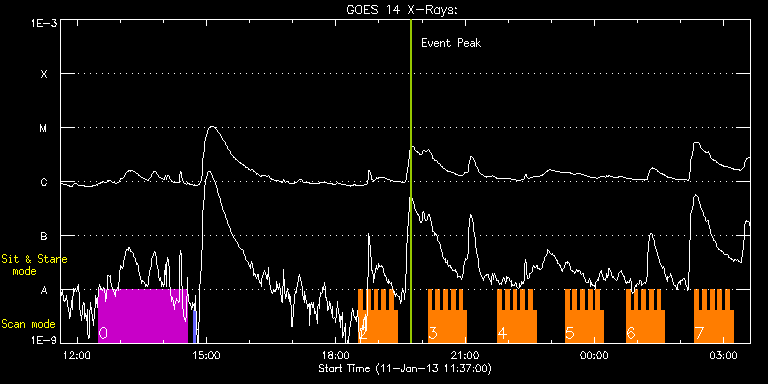 EIS Observation timeline overlay to GOES-Xray curve Code 1" 2" 40" 266" EIS Observations list for this event: STUDY ACRONYM ID DATE OBSERVED DESCRIPTION NOAA# TARGET 0 HPW021_VEL_240x512v1 | 31507 | 2013/01/11 12:30:26 | Active Region Studies | 1652 | Active Region TIMELINE ID DATE OBSERVED FITS FILE XCEN (+W/-E) YCEN (+N/-S) DUR ----------------------------------------------------------------------------------------------------------------- 31507 | 2013/01/11 12:30:26.000 | eis_l0_20130111_123026.fits.gz | -128.67 | 270.23 | 2h3m47s 1 PRY_slot_contextLITE | 31524 | 2013/01/11 14:42:33 | Active Region Studies | 1652 | Active Region TIMELINE ID DATE OBSERVED FITS FILE XCEN (+W/-E) YCEN (+N/-S) DUR ----------------------------------------------------------------------------------------------------------------- 31524 | 2013/01/11 14:42:33.000 | eis_l0_20130111_144233.fits.gz | -142.21 | 392.69 | 2m56s 2 HH_Flare+AR_180x152 | 31517 | 2013/01/11 18:32:03 | AR and Flare Observations | 1652 | Flare TIMELINE ID DATE OBSERVED FITS FILE XCEN (+W/-E) YCEN (+N/-S) DUR ----------------------------------------------------------------------------------------------------------------- 31517 | 2013/01/11 18:32:03.000 | eis_l0_20130111_183203.fits.gz | -95.77 | 393.15 | 5m17s 31517 | 2013/01/11 18:37:23.000 | eis_l0_20130111_183723.fits.gz | -95.00 | 393.08 | 5m19s 31517 | 2013/01/11 18:42:44.000 | eis_l0_20130111_184244.fits.gz | -94.30 | 393.23 | 5m18s 31517 | 2013/01/11 18:48:05.000 | eis_l0_20130111_184805.fits.gz | -93.45 | 393.15 | 5m18s 31517 | 2013/01/11 18:53:26.000 | eis_l0_20130111_185326.fits.gz | -92.60 | 393.08 | 5m18s 31517 | 2013/01/11 18:58:47.000 | eis_l0_20130111_185847.fits.gz | -91.83 | 393.23 | 5m17s 31517 | 2013/01/11 19:04:07.000 | eis_l0_20130111_190407.fits.gz | -91.13 | 393.23 | 5m19s 31517 | 2013/01/11 19:09:28.000 | eis_l0_20130111_190928.fits.gz | -90.28 | 393.23 | 5m18s 31517 | 2013/01/11 19:14:49.000 | eis_l0_20130111_191449.fits.gz | -89.51 | 393.31 | 5m17s 31517 | 2013/01/11 19:20:09.000 | eis_l0_20130111_192009.fits.gz | -88.74 | 393.23 | 5m18s 3 HH_Flare+AR_180x152 | 31518 | 2013/01/11 20:08:43 | AR and Flare Observations | 1652 | Flare TIMELINE ID DATE OBSERVED FITS FILE XCEN (+W/-E) YCEN (+N/-S) DUR ----------------------------------------------------------------------------------------------------------------- 31518 | 2013/01/11 20:08:43.000 | eis_l0_20130111_200843.fits.gz | -81.71 | 393.39 | 5m7s 31518 | 2013/01/11 20:14:03.000 | eis_l0_20130111_201403.fits.gz | -80.94 | 393.31 | 5m18s 31518 | 2013/01/11 20:19:24.000 | eis_l0_20130111_201924.fits.gz | -80.16 | 393.54 | 5m18s 31518 | 2013/01/11 20:24:45.000 | eis_l0_20130111_202445.fits.gz | -79.39 | 393.39 | 5m18s 31518 | 2013/01/11 20:30:06.000 | eis_l0_20130111_203006.fits.gz | -78.54 | 393.39 | 5m17s 31518 | 2013/01/11 20:35:26.000 | eis_l0_20130111_203526.fits.gz | -77.77 | 393.46 | 5m18s 31518 | 2013/01/11 20:40:47.000 | eis_l0_20130111_204047.fits.gz | -77.00 | 393.39 | 5m18s 31518 | 2013/01/11 20:46:08.000 | eis_l0_20130111_204608.fits.gz | -76.22 | 393.46 | 5m18s 31518 | 2013/01/11 20:51:29.000 | eis_l0_20130111_205129.fits.gz | -75.45 | 393.54 | 5m19s 31518 | 2013/01/11 20:56:50.000 | eis_l0_20130111_205650.fits.gz | -74.68 | 393.46 | 5m18s 4 HH_Flare+AR_180x152 | 31519 | 2013/01/11 21:45:13 | AR and Flare Observations | 1652 | Flare TIMELINE ID DATE OBSERVED FITS FILE XCEN (+W/-E) YCEN (+N/-S) DUR ----------------------------------------------------------------------------------------------------------------- 31519 | 2013/01/11 21:45:13.000 | eis_l0_20130111_214513.fits.gz | -67.57 | 393.54 | 5m18s 31519 | 2013/01/11 21:50:33.000 | eis_l0_20130111_215033.fits.gz | -66.88 | 393.62 | 5m18s 31519 | 2013/01/11 21:55:54.000 | eis_l0_20130111_215554.fits.gz | -65.95 | 393.54 | 5m18s 31519 | 2013/01/11 22:01:15.000 | eis_l0_20130111_220115.fits.gz | -65.25 | 393.54 | 5m18s 31519 | 2013/01/11 22:06:35.000 | eis_l0_20130111_220635.fits.gz | -64.40 | 393.54 | 5m19s 31519 | 2013/01/11 22:11:57.000 | eis_l0_20130111_221157.fits.gz | -63.71 | 393.70 | 5m17s 31519 | 2013/01/11 22:17:17.000 | eis_l0_20130111_221717.fits.gz | -62.86 | 393.62 | 5m18s 31519 | 2013/01/11 22:22:38.000 | eis_l0_20130111_222238.fits.gz | -62.24 | 393.54 | 5m19s 31519 | 2013/01/11 22:28:00.000 | eis_l0_20130111_222800.fits.gz | -61.32 | 393.70 | 5m17s 31519 | 2013/01/11 22:33:20.000 | eis_l0_20130111_223320.fits.gz | -60.47 | 393.62 | 5m18s 5 HH_Flare+AR_180x152 | 31520 | 2013/01/11 23:19:13 | AR and Flare Observations | 1652 | Flare TIMELINE ID DATE OBSERVED FITS FILE XCEN (+W/-E) YCEN (+N/-S) DUR ----------------------------------------------------------------------------------------------------------------- 31520 | 2013/01/11 23:19:13.000 | eis_l0_20130111_231913.fits.gz | -53.82 | 393.77 | 5m18s 31520 | 2013/01/11 23:24:33.000 | eis_l0_20130111_232433.fits.gz | -53.13 | 393.77 | 5m18s 31520 | 2013/01/11 23:29:54.000 | eis_l0_20130111_232954.fits.gz | -52.20 | 393.62 | 5m17s 31520 | 2013/01/11 23:35:14.000 | eis_l0_20130111_233514.fits.gz | -51.58 | 393.77 | 5m18s 31520 | 2013/01/11 23:40:35.000 | eis_l0_20130111_234035.fits.gz | -50.73 | 393.77 | 5m19s 31520 | 2013/01/11 23:45:57.000 | eis_l0_20130111_234557.fits.gz | -50.04 | 393.77 | 5m18s 31520 | 2013/01/11 23:51:17.000 | eis_l0_20130111_235117.fits.gz | -49.11 | 393.77 | 5m18s 31520 | 2013/01/11 23:56:38.000 | eis_l0_20130111_235638.fits.gz | -48.34 | 393.77 | 5m18s 31520 | 2013/01/12 00:01:59.000 | eis_l0_20130112_000159.fits.gz | -47.56 | 393.62 | 5m18s 31520 | 2013/01/12 00:07:20.000 | eis_l0_20130112_000720.fits.gz | -46.72 | 393.85 | 5m17s 6 HH_Flare+AR_180x152 | 31521 | 2013/01/12 00:44:13 | AR and Flare Observations | 1652 | Flare TIMELINE ID DATE OBSERVED FITS FILE XCEN (+W/-E) YCEN (+N/-S) DUR ----------------------------------------------------------------------------------------------------------------- 31521 | 2013/01/12 00:44:13.000 | eis_l0_20130112_004413.fits.gz | -41.46 