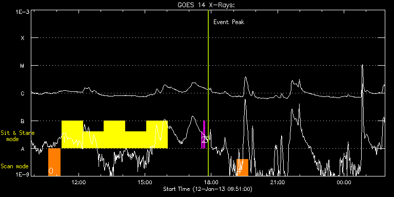 EIS Observation timeline overlay to GOES-Xray curve Code 1" 2" 40" 266" EIS Observations list for this event: STUDY ACRONYM ID DATE OBSERVED DESCRIPTION NOAA# TARGET 0 Atlas_30 | 31568 | 2013/01/12 10:38:20 | Spectral Atlas of flaring region. | | Quiet Sun TIMELINE ID DATE OBSERVED FITS FILE XCEN (+W/-E) YCEN (+N/-S) DUR ----------------------------------------------------------------------------------------------------------------- 31568 | 2013/01/12 10:38:20.000 | eis_l0_20130112_103820.fits.gz | -395.09 | 191.98 | 31m39s 1 Flare266_Hunter02 | 31569 | 2013/01/12 11:14:34 | Flare Trigger Observations | 1654 | Flare TIMELINE ID DATE OBSERVED FITS FILE XCEN (+W/-E) YCEN (+N/-S) DUR ----------------------------------------------------------------------------------------------------------------- 31569 | 2013/01/12 11:14:34.000 | eis_l0_20130112_111434.fits.gz | -603.62 | 186.13 | 56m53s 31569 | 2013/01/12 12:11:55.000 | eis_l0_20130112_121155.fits.gz | -595.82 | 186.75 | 56m53s 31569 | 2013/01/12 13:09:15.000 | eis_l0_20130112_130915.fits.gz | -587.78 | 186.90 | 56m53s 31569 | 2013/01/12 14:06:36.000 | eis_l0_20130112_140636.fits.gz | -579.98 | 187.44 | 56m53s 31569 | 2013/01/12 15:03:56.000 | eis_l0_20130112_150356.fits.gz | -571.95 | 187.75 | 56m53s 2 regcal071 | 31526 | 2013/01/12 17:32:42 | Dark exposures, CCD bottom rows (100s | | Engineering TIMELINE ID DATE OBSERVED FITS FILE XCEN (+W/-E) YCEN (+N/-S) DUR ----------------------------------------------------------------------------------------------------------------- 31526 | 2013/01/12 17:32:42.000 | eis_l0_20130112_173242.fits.gz | -404.02 | -116.24 | 3m22s 3 regcal072 | 31527 | 2013/01/12 17:39:02 | Dark exposures, top CCD rows (100s exp | | Engineering TIMELINE ID DATE OBSERVED FITS FILE XCEN (+W/-E) YCEN (+N/-S) DUR ----------------------------------------------------------------------------------------------------------------- 31527 | 2013/01/12 17:39:02.000 | eis_l0_20130112_173902.fits.gz | -403.09 | 394.83 | 3m22s 4 Atlas_30 | 31570 | 2013/01/12 19:08:20 | Spectral Atlas of flaring region. | 1654 | Quiet Sun TIMELINE ID DATE OBSERVED FITS FILE XCEN (+W/-E) YCEN (+N/-S) DUR ----------------------------------------------------------------------------------------------------------------- 31570 | 2013/01/12 19:08:20.000 | eis_l0_20130112_190820.fits.gz | -323.79 | 195.30 | 31m39s : Check study information : Download file : View thumbnails For this event, also check for: