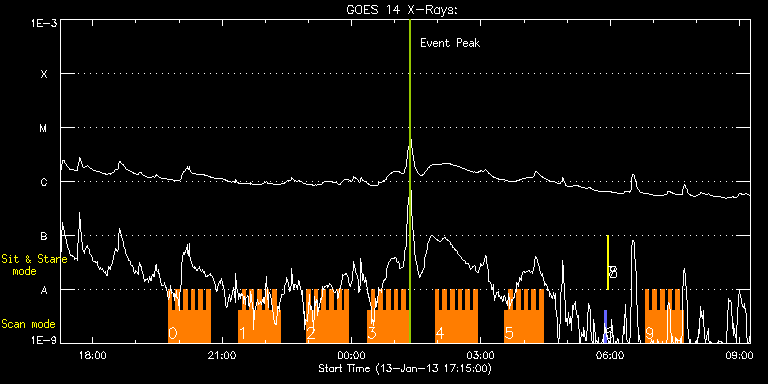 EIS Observation timeline overlay to GOES-Xray curve Code 1" 2" 40" 266" EIS Observations list for this event: STUDY ACRONYM ID DATE OBSERVED DESCRIPTION NOAA# TARGET 0 HH_Flare+AR_180x152 | 31549 | 2013/01/13 19:44:43 | Flare mode observations | 1654 | Flare TIMELINE ID DATE OBSERVED FITS FILE XCEN (+W/-E) YCEN (+N/-S) DUR ----------------------------------------------------------------------------------------------------------------- 31549 | 2013/01/13 19:44:43.000 | eis_l0_20130113_194443.fits.gz | -135.47 | 196.40 | 5m18s 31549 | 2013/01/13 19:50:04.000 | eis_l0_20130113_195004.fits.gz | -134.54 | 196.40 | 5m17s 31549 | 2013/01/13 19:55:24.000 | eis_l0_20130113_195524.fits.gz | -133.84 | 196.48 | 5m18s 31549 | 2013/01/13 20:00:45.000 | eis_l0_20130113_200045.fits.gz | -132.99 | 196.48 | 5m18s 31549 | 2013/01/13 20:06:06.000 | eis_l0_20130113_200606.fits.gz | -132.22 | 196.40 | 5m17s 31549 | 2013/01/13 20:11:26.000 | eis_l0_20130113_201126.fits.gz | -131.37 | 196.56 | 5m19s 31549 | 2013/01/13 20:16:48.000 | eis_l0_20130113_201648.fits.gz | -130.52 | 196.48 | 5m17s 31549 | 2013/01/13 20:22:08.000 | eis_l0_20130113_202208.fits.gz | -129.67 | 196.56 | 5m17s 31549 | 2013/01/13 20:27:28.000 | eis_l0_20130113_202728.fits.gz | -128.90 | 196.56 | 5m18s 31549 | 2013/01/13 20:32:49.000 | eis_l0_20130113_203249.fits.gz | -127.97 | 196.48 | 5m18s 31549 | 2013/01/13 20:38:09.000 | eis_l0_20130113_203809.fits.gz | -127.20 | 196.64 | 5m18s 1 HH_Flare+AR_180x152 | 31550 | 2013/01/13 21:22:13 | Flare mode observations | 1654 | Flare TIMELINE ID DATE OBSERVED FITS FILE XCEN (+W/-E) YCEN (+N/-S) DUR ----------------------------------------------------------------------------------------------------------------- 31550 | 2013/01/13 21:22:13.000 | eis_l0_20130113_212213.fits.gz | -120.48 | 196.79 | 5m17s 31550 | 2013/01/13 21:27:33.000 | eis_l0_20130113_212733.fits.gz | -119.63 | 196.71 | 5m17s 31550 | 2013/01/13 21:32:53.000 | eis_l0_20130113_213253.fits.gz | -118.78 | 196.79 | 5m18s 31550 | 2013/01/13 21:38:14.000 | eis_l0_20130113_213814.fits.gz | -118.01 | 196.87 | 5m18s 31550 | 2013/01/13 21:43:35.000 | eis_l0_20130113_214335.fits.gz | -117.16 | 196.71 | 5m18s 31550 | 2013/01/13 21:48:56.000 | eis_l0_20130113_214856.fits.gz | -116.31 | 196.87 | 5m19s 31550 | 2013/01/13 21:54:18.000 | eis_l0_20130113_215418.fits.gz | -115.46 | 196.95 | 5m18s 31550 | 2013/01/13 21:59:39.000 | eis_l0_20130113_215939.fits.gz | -114.69 | 196.87 | 5m17s 31550 | 2013/01/13 22:04:59.000 | eis_l0_20130113_220459.fits.gz | -113.91 | 196.95 | 5m17s 31550 | 2013/01/13 22:10:19.000 | eis_l0_20130113_221019.fits.gz | -113.07 | 196.87 | 5m17s 31550 | 2013/01/13 22:15:39.000 | eis_l0_20130113_221539.fits.gz | -112.29 | 197.02 | 5m19s 2 HH_Flare+AR_180x152 | 31551 | 2013/01/13 22:57:13 | Flare mode observations | 1654 | Flare TIMELINE ID DATE OBSERVED FITS FILE XCEN (+W/-E) YCEN (+N/-S) DUR ----------------------------------------------------------------------------------------------------------------- 31551 | 2013/01/13 22:57:13.000 | eis_l0_20130113_225713.fits.gz | -105.96 | 197.02 | 5m18s 31551 | 2013/01/13 23:02:34.000 | eis_l0_20130113_230234.fits.gz | -104.95 | 197.02 | 5m18s 31551 | 2013/01/13 23:07:55.000 | eis_l0_20130113_230755.fits.gz | -104.18 | 197.10 | 5m18s 31551 | 2013/01/13 23:13:16.000 | eis_l0_20130113_231316.fits.gz | -103.25 | 197.10 | 5m17s 31551 | 2013/01/13 23:18:36.000 | eis_l0_20130113_231836.fits.gz | -102.48 | 197.02 | 5m18s 31551 | 2013/01/13 23:23:57.000 | eis_l0_20130113_232357.fits.gz | -101.63 | 197.25 | 5m18s 31551 | 2013/01/13 23:29:18.000 | eis_l0_20130113_232918.fits.gz | -100.71 | 197.10 | 5m18s 31551 | 2013/01/13 23:34:39.000 | eis_l0_20130113_233439.fits.gz | -99.93 | 197.02 | 5m18s 31551 | 2013/01/13 23:40:00.000 | eis_l0_20130113_234000.fits.gz | -99.16 | 197.10 | 5m17s 31551 | 2013/01/13 23:45:20.000 | eis_l0_20130113_234520.fits.gz | -98.31 | 197.25 | 5m18s 31551 | 2013/01/13 23:50:41.000 | eis_l0_20130113_235041.fits.gz | -97.46 | 197.18 | 5m18s 3 HH_Flare+AR_180x152 | 31552 | 2013/01/14 00:21:43 | Flare mode observations | 1654 | Flare TIMELINE ID DATE OBSERVED FITS FILE XCEN (+W/-E) YCEN (+N/-S) DUR ----------------------------------------------------------------------------------------------------------------- 31552 | 2013/01/14 00:21:43.000 | eis_l0_20130114_002143.fits.gz | -92.67 | 197.33 | 5m18s 31552 | 2013/01/14 00:27:04.000 | eis_l0_20130114_002704.fits.gz | -91.74 | 197.25 | 5m18s 31552 | 2013/01/14 00:32:25.000 | eis_l0_20130114_003225.fits.gz | -91.05 | 197.49 | 5m17s 31552 | 2013/01/14 00:37:45.000 | eis_l0_20130114_003745.fits.gz | -90.12 | 197.41 | 5m18s 31552 | 2013/01/14 00:43:06.000 | eis_l0_20130114_004306.fits.gz | -89.43 | 197.41 | 5m18s 31552 | 2013/01/14 00:48:26.000 | eis_l0_20130114_004826.fits.gz | -88.58 | 197.41 | 5m18s 31552 | 2013/01/14 00:53:47.000 | eis_l0_20130114_005347.fits.gz | -87.73 | 197.49 | 5m18s 31552 | 2013/01/14 00:59:07.000 | eis_l0_20130114_005907.fits.gz | -86.80 | 197.41 | 5m19s 31552 | 2013/01/14 01:04:28.000 | eis_l0_20130114_010428.fits.gz | -86.03 | 197.41 | 5m18s 31552 | 2013/01/14 01:09:49.000 | eis_l0_20130114_010949.fits.gz | -85.18 | 197.56 | 5m18s 31552 | 2013/01/14 01:15:10.000 | eis_l0_20130114_011510.fits.gz | -84.41 | 197.33 | 5m18s 4 HH_Flare+AR_180x152 | 31553 | 2013/01/14 01:56:13 | Flare mode observations | 1654 | Flare TIMELINE ID DATE OBSERVED FITS FILE XCEN (+W/-E) YCEN (+N/-S) DUR ----------------------------------------------------------------------------------------------------------------- 31553 | 2013/01/14 01:56:13.000 | eis_l0_20130114_015613.fits.gz | -77.99 | 197.72 | 5m17s 31553 | 2013/01/14 02:01:33.000 | eis_l0_20130114_020133.fits.gz | -77.22 | 197.87 | 5m19s 31553 | 2013/01/14 02:06:55.000 | eis_l0_20130114_020655.fits.gz | -76.37 | 197.64 | 5m17s 31553 | 2013/01/14 02:12:15.000 | eis_l0_20130114_021215.fits.gz | -75.52 | 197.64 | 5m17s 31553 | 2013/01/14 02:17:35.000 | eis_l0_20130114_021735.fits.gz | -74.6