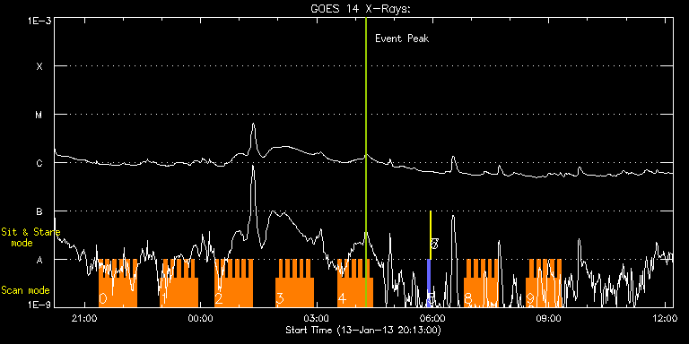 EIS Observation timeline overlay to GOES-Xray curve Code 1" 2" 40" 266" EIS Observations list for this event: STUDY ACRONYM ID DATE OBSERVED DESCRIPTION NOAA# TARGET 0 HH_Flare+AR_180x152 | 31550 | 2013/01/13 21:22:13 | Flare mode observations | 1654 | Flare TIMELINE ID DATE OBSERVED FITS FILE XCEN (+W/-E) YCEN (+N/-S) DUR ----------------------------------------------------------------------------------------------------------------- 31550 | 2013/01/13 21:22:13.000 | eis_l0_20130113_212213.fits.gz | -120.48 | 196.79 | 5m17s 31550 | 2013/01/13 21:27:33.000 | eis_l0_20130113_212733.fits.gz | -119.63 | 196.71 | 5m17s 31550 | 2013/01/13 21:32:53.000 | eis_l0_20130113_213253.fits.gz | -118.78 | 196.79 | 5m18s 31550 | 2013/01/13 21:38:14.000 | eis_l0_20130113_213814.fits.gz | -118.01 | 196.87 | 5m18s 31550 | 2013/01/13 21:43:35.000 | eis_l0_20130113_214335.fits.gz | -117.16 | 196.71 | 5m18s 31550 | 2013/01/13 21:48:56.000 | eis_l0_20130113_214856.fits.gz | -116.31 | 196.87 | 5m19s 31550 | 2013/01/13 21:54:18.000 | eis_l0_20130113_215418.fits.gz | -115.46 | 196.95 | 5m18s 31550 | 2013/01/13 21:59:39.000 | eis_l0_20130113_215939.fits.gz | -114.69 | 196.87 | 5m17s 31550 | 2013/01/13 22:04:59.000 | eis_l0_20130113_220459.fits.gz | -113.91 | 196.95 | 5m17s 31550 | 2013/01/13 22:10:19.000 | eis_l0_20130113_221019.fits.gz | -113.07 | 196.87 | 5m17s 31550 | 2013/01/13 22:15:39.000 | eis_l0_20130113_221539.fits.gz | -112.29 | 197.02 | 5m19s 1 HH_Flare+AR_180x152 | 31551 | 2013/01/13 22:57:13 | Flare mode observations | 1654 | Flare TIMELINE ID DATE OBSERVED FITS FILE XCEN (+W/-E) YCEN (+N/-S) DUR ----------------------------------------------------------------------------------------------------------------- 31551 | 2013/01/13 22:57:13.000 | eis_l0_20130113_225713.fits.gz | -105.96 | 197.02 | 5m18s 31551 | 2013/01/13 23:02:34.000 | eis_l0_20130113_230234.fits.gz | -104.95 | 197.02 | 5m18s 31551 | 2013/01/13 23:07:55.000 | eis_l0_20130113_230755.fits.gz | -104.18 | 197.10 | 5m18s 31551 | 2013/01/13 23:13:16.000 | eis_l0_20130113_231316.fits.gz | -103.25 | 197.10 | 5m17s 31551 | 2013/01/13 23:18:36.000 | eis_l0_20130113_231836.fits.gz | -102.48 | 197.02 | 5m18s 31551 | 2013/01/13 23:23:57.000 | eis_l0_20130113_232357.fits.gz | -101.63 | 197.25 | 5m18s 31551 | 2013/01/13 23:29:18.000 | eis_l0_20130113_232918.fits.gz | -100.71 | 197.10 | 5m18s 31551 | 2013/01/13 23:34:39.000 | eis_l0_20130113_233439.fits.gz | -99.93 | 197.02 | 5m18s 31551 | 2013/01/13 23:40:00.000 | eis_l0_20130113_234000.fits.gz | -99.16 | 197.10 | 5m17s 31551 | 2013/01/13 23:45:20.000 | eis_l0_20130113_234520.fits.gz | -98.31 | 197.25 | 5m18s 31551 | 2013/01/13 23:50:41.000 | eis_l0_20130113_235041.fits.gz | -97.46 | 197.18 | 5m18s 2 HH_Flare+AR_180x152 | 31552 | 2013/01/14 00:21:43 | Flare mode observations | 1654 | Flare TIMELINE ID DATE OBSERVED FITS FILE XCEN (+W/-E) YCEN (+N/-S) DUR ----------------------------------------------------------------------------------------------------------------- 31552 | 2013/01/14 00:21:43.000 | eis_l0_20130114_002143.fits.gz | -92.67 | 197.33 | 5m18s 31552 | 2013/01/14 00:27:04.000 | eis_l0_20130114_002704.fits.gz | -91.74 | 197.25 | 5m18s 31552 | 2013/01/14 00:32:25.000 | eis_l0_20130114_003225.fits.gz | -91.05 | 197.49 | 5m17s 31552 | 2013/01/14 00:37:45.000 | eis_l0_20130114_003745.fits.gz | -90.12 | 197.41 | 5m18s 31552 | 2013/01/14 00:43:06.000 | eis_l0_20130114_004306.fits.gz | -89.43 | 197.41 | 5m18s 31552 | 2013/01/14 00:48:26.000 | eis_l0_20130114_004826.fits.gz | -88.58 | 197.41 | 5m18s 31552 | 2013/01/14 00:53:47.000 | eis_l0_20130114_005347.fits.gz | -87.73 | 197.49 | 5m18s 31552 | 2013/01/14 00:59:07.000 | eis_l0_20130114_005907.fits.gz | -86.80 | 197.41 | 5m19s 31552 | 2013/01/14 01:04:28.000 | eis_l0_20130114_010428.fits.gz | -86.03 | 197.41 | 5m18s 31552 | 2013/01/14 01:09:49.000 | eis_l0_20130114_010949.fits.gz | -85.18 | 197.56 | 5m18s 31552 | 2013/01/14 01:15:10.000 | eis_l0_20130114_011510.fits.gz | -84.41 | 197.33 | 5m18s 3 HH_Flare+AR_180x152 | 31553 | 2013/01/14 01:56:13 | Flare mode observations | 1654 | Flare TIMELINE ID DATE OBSERVED FITS FILE XCEN (+W/-E) YCEN (+N/-S) DUR ----------------------------------------------------------------------------------------------------------------- 31553 | 2013/01/14 01:56:13.000 | eis_l0_20130114_015613.fits.gz | -77.99 | 197.72 | 5m17s 31553 | 2013/01/14 02:01:33.000 | eis_l0_20130114_020133.fits.gz | -77.22 | 197.87 | 5m19s 31553 | 2013/01/14 02:06:55.000 | eis_l0_20130114_020655.fits.gz | -76.37 | 197.64 | 5m17s 31553 | 2013/01/14 02:12:15.000 | eis_l0_20130114_021215.fits.gz | -75.52 | 197.64 | 5m17s 31553 | 2013/01/14 02:17:35.000 | eis_l0_20130114_021735.fits.gz | -74.60 | 197.64 | 5m18s 31553 | 2013/01/14 02:22:56.000 | eis_l0_20130114_022256.fits.gz | -73.90 | 197.56 | 5m17s 31553 | 2013/01/14 02:28:16.000 | eis_l0_20130114_022816.fits.gz | -72.97 | 197.64 | 5m18s 31553 | 2013/01/14 02:33:37.000 | eis_l0_20130114_023337.fits.gz | -72.20 | 197.64 | 5m19s 31553 | 2013/01/14 02:38:58.000 | eis_l0_20130114_023858.fits.gz | -71.43 | 197.79 | 5m18s 31553 | 2013/01/14 02:44:19.000 | eis_l0_20130114_024419.fits.gz | -70.42 | 197.64 | 5m18s 31553 | 2013/01/14 02:49:39.000 | eis_l0_20130114_024939.fits.gz | -69.65 | 197.79 | 5m18s 4 HH_Flare+AR_180x152 | 31554 | 2013/01/14 03:33:13 | Flare mode observations | 1654 | Flare TIMELINE ID DATE OBSERVED FITS FILE XCEN (+W/-E) YCEN (+N/-S) DUR ----------------------------------------------------------------------------------------------------------------- 31554 | 2013/01/14 03:33:13.000 | eis_l0_20130114_033313.fits.gz | -62.93 | 197.95 | 5m18s 31554 | 2013/01/14 03:38:34.000 | eis_l0_20130114_033834.fits.gz | -62.08 | 197.95 | 5m17s 31554 | 2013/01/14 03:43:54.000 | eis_l0_20130114_034354.fits.gz | -61.15 | 197.87 | 5m18s 31554 | 2013/01/14 03:49:15.000 | eis_l0_20130114_034915.fits.gz | -60.38 | 197.95 | 5m18s 31554 | 2013/01/14 03:54:36.000 | eis_l0_20130114_035436.fits.gz | -59.61 | 197.95 