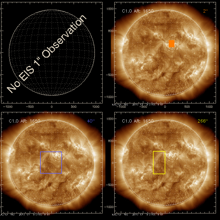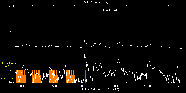 EIS Observation timeline overlay to GOES-Xray curve Code 1" 2" 40" 266" EIS Observations list for this event: STUDY ACRONYM ID DATE OBSERVED DESCRIPTION NOAA# TARGET 0 HH_Flare+AR_180x152 | 31563 | 2013/01/14 23:28:43 | Flare mode observations | 1654 | Flare TIMELINE ID DATE OBSERVED FITS FILE XCEN (+W/-E) YCEN (+N/-S) DUR ----------------------------------------------------------------------------------------------------------------- 31563 | 2013/01/14 23:28:43.000 | eis_l0_20130114_232843.fits.gz | 124.24 | 199.65 | 5m18s 31563 | 2013/01/14 23:34:04.000 | eis_l0_20130114_233404.fits.gz | 125.09 | 199.65 | 5m18s 31563 | 2013/01/14 23:39:25.000 | eis_l0_20130114_233925.fits.gz | 125.94 | 199.49 | 5m18s 31563 | 2013/01/14 23:44:46.000 | eis_l0_20130114_234446.fits.gz | 126.79 | 199.49 | 5m18s 31563 | 2013/01/14 23:50:06.000 | eis_l0_20130114_235006.fits.gz | 127.64 | 199.49 | 5m18s 31563 | 2013/01/14 23:55:27.000 | eis_l0_20130114_235527.fits.gz | 128.41 | 199.49 | 5m18s 31563 | 2013/01/15 00:00:48.000 | eis_l0_20130115_000048.fits.gz | 129.18 | 199.42 | 5m17s 31563 | 2013/01/15 00:06:08.000 | eis_l0_20130115_000608.fits.gz | 130.11 | 199.49 | 5m19s 31563 | 2013/01/15 00:11:29.000 | eis_l0_20130115_001129.fits.gz | 130.88 | 199.65 | 5m18s 31563 | 2013/01/15 00:16:50.000 | eis_l0_20130115_001650.fits.gz | 131.73 | 199.42 | 5m18s 1 HH_Flare+AR_180x152 | 31564 | 2013/01/15 00:56:42 | Flare mode observations | 1654 | Flare TIMELINE ID DATE OBSERVED FITS FILE XCEN (+W/-E) YCEN (+N/-S) DUR ----------------------------------------------------------------------------------------------------------------- 31564 | 2013/01/15 00:56:42.000 | eis_l0_20130115_005642.fits.gz | 137.99 | 199.65 | 5m18s 31564 | 2013/01/15 01:02:02.000 | eis_l0_20130115_010202.fits.gz | 138.84 | 199.57 | 5m19s 31564 | 2013/01/15 01:07:23.000 | eis_l0_20130115_010723.fits.gz | 139.61 | 199.65 | 5m19s 31564 | 2013/01/15 01:12:44.000 | eis_l0_20130115_011244.fits.gz | 140.46 | 199.65 | 5m19s 31564 | 2013/01/15 01:18:05.000 | eis_l0_20130115_011805.fits.gz | 141.31 | 199.57 | 5m19s 31564 | 2013/01/15 01:23:27.000 | eis_l0_20130115_012327.fits.gz | 142.24 | 199.57 | 5m17s 31564 | 2013/01/15 01:28:47.000 | eis_l0_20130115_012847.fits.gz | 142.93 | 199.57 | 5m17s 31564 | 2013/01/15 01:34:07.000 | eis_l0_20130115_013407.fits.gz | 143.78 | 199.49 | 5m18s 31564 | 2013/01/15 01:39:28.000 | eis_l0_20130115_013928.fits.gz | 144.63 | 199.57 | 5m18s 31564 | 2013/01/15 01:44:49.000 | eis_l0_20130115_014449.fits.gz | 145.56 | 199.65 | 5m17s 2 HH_Flare+AR_180x152 | 31565 | 2013/01/15 02:32:42 | Flare mode observations | 1654 | Flare TIMELINE ID DATE OBSERVED FITS FILE XCEN (+W/-E) YCEN (+N/-S) DUR ----------------------------------------------------------------------------------------------------------------- 31565 | 2013/01/15 02:32:42.000 | eis_l0_20130115_023242.fits.gz | 152.98 | 199.73 | 5m18s 31565 | 2013/01/15 02:38:03.000 | eis_l0_20130115_023803.fits.gz | 153.83 | 199.57 | 5m18s 31565 | 2013/01/15 02:43:24.000 | eis_l0_20130115_024324.fits.gz | 154.60 | 199.65 | 5m17s 31565 | 2013/01/15 02:48:44.000 | eis_l0_20130115_024844.fits.gz | 155.45 | 199.65 | 5m18s 31565 | 2013/01/15 02:54:05.000 | eis_l0_20130115_025405.fits.gz | 156.30 | 199.57 | 5m18s 31565 | 2013/01/15 02:59:26.000 | eis_l0_20130115_025926.fits.gz | 157.15 | 199.49 | 5m17s 31565 | 2013/01/15 03:04:46.000 | eis_l0_20130115_030446.fits.gz | 157.92 | 199.57 | 5m18s 31565 | 2013/01/15 03:10:06.000 | eis_l0_20130115_031006.fits.gz | 158.69 | 199.49 | 5m18s 31565 | 2013/01/15 03:15:27.000 | eis_l0_20130115_031527.fits.gz | 159.70 | 199.49 | 5m18s 31565 | 2013/01/15 03:20:48.000 | eis_l0_20130115_032048.fits.gz | 160.55 | 199.42 | 5m18s 3 HH_Flare+AR_180x152 | 31566 | 2013/01/15 04:10:12 | Flare mode observations | 1654 | Flare TIMELINE ID DATE OBSERVED FITS FILE XCEN (+W/-E) YCEN (+N/-S) DUR ----------------------------------------------------------------------------------------------------------------- 31566 | 2013/01/15 04:10:12.000 | eis_l0_20130115_041012.fits.gz | 168.19 | 199.65 | 5m18s 31566 | 2013/01/15 04:15:32.000 | eis_l0_20130115_041532.fits.gz | 169.04 | 199.49 | 5m19s 31566 | 2013/01/15 04:20:54.000 | eis_l0_20130115_042054.fits.gz | 169.82 | 199.57 | 5m18s 31566 | 2013/01/15 04:26:15.000 | eis_l0_20130115_042615.fits.gz | 170.67 | 199.57 | 5m17s 31566 | 2013/01/15 04:31:35.000 | eis_l0_20130115_043135.fits.gz | 171.52 | 199.49 | 5m19s 31566 | 2013/01/15 04:36:57.000 | eis_l0_20130115_043657.fits.gz | 172.37 | 199.57 | 5m18s 31566 | 2013/01/15 04:42:17.000 | eis_l0_20130115_044217.fits.gz | 173.14 | 199.34 | 5m18s 31566 | 2013/01/15 04:47:38.000 | eis_l0_20130115_044738.fits.gz | 173.99 | 199.34 | 5m18s 31566 | 2013/01/15 04:52:59.000 | eis_l0_20130115_045259.fits.gz | 174.84 | 199.49 | 5m18s 31566 | 2013/01/15 04:58:20.000 | eis_l0_20130115_045820.fits.gz | 175.61 | 199.49 | 5m18s 4 PRY_slot_contextLITE | 31534 | 2013/01/15 06:02:19 | Change of EIS pointing and alignment w | 1654 | Active Region TIMELINE ID DATE OBSERVED FITS FILE XCEN (+W/-E) YCEN (+N/-S) DUR ----------------------------------------------------------------------------------------------------------------- 31534 | 2013/01/15 06:02:19.000 | eis_l0_20130115_060219.fits.gz | -15.37 | -0.58 | 2m56s 5 Alignment_266 | 31535 | 2013/01/15 06:05:34 | Change of EIS pointing and alignment w | | Quiet Sun TIMELINE ID DATE OBSERVED FITS FILE XCEN (+W/-E) YCEN (+N/-S) DUR ----------------------------------------------------------------------------------------------------------------- 31535 | 2013/01/15 06:05:34.000 | eis_l0_20130115_060534.fits.gz | -132.64 | -0.42 | 1m22s 6 XRT_synop_AIA | 31536 | 2013/01/15 06:08:08 | Change of EIS pointing and alignment w | | Quiet Sun TIMELINE ID DATE OBSERVED FITS FILE XCEN (+W/-E) YCEN (+N/-S) DUR ----------------------------------------------------------------------------------------------------------------- 31536 | 2013/01/15 06:08:08.000 | eis_l0_20130115_060808.fits.