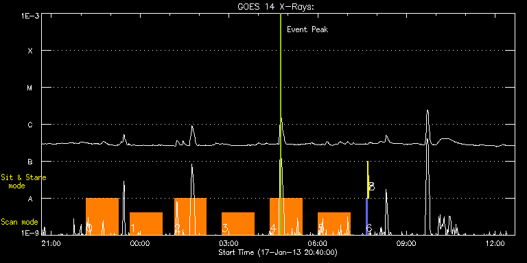 EIS Observation timeline overlay to GOES-Xray curve Code 1" 2" 40" 266" EIS Observations list for this event: STUDY ACRONYM ID DATE OBSERVED DESCRIPTION NOAA# TARGET 0 DHB_006 | 31604 | 2013/01/17 22:10:44 | Full Sun Abundance Map - 12/15 (bottom | | Active Region TIMELINE ID DATE OBSERVED FITS FILE XCEN (+W/-E) YCEN (+N/-S) DUR ----------------------------------------------------------------------------------------------------------------- 31604 | 2013/01/17 22:10:44.000 | eis_l0_20130117_221044.fits.gz | 409.89 | -1133.44 | 1h5m20s 1 DHB_006 | 31605 | 2013/01/17 23:39:14 | Full Sun Abundance Map - 13/15 (top) | | Active Region TIMELINE ID DATE OBSERVED FITS FILE XCEN (+W/-E) YCEN (+N/-S) DUR ----------------------------------------------------------------------------------------------------------------- 31605 | 2013/01/17 23:39:14.000 | eis_l0_20130117_233914.fits.gz | -1.05 | -755.45 | 1h5m25s 2 DHB_006 | 31606 | 2013/01/18 01:09:13 | Full Sun Abundance Map - 13/15 (bottom | | Active Region TIMELINE ID DATE OBSERVED FITS FILE XCEN (+W/-E) YCEN (+N/-S) DUR ----------------------------------------------------------------------------------------------------------------- 31606 | 2013/01/18 01:09:13.000 | eis_l0_20130118_010913.fits.gz | -0.97 | -1227.45 | 1h5m22s 3 DHB_006 | 31607 | 2013/01/18 02:45:44 | Full Sun Abundance Map - 14/15 (top) | | Active Region TIMELINE ID DATE OBSERVED FITS FILE XCEN (+W/-E) YCEN (+N/-S) DUR ----------------------------------------------------------------------------------------------------------------- 31607 | 2013/01/18 02:45:44.000 | eis_l0_20130118_024544.fits.gz | -412.16 | -661.52 | 1h5m25s 4 DHB_006 | 31608 | 2013/01/18 04:23:13 | Full Sun Abundance Map - 14/15 (bottom | | Active Region TIMELINE ID DATE OBSERVED FITS FILE XCEN (+W/-E) YCEN (+N/-S) DUR ----------------------------------------------------------------------------------------------------------------- 31608 | 2013/01/18 04:23:13.000 | eis_l0_20130118_042313.fits.gz | -412.01 | -1133.44 | 1h5m22s 5 DHB_006 | 31609 | 2013/01/18 06:00:44 | Full Sun Abundance Map - 15/15 (bottom | | Active Region TIMELINE ID DATE OBSERVED FITS FILE XCEN (+W/-E) YCEN (+N/-S) DUR ----------------------------------------------------------------------------------------------------------------- 31609 | 2013/01/18 06:00:44.000 | eis_l0_20130118_060044.fits.gz | -816.01 | -757.25 | 1h5m20s 6 PRY_slot_contextLITE | 31610 | 2013/01/18 07:37:50 | Change of EIS pointing and alignment w | 1658 | Active Region TIMELINE ID DATE OBSERVED FITS FILE XCEN (+W/-E) YCEN (+N/-S) DUR ----------------------------------------------------------------------------------------------------------------- 31610 | 2013/01/18 07:37:50.000 | eis_l0_20130118_073750.fits.gz | -15.29 | -0.27 | 2m56s 7 Alignment_266 | 31611 | 2013/01/18 07:41:05 | Change of EIS pointing and alignment w | 1658 | Quiet Sun TIMELINE ID DATE OBSERVED FITS FILE XCEN (+W/-E) YCEN (+N/-S) DUR ----------------------------------------------------------------------------------------------------------------- 31611 | 2013/01/18 07:41:05.000 | eis_l0_20130118_074105.fits.gz | -132.57 | -0.27 | 1m22s 8 XRT_synop_AIA | 31612 | 2013/01/18 07:43:12 | Change of EIS pointing and alignment w | 1658 | Quiet Sun TIMELINE ID DATE OBSERVED FITS FILE XCEN (+W/-E) YCEN (+N/-S) DUR ----------------------------------------------------------------------------------------------------------------- 31612 | 2013/01/18 07:43:12.000 | eis_l0_20130118_074312.fits.gz | -132.57 | -0.35 | 10s : Check study information : Download file : View thumbnails For this event, also check for: