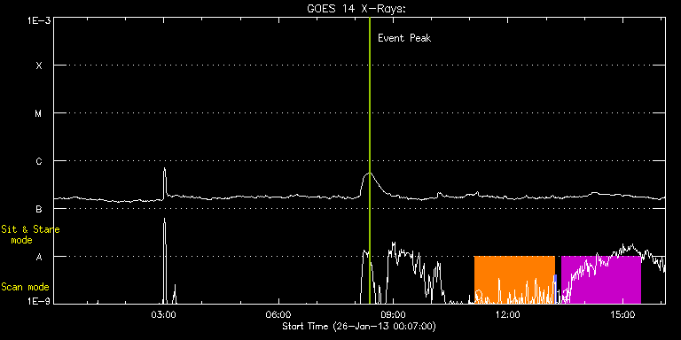 EIS Observation timeline overlay to GOES-Xray curve Code 1" 2" 40" 266" EIS Observations list for this event: STUDY ACRONYM ID DATE OBSERVED DESCRIPTION NOAA# TARGET 0 cam_ar_limb_lite_v2 | 31735 | 2013/01/26 11:07:12 | AR Temperatyre Diagnostic | 1660 | Active Region TIMELINE ID DATE OBSERVED FITS FILE XCEN (+W/-E) YCEN (+N/-S) DUR ----------------------------------------------------------------------------------------------------------------- 31735 | 2013/01/26 11:07:12.000 | eis_l0_20130126_110712.fits.gz | 915.62 | 212.63 | 2h6m1s 1 PRY_slot_contextLITE | 31736 | 2013/01/26 13:13:24 | AR Temperature Diagnostic | 1660 | Active Region TIMELINE ID DATE OBSERVED FITS FILE XCEN (+W/-E) YCEN (+N/-S) DUR ----------------------------------------------------------------------------------------------------------------- 31736 | 2013/01/26 13:13:24.000 | eis_l0_20130126_131324.fits.gz | 900.64 | 212.63 | 2m57s 2 HPW021_VEL_240x512v1 | 31770 | 2013/01/26 13:24:20 | AR study | 1660 | Active Region TIMELINE ID DATE OBSERVED FITS FILE XCEN (+W/-E) YCEN (+N/-S) DUR ----------------------------------------------------------------------------------------------------------------- 31770 | 2013/01/26 13:24:20.000 | eis_l0_20130126_132420.fits.gz | 915.61 | 212.70 | 2h3m48s : Check study information : Download file : View thumbnails For this event, also check for: