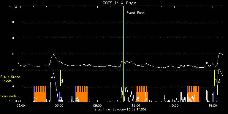 EIS Observation timeline overlay to GOES-Xray curve Code 1" 2" 40" 266" EIS Observations list for this event: STUDY ACRONYM ID DATE OBSERVED DESCRIPTION NOAA# TARGET 0 PRY_slot_contextLITE | 31761 | 2013/01/28 04:01:19 | AR study | 1661 | Active Region TIMELINE ID DATE OBSERVED FITS FILE XCEN (+W/-E) YCEN (+N/-S) DUR ----------------------------------------------------------------------------------------------------------------- 31761 | 2013/01/28 04:01:19.000 | eis_l0_20130128_040119.fits.gz | 96.72 | 294.35 | 2m57s 1 HH_Flare+AR_180x152 | 31762 | 2013/01/28 04:04:41 | AR study | 1661 | Flare TIMELINE ID DATE OBSERVED FITS FILE XCEN (+W/-E) YCEN (+N/-S) DUR ----------------------------------------------------------------------------------------------------------------- 31762 | 2013/01/28 04:04:41.000 | eis_l0_20130128_040441.fits.gz | 110.25 | 294.28 | 5m18s 31762 | 2013/01/28 04:10:01.000 | eis_l0_20130128_041001.fits.gz | 111.10 | 294.20 | 5m19s 31762 | 2013/01/28 04:15:22.000 | eis_l0_20130128_041522.fits.gz | 111.80 | 294.20 | 5m19s 31762 | 2013/01/28 04:20:43.000 | eis_l0_20130128_042043.fits.gz | 112.72 | 294.28 | 5m19s 31762 | 2013/01/28 04:26:05.000 | eis_l0_20130128_042605.fits.gz | 113.50 | 293.97 | 5m18s 31762 | 2013/01/28 04:31:26.000 | eis_l0_20130128_043126.fits.gz | 114.27 | 294.20 | 5m18s 31762 | 2013/01/28 04:36:47.000 | eis_l0_20130128_043647.fits.gz | 115.12 | 294.12 | 5m18s 31762 | 2013/01/28 04:42:08.000 | eis_l0_20130128_044208.fits.gz | 115.97 | 293.89 | 5m18s 31762 | 2013/01/28 04:47:28.000 | eis_l0_20130128_044728.fits.gz | 116.74 | 294.12 | 5m19s 31762 | 2013/01/28 04:52:49.000 | eis_l0_20130128_045249.fits.gz | 117.59 | 294.12 | 5m18s 2 PRY_slot_contextLITE | 31767 | 2013/01/28 06:02:19 | Change of EIS pointing and alignment w | | Active Region TIMELINE ID DATE OBSERVED FITS FILE XCEN (+W/-E) YCEN (+N/-S) DUR ----------------------------------------------------------------------------------------------------------------- 31767 | 2013/01/28 06:02:19.000 | eis_l0_20130128_060219.fits.gz | -15.29 | -0.58 | 2m56s 3 Alignment_266 | 31768 | 2013/01/28 06:05:33 | Change of EIS pointing and alignment w | | Quiet Sun TIMELINE ID DATE OBSERVED FITS FILE XCEN (+W/-E) YCEN (+N/-S) DUR ----------------------------------------------------------------------------------------------------------------- 31768 | 2013/01/28 06:05:33.000 | eis_l0_20130128_060533.fits.gz | -132.49 | -0.50 | 1m22s 4 XRT_synop_AIA | 31769 | 2013/01/28 06:07:41 | Change of EIS pointing and alignment w | | Quiet Sun TIMELINE ID DATE OBSERVED FITS FILE XCEN (+W/-E) YCEN (+N/-S) DUR ----------------------------------------------------------------------------------------------------------------- 31769 | 2013/01/28 06:07:41.000 | eis_l0_20130128_060741.fits.gz | -132.57 | -0.50 | 10s 5 PRY_slot_contextLITE | 31745 | 2013/01/28 07:16:26 | AR study | 1661 | Active Region TIMELINE ID DATE OBSERVED FITS FILE XCEN (+W/-E) YCEN (+N/-S) DUR ----------------------------------------------------------------------------------------------------------------- 31745 | 2013/01/28 07:16:26.000 | eis_l0_20130128_071626.fits.gz | 126.46 | 293.97 | 2m56s 6 HH_Flare+AR_180x152 | 31746 | 2013/01/28 07:19:47 | AR study | 1661 | Flare TIMELINE ID DATE OBSERVED FITS FILE XCEN (+W/-E) YCEN (+N/-S) DUR ----------------------------------------------------------------------------------------------------------------- 31746 | 2013/01/28 07:19:47.000 | eis_l0_20130128_071947.fits.gz | 139.91 | 293.97 | 5m18s 31746 | 2013/01/28 07:25:08.000 | eis_l0_20130128_072508.fits.gz | 140.76 | 293.74 | 5m17s 31746 | 2013/01/28 07:30:28.000 | eis_l0_20130128_073028.fits.gz | 141.61 | 293.97 | 5m18s 31746 | 2013/01/28 07:35:49.000 | eis_l0_20130128_073549.fits.gz | 142.39 | 293.89 | 5m18s 31746 | 2013/01/28 07:41:10.000 | eis_l0_20130128_074110.fits.gz | 143.16 | 293.89 | 5m19s 31746 | 2013/01/28 07:46:31.000 | eis_l0_20130128_074631.fits.gz | 144.09 | 293.81 | 5m18s 31746 | 2013/01/28 07:51:51.000 | eis_l0_20130128_075151.fits.gz | 144.86 | 293.74 | 5m18s 31746 | 2013/01/28 07:57:12.000 | eis_l0_20130128_075712.fits.gz | 145.71 | 293.81 | 5m18s 31746 | 2013/01/28 08:02:33.000 | eis_l0_20130128_080233.fits.gz | 146.40 | 293.74 | 5m18s 31746 | 2013/01/28 08:07:54.000 | eis_l0_20130128_080754.fits.gz | 147.33 | 293.74 | 5m17s 7 PRY_slot_contextLITE | 31771 | 2013/01/28 12:00:19 | AR study | 1661 | Active Region TIMELINE ID DATE OBSERVED FITS FILE XCEN (+W/-E) YCEN (+N/-S) DUR ----------------------------------------------------------------------------------------------------------------- 31771 | 2013/01/28 12:00:19.000 | eis_l0_20130128_120019.fits.gz | 169.49 | 293.43 | 2m56s 8 HH_Flare+AR_180x152 | 31772 | 2013/01/28 12:03:40 | AR study | 1661 | Flare TIMELINE ID DATE OBSERVED FITS FILE XCEN (+W/-E) YCEN (+N/-S) DUR ----------------------------------------------------------------------------------------------------------------- 31772 | 2013/01/28 12:03:40.000 | eis_l0_20130128_120340.fits.gz | 182.94 | 293.35 | 5m18s 31772 | 2013/01/28 12:09:01.000 | eis_l0_20130128_120901.fits.gz | 183.79 | 293.43 | 5m18s 31772 | 2013/01/28 12:14:21.000 | eis_l0_20130128_121421.fits.gz | 184.49 | 293.50 | 5m18s 31772 | 2013/01/28 12:19:42.000 | eis_l0_20130128_121942.fits.gz | 185.34 | 293.50 | 5m18s 31772 | 2013/01/28 12:25:03.000 | eis_l0_20130128_122503.fits.gz | 186.19 | 293.43 | 5m17s 31772 | 2013/01/28 12:30:23.000 | eis_l0_20130128_123023.fits.gz | 187.04 | 293.35 | 5m19s 31772 | 2013/01/28 12:35:44.000 | eis_l0_20130128_123544.fits.gz | 187.89 | 293.43 | 5m18s 31772 | 2013/01/28 12:41:05.000 | eis_l0_20130128_124105.fits.gz | 188.66 | 293.20 | 5m17s 31772 | 2013/01/28 12:46:25.000 | eis_l0_20130128_124625.fits.gz | 189.43 | 293.35 | 5m18s 31772 | 2013/01/28 12:51:45.000 | eis_l0_20130128_125145.fits.gz | 190.36 | 293.20 | 5m18s 9 PRY_slot_contextLITE | 31755 | 2013/01/28 15:58:49 | AR study | 1661 | Active Region TIMELINE ID DATE OBSERVED FITS FILE XCEN (+W/-