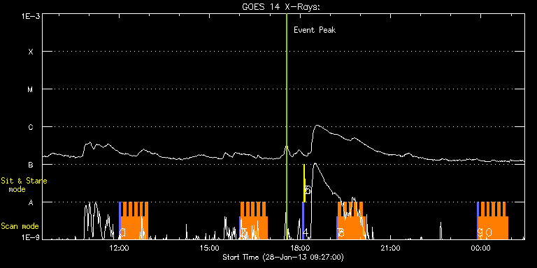 EIS Observation timeline overlay to GOES-Xray curve Code 1" 2" 40" 266" EIS Observations list for this event: STUDY ACRONYM ID DATE OBSERVED DESCRIPTION NOAA# TARGET 0 PRY_slot_contextLITE | 31771 | 2013/01/28 12:00:19 | AR study | 1661 | Active Region TIMELINE ID DATE OBSERVED FITS FILE XCEN (+W/-E) YCEN (+N/-S) DUR ----------------------------------------------------------------------------------------------------------------- 31771 | 2013/01/28 12:00:19.000 | eis_l0_20130128_120019.fits.gz | 169.49 | 293.43 | 2m56s 1 HH_Flare+AR_180x152 | 31772 | 2013/01/28 12:03:40 | AR study | 1661 | Flare TIMELINE ID DATE OBSERVED FITS FILE XCEN (+W/-E) YCEN (+N/-S) DUR ----------------------------------------------------------------------------------------------------------------- 31772 | 2013/01/28 12:03:40.000 | eis_l0_20130128_120340.fits.gz | 182.94 | 293.35 | 5m18s 31772 | 2013/01/28 12:09:01.000 | eis_l0_20130128_120901.fits.gz | 183.79 | 293.43 | 5m18s 31772 | 2013/01/28 12:14:21.000 | eis_l0_20130128_121421.fits.gz | 184.49 | 293.50 | 5m18s 31772 | 2013/01/28 12:19:42.000 | eis_l0_20130128_121942.fits.gz | 185.34 | 293.50 | 5m18s 31772 | 2013/01/28 12:25:03.000 | eis_l0_20130128_122503.fits.gz | 186.19 | 293.43 | 5m17s 31772 | 2013/01/28 12:30:23.000 | eis_l0_20130128_123023.fits.gz | 187.04 | 293.35 | 5m19s 31772 | 2013/01/28 12:35:44.000 | eis_l0_20130128_123544.fits.gz | 187.89 | 293.43 | 5m18s 31772 | 2013/01/28 12:41:05.000 | eis_l0_20130128_124105.fits.gz | 188.66 | 293.20 | 5m17s 31772 | 2013/01/28 12:46:25.000 | eis_l0_20130128_124625.fits.gz | 189.43 | 293.35 | 5m18s 31772 | 2013/01/28 12:51:45.000 | eis_l0_20130128_125145.fits.gz | 190.36 | 293.20 | 5m18s 2 PRY_slot_contextLITE | 31755 | 2013/01/28 15:58:49 | AR study | 1661 | Active Region TIMELINE ID DATE OBSERVED FITS FILE XCEN (+W/-E) YCEN (+N/-S) DUR ----------------------------------------------------------------------------------------------------------------- 31755 | 2013/01/28 15:58:49.000 | eis_l0_20130128_155849.fits.gz | 205.33 | 292.73 | 2m56s 3 HH_Flare+AR_180x152 | 31756 | 2013/01/28 16:02:10 | AR study | | Flare TIMELINE ID DATE OBSERVED FITS FILE XCEN (+W/-E) YCEN (+N/-S) DUR ----------------------------------------------------------------------------------------------------------------- 31756 | 2013/01/28 16:02:10.000 | eis_l0_20130128_160210.fits.gz | 218.86 | 292.73 | 5m17s 31756 | 2013/01/28 16:07:30.000 | eis_l0_20130128_160730.fits.gz | 219.63 | 292.73 | 5m19s 31756 | 2013/01/28 16:12:51.000 | eis_l0_20130128_161251.fits.gz | 220.41 | 292.73 | 5m18s 31756 | 2013/01/28 16:18:12.000 | eis_l0_20130128_161812.fits.gz | 221.26 | 292.65 | 5m17s 31756 | 2013/01/28 16:23:32.000 | eis_l0_20130128_162332.fits.gz | 222.03 | 292.65 | 5m18s 31756 | 2013/01/28 16:28:53.000 | eis_l0_20130128_162853.fits.gz | 222.80 | 292.65 | 5m18s 31756 | 2013/01/28 16:34:14.000 | eis_l0_20130128_163414.fits.gz | 223.57 | 292.73 | 5m18s 31756 | 2013/01/28 16:39:35.000 | eis_l0_20130128_163935.fits.gz | 224.42 | 292.58 | 5m18s 31756 | 2013/01/28 16:44:56.000 | eis_l0_20130128_164456.fits.gz | 225.20 | 292.50 | 5m18s 31756 | 2013/01/28 16:50:17.000 | eis_l0_20130128_165017.fits.gz | 225.97 | 292.65 | 5m19s 4 PRY_slot_contextLITE | 31729 | 2013/01/28 18:04:19 | Change of EIS pointing and alignment w | | Active Region TIMELINE ID DATE OBSERVED FITS FILE XCEN (+W/-E) YCEN (+N/-S) DUR ----------------------------------------------------------------------------------------------------------------- 31729 | 2013/01/28 18:04:19.000 | eis_l0_20130128_180419.fits.gz | -15.29 | -0.50 | 2m56s 5 Alignment_266 | 31730 | 2013/01/28 18:07:34 | Change of EIS pointing and alignment w | | Quiet Sun TIMELINE ID DATE OBSERVED FITS FILE XCEN (+W/-E) YCEN (+N/-S) DUR ----------------------------------------------------------------------------------------------------------------- 31730 | 2013/01/28 18:07:34.000 | eis_l0_20130128_180734.fits.gz | -132.57 | -0.42 | 1m22s 6 XRT_synop_AIA | 31731 | 2013/01/28 18:09:41 | Change of EIS pointing and alignment w | | Quiet Sun TIMELINE ID DATE OBSERVED FITS FILE XCEN (+W/-E) YCEN (+N/-S) DUR ----------------------------------------------------------------------------------------------------------------- 31731 | 2013/01/28 18:09:41.000 | eis_l0_20130128_180941.fits.gz | -132.49 | -0.50 | 10s 7 PRY_slot_contextLITE | 31747 | 2013/01/28 19:12:25 | AR study | 1661 | Active Region TIMELINE ID DATE OBSERVED FITS FILE XCEN (+W/-E) YCEN (+N/-S) DUR ----------------------------------------------------------------------------------------------------------------- 31747 | 2013/01/28 19:12:25.000 | eis_l0_20130128_191225.fits.gz | 234.22 | 292.19 | 2m57s 8 HH_Flare+AR_180x152 | 31748 | 2013/01/28 19:15:47 | AR study | 1661 | Flare TIMELINE ID DATE OBSERVED FITS FILE XCEN (+W/-E) YCEN (+N/-S) DUR ----------------------------------------------------------------------------------------------------------------- 31748 | 2013/01/28 19:15:47.000 | eis_l0_20130128_191547.fits.gz | 247.60 | 292.19 | 5m18s 31748 | 2013/01/28 19:21:08.000 | eis_l0_20130128_192108.fits.gz | 248.52 | 292.11 | 5m18s 31748 | 2013/01/28 19:26:28.000 | eis_l0_20130128_192628.fits.gz | 249.22 | 292.19 | 5m19s 31748 | 2013/01/28 19:31:50.000 | eis_l0_20130128_193150.fits.gz | 250.07 | 292.04 | 5m18s 31748 | 2013/01/28 19:37:11.000 | eis_l0_20130128_193711.fits.gz | 250.84 | 292.19 | 5m18s 31748 | 2013/01/28 19:42:31.000 | eis_l0_20130128_194231.fits.gz | 251.62 | 292.04 | 5m18s 31748 | 2013/01/28 19:47:52.000 | eis_l0_20130128_194752.fits.gz | 252.46 | 291.96 | 5m17s 31748 | 2013/01/28 19:53:12.000 | eis_l0_20130128_195312.fits.gz | 253.24 | 291.96 | 5m17s 31748 | 2013/01/28 19:58:32.000 | eis_l0_20130128_195832.fits.gz | 254.01 | 291.96 | 5m18s 31748 | 2013/01/28 20:03:53.000 | eis_l0_20130128_200353.fits.gz | 254.86 | 291.88 | 5m18s 9 PRY_slot_contextLITE | 31757 | 2013/01/28 23:51:49 | AR study | 1661 | Active Region TIMELINE ID DATE OBSERVED FITS FILE XCEN (+W/-E) Y
