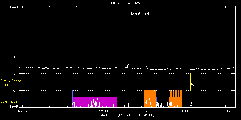 EIS Observation timeline overlay to GOES-Xray curve Code 1" 2" 40" 266" EIS Observations list for this event: STUDY ACRONYM ID DATE OBSERVED DESCRIPTION NOAA# TARGET 0 PRY_slot_contextLITE | 31813 | 2013/02/01 09:40:56 | Context synop006 | | Active Region TIMELINE ID DATE OBSERVED FITS FILE XCEN (+W/-E) YCEN (+N/-S) DUR ----------------------------------------------------------------------------------------------------------------- 31813 | 2013/02/01 09:40:56.000 | eis_l0_20130201_094056.fits.gz | -38.39 | -0.50 | 2m57s 1 SYNOP006 | 31814 | 2013/02/01 09:44:04 | Synop006 | | Quiet Sun TIMELINE ID DATE OBSERVED FITS FILE XCEN (+W/-E) YCEN (+N/-S) DUR ----------------------------------------------------------------------------------------------------------------- 31814 | 2013/02/01 09:44:04.000 | eis_l0_20130201_094404.fits.gz | -22.70 | -0.42 | 3h15m36s 2 YKK_ARabund01 | 31821 | 2013/02/01 15:01:26 | Dark Filament Study at SE | | Active Region TIMELINE ID DATE OBSERVED FITS FILE XCEN (+W/-E) YCEN (+N/-S) DUR ----------------------------------------------------------------------------------------------------------------- 31821 | 2013/02/01 15:01:26.000 | eis_l0_20130201_150126.fits.gz | 62.78 | -152.98 | 50m33s 3 PRY_slot_contextLITE | 31822 | 2013/02/01 15:52:10 | Dark Filament Study at SE | | Active Region TIMELINE ID DATE OBSERVED FITS FILE XCEN (+W/-E) YCEN (+N/-S) DUR ----------------------------------------------------------------------------------------------------------------- 31822 | 2013/02/01 15:52:10.000 | eis_l0_20130201_155210.fits.gz | -9.88 | -113.98 | 2m56s 4 PRY_slot_contextLITE | 31823 | 2013/02/01 16:48:40 | AR Obs | 1665 | Active Region TIMELINE ID DATE OBSERVED FITS FILE XCEN (+W/-E) YCEN (+N/-S) DUR ----------------------------------------------------------------------------------------------------------------- 31823 | 2013/02/01 16:48:40.000 | eis_l0_20130201_164840.fits.gz | -476.30 | 253.41 | 2m56s 5 HH_Flare+AR_180x152 | 31824 | 2013/02/01 16:52:01 | AR Obs | 1665 | Flare TIMELINE ID DATE OBSERVED FITS FILE XCEN (+W/-E) YCEN (+N/-S) DUR ----------------------------------------------------------------------------------------------------------------- 31824 | 2013/02/01 16:52:01.000 | eis_l0_20130201_165201.fits.gz | -462.69 | 253.26 | 5m18s 31824 | 2013/02/01 16:57:22.000 | eis_l0_20130201_165722.fits.gz | -462.15 | 253.41 | 5m18s 31824 | 2013/02/01 17:02:43.000 | eis_l0_20130201_170243.fits.gz | -461.30 | 253.34 | 5m17s 31824 | 2013/02/01 17:08:03.000 | eis_l0_20130201_170803.fits.gz | -460.68 | 253.49 | 5m18s 31824 | 2013/02/01 17:13:24.000 | eis_l0_20130201_171324.fits.gz | -459.99 | 253.49 | 5m17s 31824 | 2013/02/01 17:18:44.000 | eis_l0_20130201_171844.fits.gz | -459.22 | 253.65 | 5m18s 31824 | 2013/02/01 17:24:05.000 | eis_l0_20130201_172405.fits.gz | -458.52 | 253.49 | 5m17s 31824 | 2013/02/01 17:29:25.000 | eis_l0_20130201_172925.fits.gz | -457.67 | 253.65 | 5m18s 31824 | 2013/02/01 17:34:46.000 | eis_l0_20130201_173446.fits.gz | -456.98 | 253.49 | 5m18s 31824 | 2013/02/01 17:40:07.000 | eis_l0_20130201_174007.fits.gz | -456.28 | 253.80 | 5m18s 6 PRY_slot_contextLITE | 31807 | 2013/02/01 18:21:49 | Change of EIS pointing and alignment w | | Active Region TIMELINE ID DATE OBSERVED FITS FILE XCEN (+W/-E) YCEN (+N/-S) DUR ----------------------------------------------------------------------------------------------------------------- 31807 | 2013/02/01 18:21:49.000 | eis_l0_20130201_182149.fits.gz | -15.21 | -0.42 | 2m57s 7 Alignment_266 | 31808 | 2013/02/01 18:25:04 | Change of EIS pointing and alignment w | | Quiet Sun TIMELINE ID DATE OBSERVED FITS FILE XCEN (+W/-E) YCEN (+N/-S) DUR ----------------------------------------------------------------------------------------------------------------- 31808 | 2013/02/01 18:25:04.000 | eis_l0_20130201_182504.fits.gz | -132.49 | -0.35 | 1m22s 8 XRT_synop_AIA | 31809 | 2013/02/01 18:27:11 | Change of EIS pointing and alignment w | | Quiet Sun TIMELINE ID DATE OBSERVED FITS FILE XCEN (+W/-E) YCEN (+N/-S) DUR ----------------------------------------------------------------------------------------------------------------- 31809 | 2013/02/01 18:27:11.000 | eis_l0_20130201_182711.fits.gz | -132.49 | -0.50 | 10s : Check study information : Download file : View thumbnails For this event, also check for: