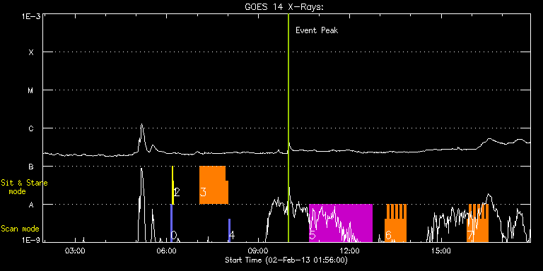 EIS Observation timeline overlay to GOES-Xray curve Code 1" 2" 40" 266" EIS Observations list for this event: STUDY ACRONYM ID DATE OBSERVED DESCRIPTION NOAA# TARGET 0 PRY_slot_contextLITE | 31810 | 2013/02/02 06:07:42 | Change of EIS pointing and alignment w | | Active Region TIMELINE ID DATE OBSERVED FITS FILE XCEN (+W/-E) YCEN (+N/-S) DUR ----------------------------------------------------------------------------------------------------------------- 31810 | 2013/02/02 06:07:42.000 | eis_l0_20130202_060742.fits.gz | -15.21 | -0.58 | 2m57s 1 Alignment_266 | 31811 | 2013/02/02 06:10:57 | Change of EIS pointing and alignment w | | Quiet Sun TIMELINE ID DATE OBSERVED FITS FILE XCEN (+W/-E) YCEN (+N/-S) DUR ----------------------------------------------------------------------------------------------------------------- 31811 | 2013/02/02 06:10:57.000 | eis_l0_20130202_061057.fits.gz | -132.49 | -0.50 | 1m22s 2 XRT_synop_AIA | 31812 | 2013/02/02 06:13:31 | Change of EIS pointing and alignment w | | Quiet Sun TIMELINE ID DATE OBSERVED FITS FILE XCEN (+W/-E) YCEN (+N/-S) DUR ----------------------------------------------------------------------------------------------------------------- 31812 | 2013/02/02 06:13:31.000 | eis_l0_20130202_061331.fits.gz | -132.49 | -0.50 | 10s 3 FLAREDOP_EIS | 31827 | 2013/02/02 07:05:19 | AR Obs | | Flare TIMELINE ID DATE OBSERVED FITS FILE XCEN (+W/-E) YCEN (+N/-S) DUR ----------------------------------------------------------------------------------------------------------------- 31827 | 2013/02/02 07:05:19.000 | eis_l0_20130202_070519.fits.gz | -340.98 | 260.06 | 49m20s 31827 | 2013/02/02 07:09:24.000 | eis_l0_20130202_070924.fits.gz | -340.36 | 259.90 | 51m46s 4 PRY_slot_contextLITE | 31828 | 2013/02/02 08:01:21 | AR Obs | 1665 | Active Region TIMELINE ID DATE OBSERVED FITS FILE XCEN (+W/-E) YCEN (+N/-S) DUR ----------------------------------------------------------------------------------------------------------------- 31828 | 2013/02/02 08:01:21.000 | eis_l0_20130202_080121.fits.gz | -347.45 | 260.13 | 2m57s 5 HPW021_VEL_240x512v1 | 31829 | 2013/02/02 10:40:06 | Returning previously AR11652 | 1667 | Active Region TIMELINE ID DATE OBSERVED FITS FILE XCEN (+W/-E) YCEN (+N/-S) DUR ----------------------------------------------------------------------------------------------------------------- 31829 | 2013/02/02 10:40:06.000 | eis_l0_20130202_104006.fits.gz | -803.15 | 398.33 | 2h3m47s 6 HH_Flare_162x152 | 31841 | 2013/02/02 13:09:30 | Returning previously AR11652 | 1667 | Flare TIMELINE ID DATE OBSERVED FITS FILE XCEN (+W/-E) YCEN (+N/-S) DUR ----------------------------------------------------------------------------------------------------------------- 31841 | 2013/02/02 13:09:30.000 | eis_l0_20130202_130930.fits.gz | -793.69 | 400.42 | 4m11s 31841 | 2013/02/02 13:13:43.000 | eis_l0_20130202_131343.fits.gz | -793.38 | 400.65 | 4m11s 31841 | 2013/02/02 13:17:57.000 | eis_l0_20130202_131757.fits.gz | -793.07 | 400.65 | 4m10s 31841 | 2013/02/02 13:22:10.000 | eis_l0_20130202_132210.fits.gz | -792.84 | 400.57 | 4m11s 31841 | 2013/02/02 13:26:24.000 | eis_l0_20130202_132624.fits.gz | -792.53 | 400.65 | 4m10s 31841 | 2013/02/02 13:30:37.000 | eis_l0_20130202_133037.fits.gz | -792.22 | 400.80 | 4m11s 31841 | 2013/02/02 13:34:50.000 | eis_l0_20130202_133450.fits.gz | -791.91 | 400.80 | 4m11s 31841 | 2013/02/02 13:39:04.000 | eis_l0_20130202_133904.fits.gz | -791.68 | 400.88 | 4m10s 31841 | 2013/02/02 13:43:17.000 | eis_l0_20130202_134317.fits.gz | -791.37 | 401.03 | 4m11s 31841 | 2013/02/02 13:47:31.000 | eis_l0_20130202_134731.fits.gz | -790.98 | 401.03 | 4m10s 7 HH_Flare_162x152 | 31870 | 2013/02/02 15:51:00 | Returning previously AR11652 | 1667 | Flare TIMELINE ID DATE OBSERVED FITS FILE XCEN (+W/-E) YCEN (+N/-S) DUR ----------------------------------------------------------------------------------------------------------------- 31870 | 2013/02/02 15:51:00.000 | eis_l0_20130202_155100.fits.gz | -782.18 | 402.58 | 4m10s 31870 | 2013/02/02 15:55:13.000 | eis_l0_20130202_155513.fits.gz | -781.95 | 402.81 | 4m11s 31870 | 2013/02/02 15:59:27.000 | eis_l0_20130202_155927.fits.gz | -781.56 | 402.89 | 4m10s 31870 | 2013/02/02 16:03:40.000 | eis_l0_20130202_160340.fits.gz | -781.25 | 402.96 | 4m11s 31870 | 2013/02/02 16:07:53.000 | eis_l0_20130202_160753.fits.gz | -781.02 | 402.89 | 4m11s 31870 | 2013/02/02 16:12:07.000 | eis_l0_20130202_161207.fits.gz | -780.56 | 402.89 | 4m10s 31870 | 2013/02/02 16:16:20.000 | eis_l0_20130202_161620.fits.gz | -780.32 | 402.89 | 4m11s 31870 | 2013/02/02 16:20:34.000 | eis_l0_20130202_162034.fits.gz | -779.94 | 403.04 | 4m10s 31870 | 2013/02/02 16:24:47.000 | eis_l0_20130202_162447.fits.gz | -779.71 | 403.12 | 4m11s 31870 | 2013/02/02 16:29:00.000 | eis_l0_20130202_162900.fits.gz | -779.40 | 403.35 | 4m11s : Check study information : Download file : View thumbnails For this event, also check for:
